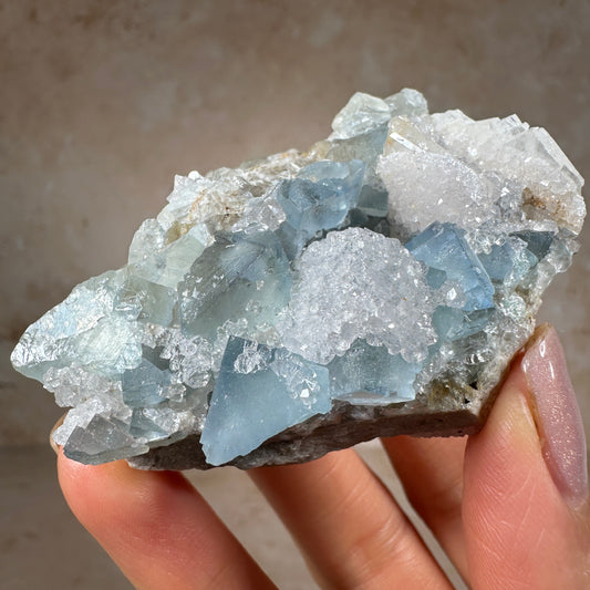 "Blanchard Blue" Fluorite, Baryte, Sugar Quartz Druzy, 119g | Mex-Tex Mine, Bingham, New Mexico