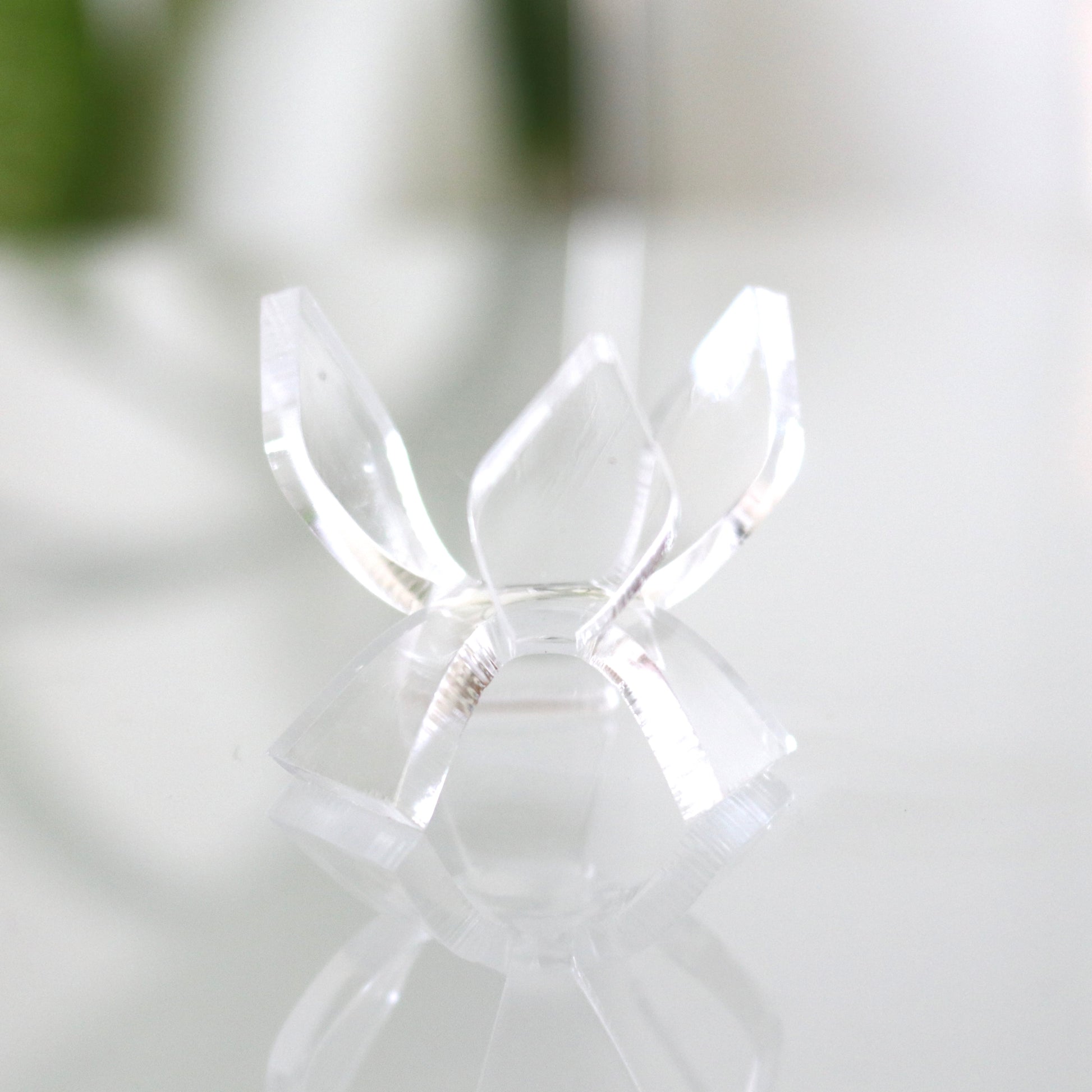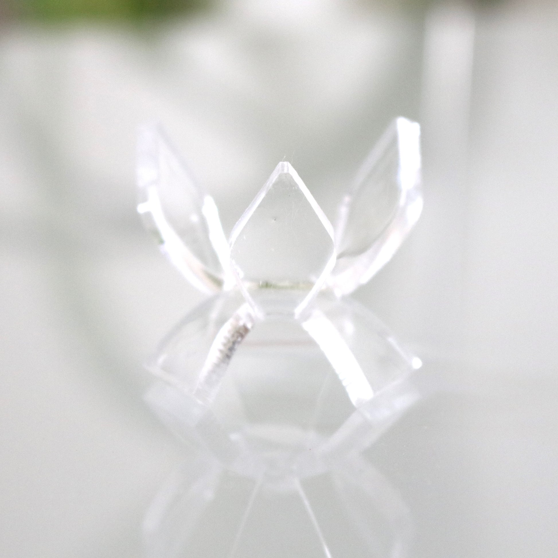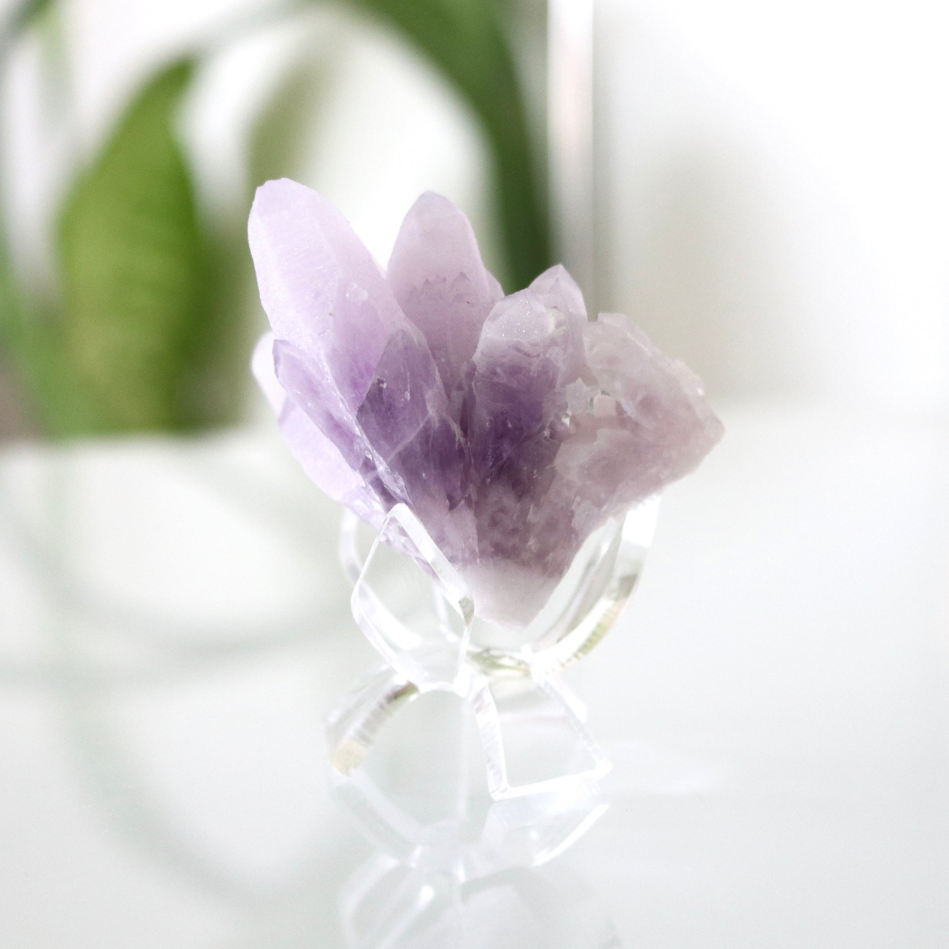 Clear acrylic mineral specimen display stand for crystals, fossils, minerals, meteorites and more. Versatile 3 point tulip pedestal design fits a wide variety of shapes and sizes, best for miniature to small cabinet mineral specimens.