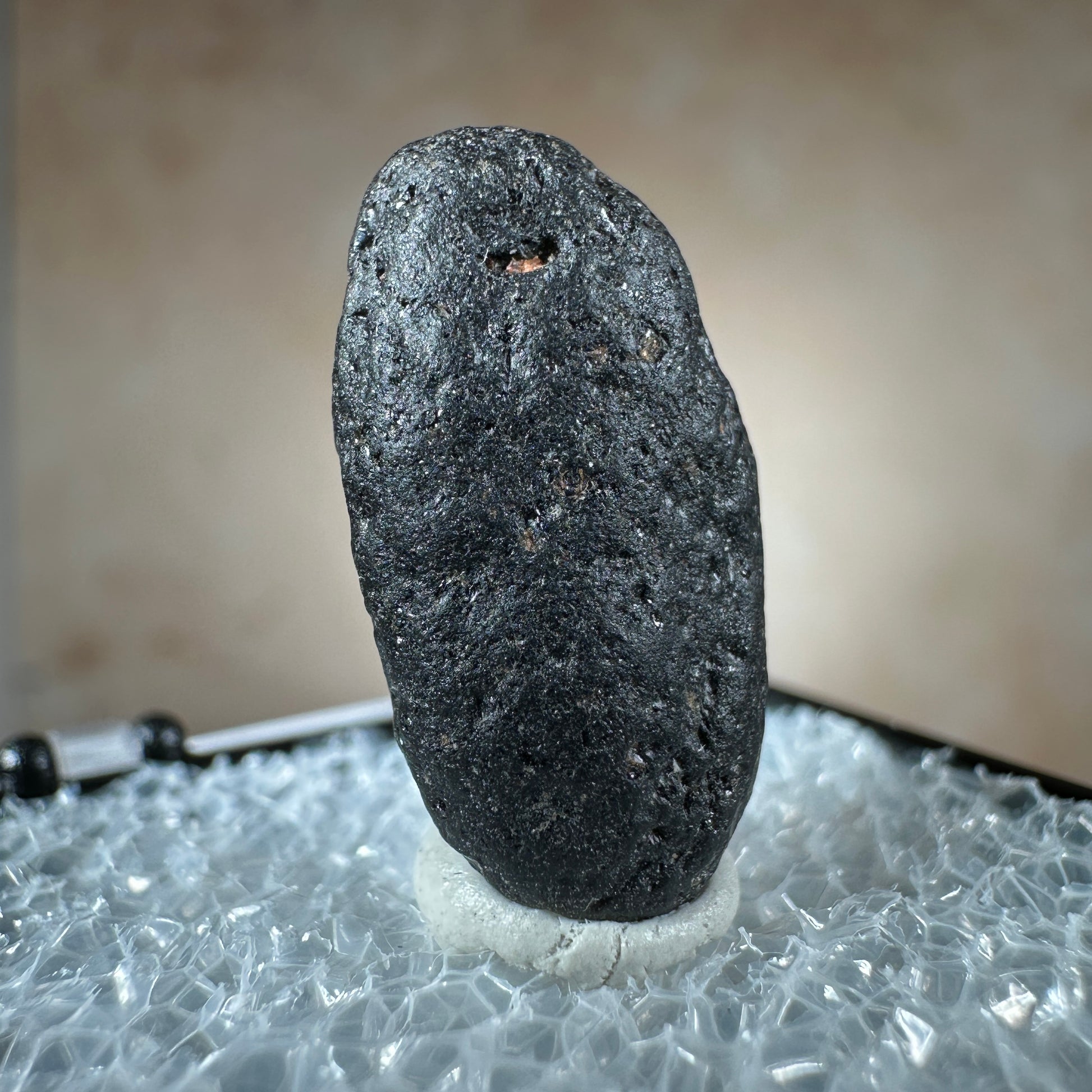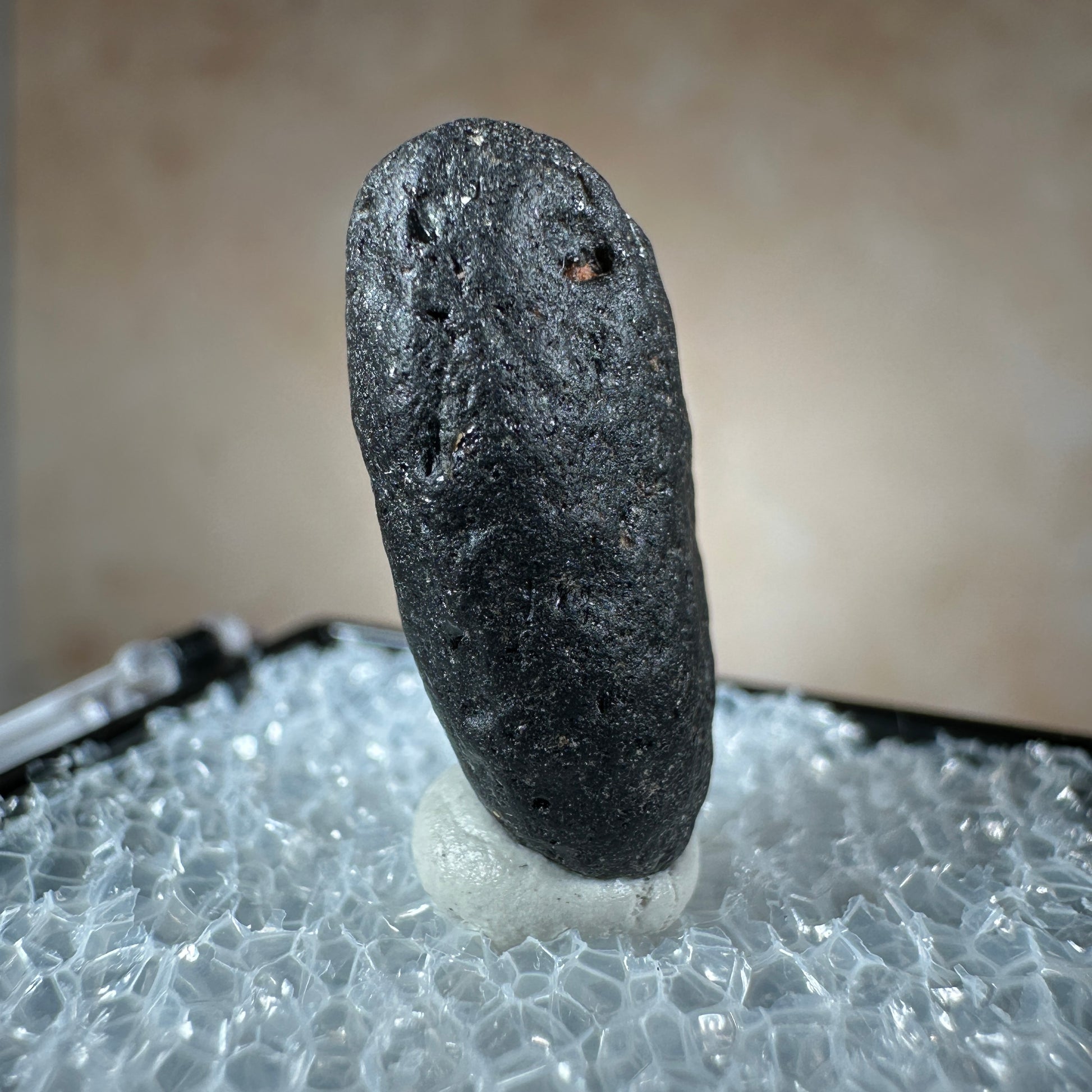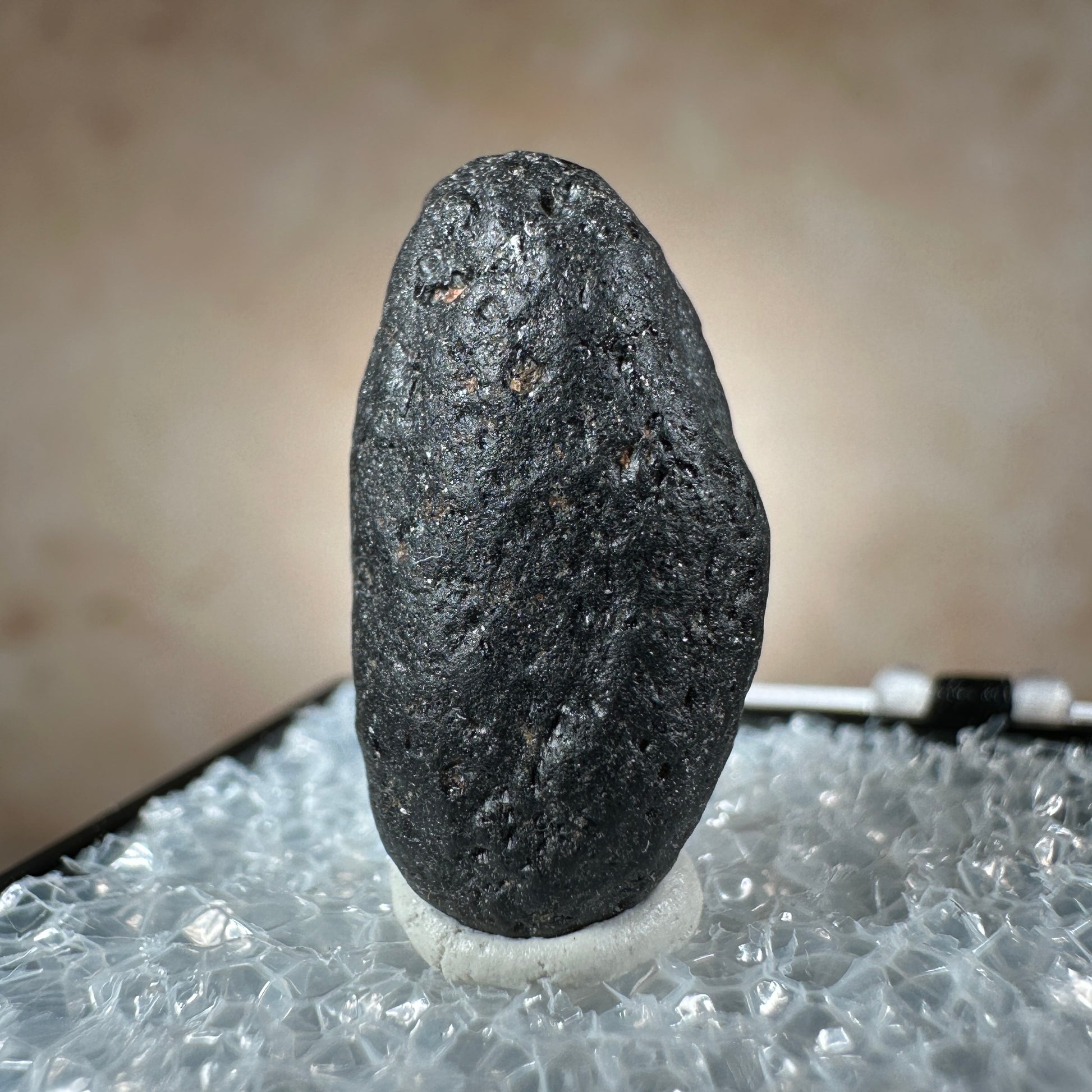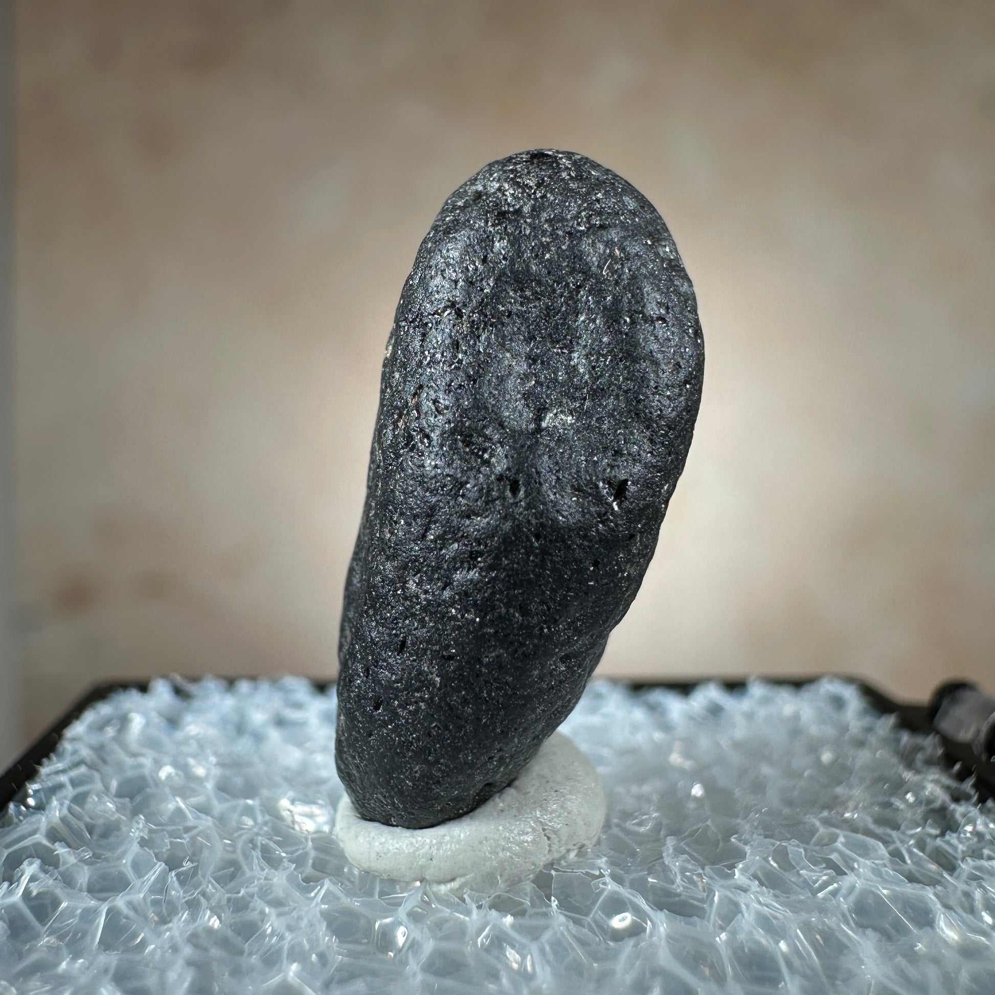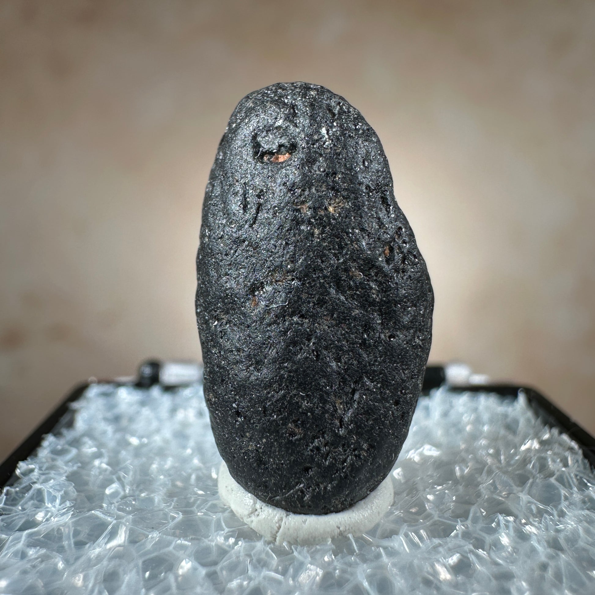 Australites are tektites, a natural glass formed during a meteorite impact. Australites formed about 700,000-800,000 years ago when a massive meteorite impacted Earth. The impact glass was blasted high into the upper atmosphere, where it cooled and began its descent back to Earth. As the tektites re-entered our atmosphere, traveling at high velocity, aero-dynamic ablation occurred, causing the outer surface of the tektite to melt away, leaving the center intact. These small button-shaped Australites are the heart of Australian tektites.