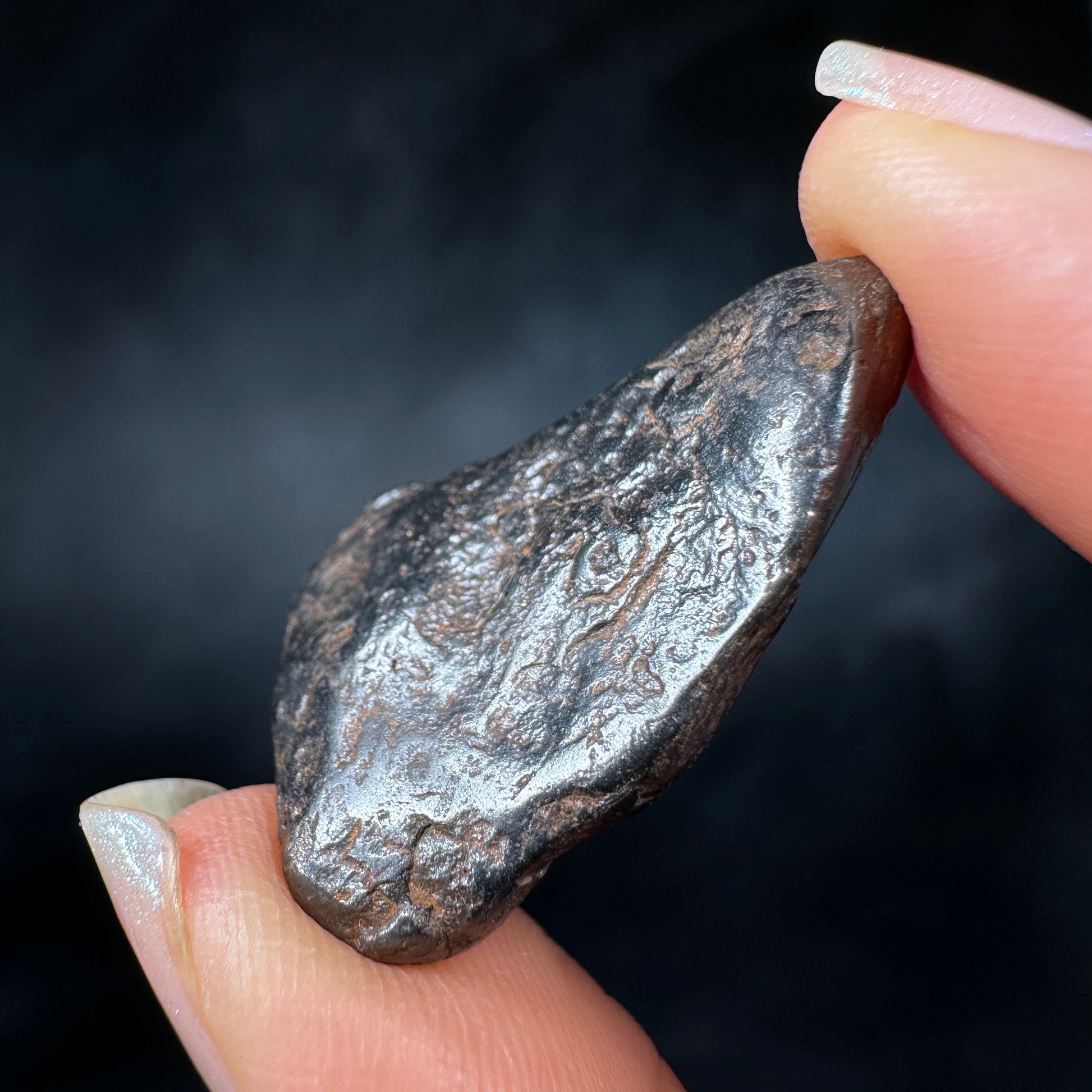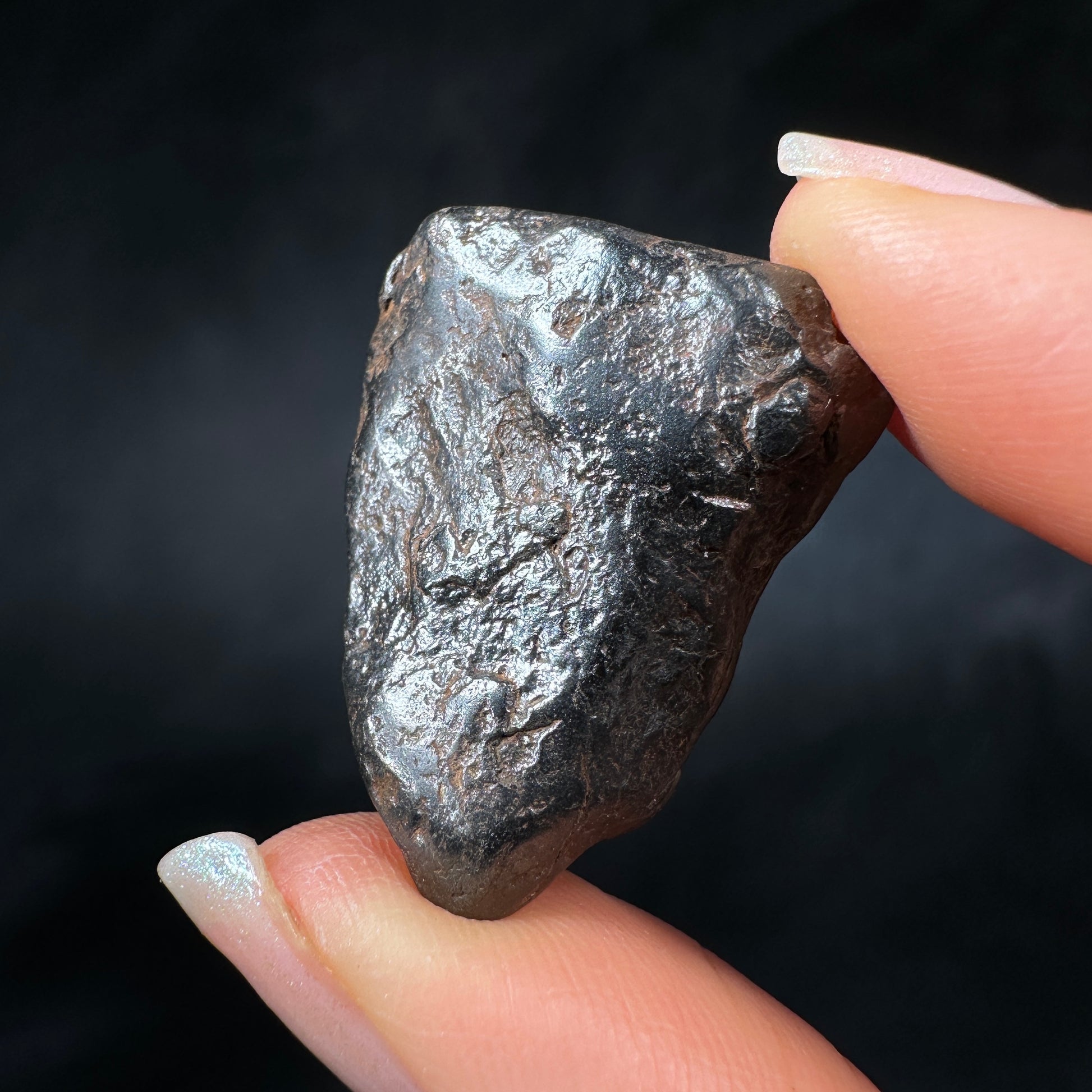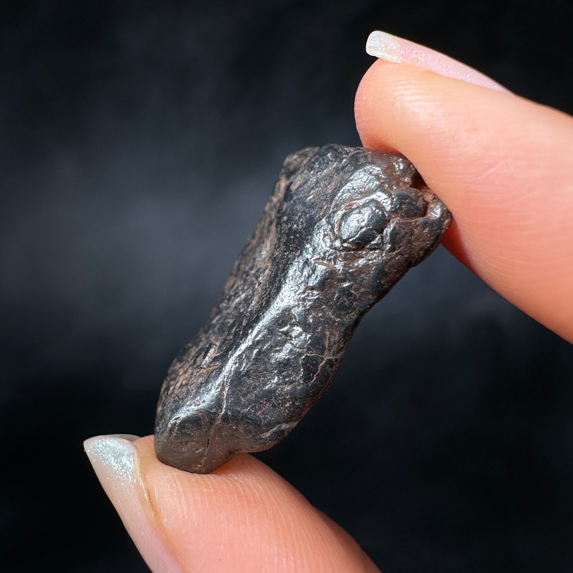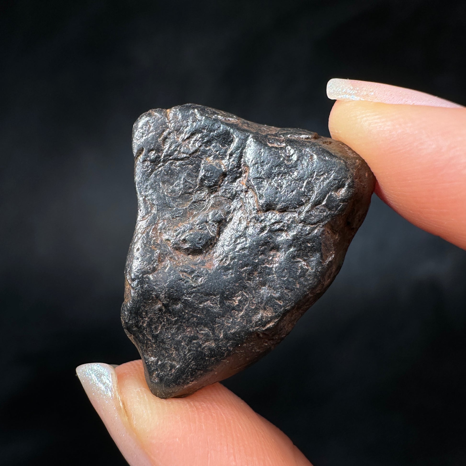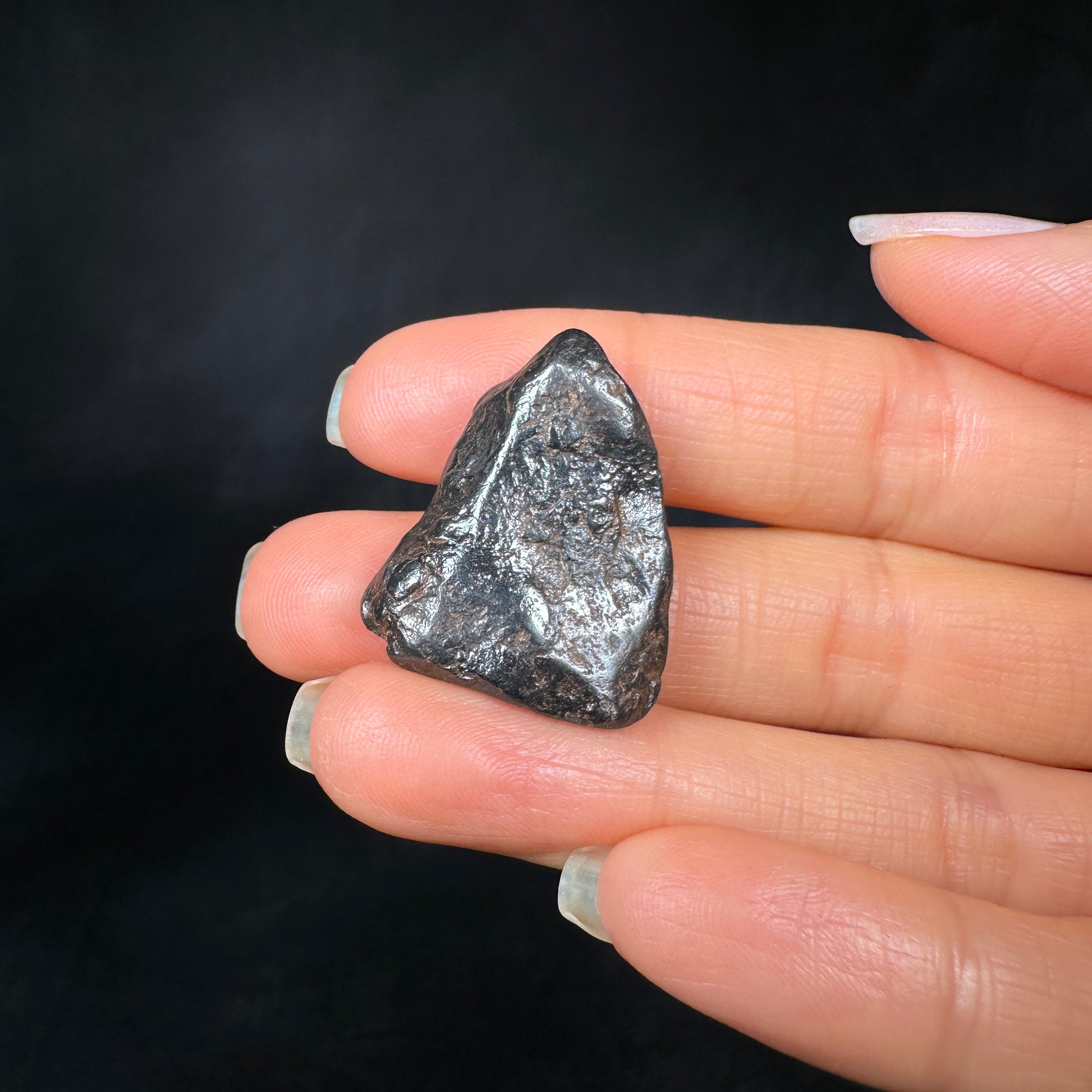 Canyon Diablo meteorite, complete individual with excellent form. This meteorite has been carefully cleaned to remove the caliche and restore its original metallic luster, how it would have looked in space or as a fresh fall on Earth. Canyon Diablo iron meteorites are fragments of the asteroid that created the famous Arizona Meteor Crater, also known as Barringer Crater. The most recognizable and well-preserved meteorite crater on Earth. This Canyon Diablo meteorite specimen is perfect for the detail-oriented collector or enthusiast who enjoys the metallic shine and sculptural aesthetic of iron meteorites.