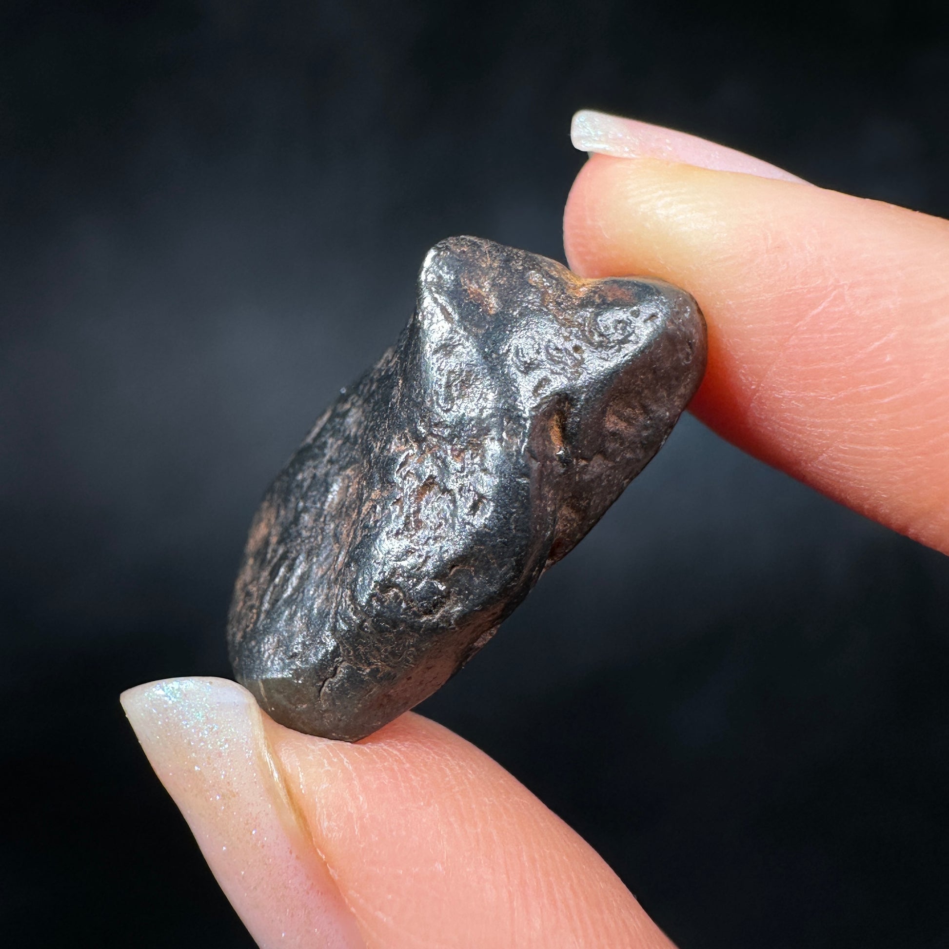 Canyon Diablo meteorite, complete individual with excellent form. This meteorite has been carefully cleaned to remove the caliche and restore its original metallic luster, how it would have looked in space or as a fresh fall on Earth. Canyon Diablo iron meteorites are fragments of the asteroid that created the famous Arizona Meteor Crater, also known as Barringer Crater. The most recognizable and well-preserved meteorite crater on Earth. This Canyon Diablo meteorite specimen is perfect for the detail-oriented collector or enthusiast who enjoys the metallic shine and sculptural aesthetic of iron meteorites.