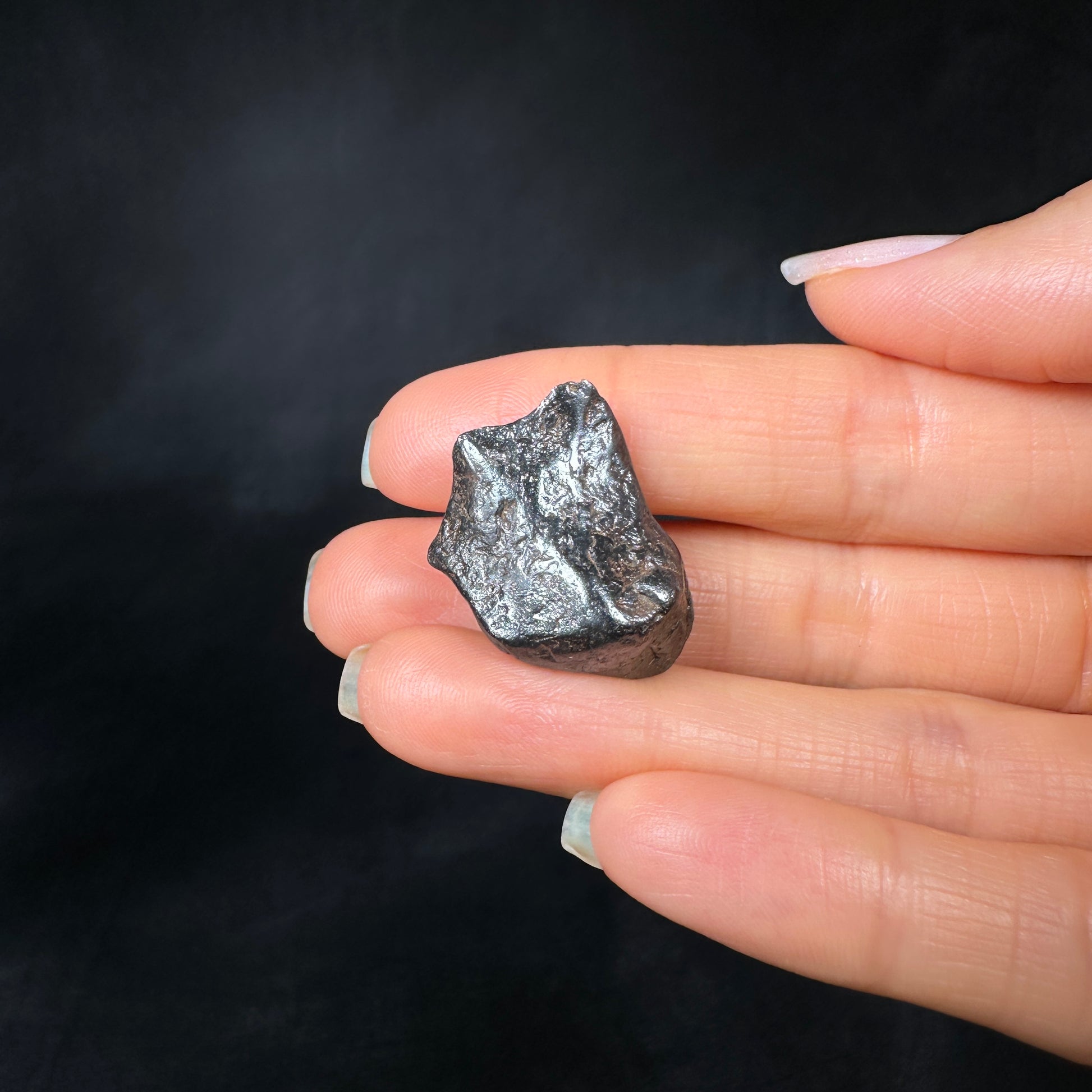 Canyon Diablo meteorite, complete individual with excellent form. This meteorite has been carefully cleaned to remove the caliche and restore its original metallic luster, how it would have looked in space or as a fresh fall on Earth. Canyon Diablo iron meteorites are fragments of the asteroid that created the famous Arizona Meteor Crater, also known as Barringer Crater. The most recognizable and well-preserved meteorite crater on Earth. This Canyon Diablo meteorite specimen is perfect for the detail-oriented collector or enthusiast who enjoys the metallic shine and sculptural aesthetic of iron meteorites.