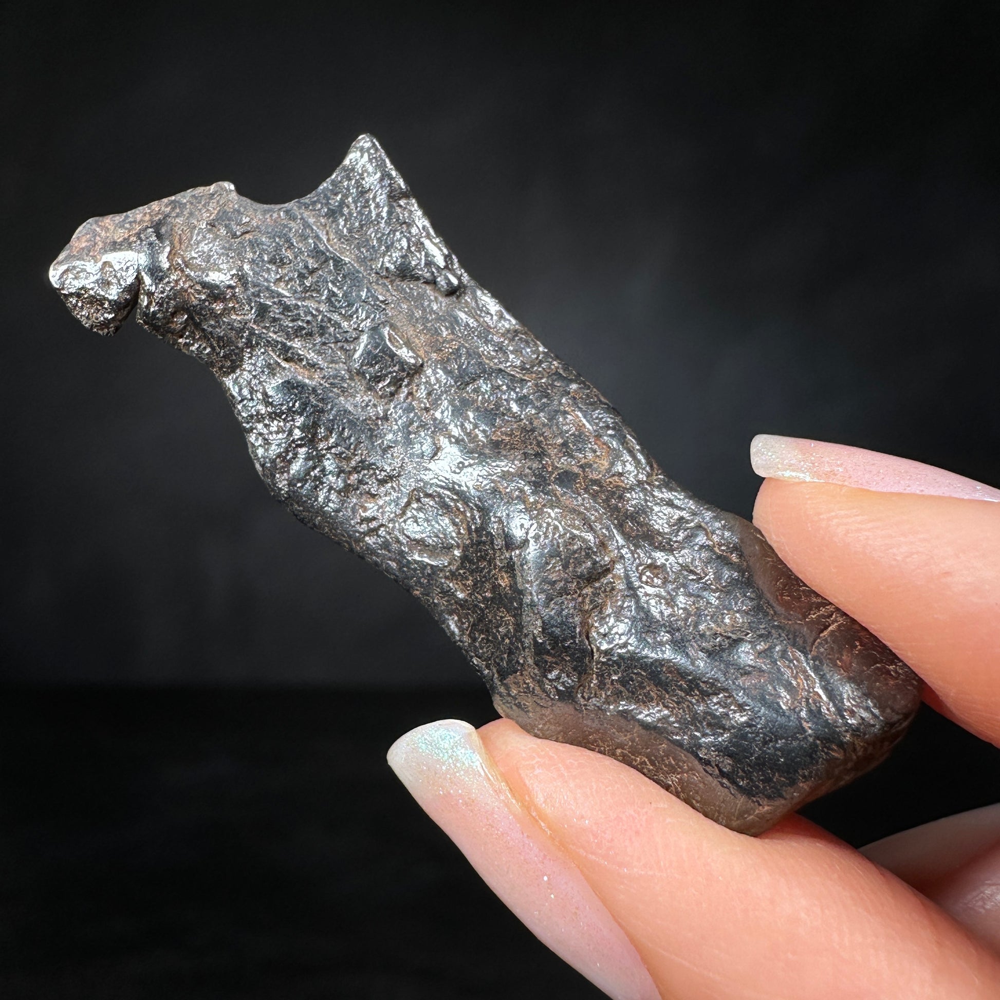 Canyon Diablo meteorite, complete individual with excellent form. This meteorite has been carefully cleaned to remove the caliche and restore its original metallic luster, how it would have looked in space or as a fresh fall on Earth. Canyon Diablo iron meteorites are fragments of the asteroid that created the famous Arizona Meteor Crater, also known as Barringer Crater. The most recognizable and well-preserved meteorite crater on Earth. This Canyon Diablo meteorite specimen is perfect for the detail-oriented collector or enthusiast who enjoys the metallic shine and sculptural aesthetic of iron meteorites.