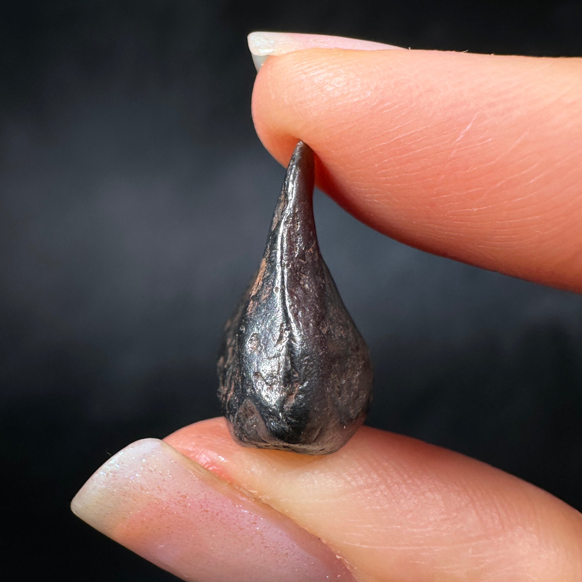 Canyon Diablo meteorite, complete individual with excellent form. This meteorite has been carefully cleaned to remove the caliche and restore its original metallic luster, how it would have looked in space or as a fresh fall on Earth. Canyon Diablo iron meteorites are fragments of the asteroid that created the famous Arizona Meteor Crater, also known as Barringer Crater. The most recognizable and well-preserved meteorite crater on Earth. This Canyon Diablo meteorite specimen is perfect for the detail-oriented collector or enthusiast who enjoys the metallic shine and sculptural aesthetic of iron meteorites.