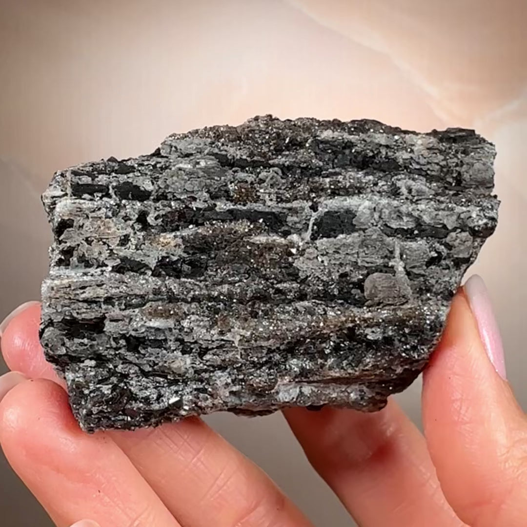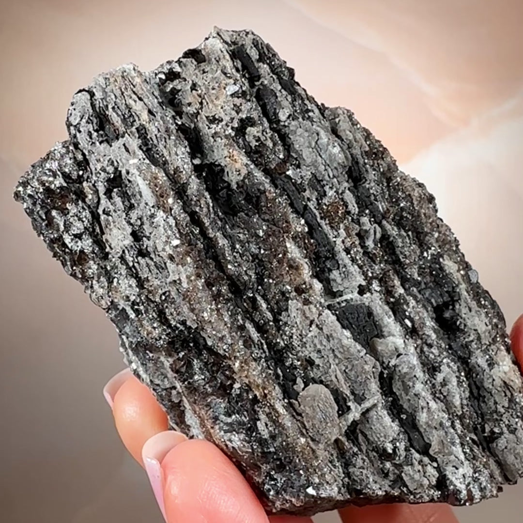 Also known as “Pangea Wood,” this rare 225-million-year-old fossil shimmers with natural smoky quartz crystals. Each piece sparkles like stars across ancient grain, carrying the story of volcanic fire, sweeping floods, and the slow alchemy of fossilization.