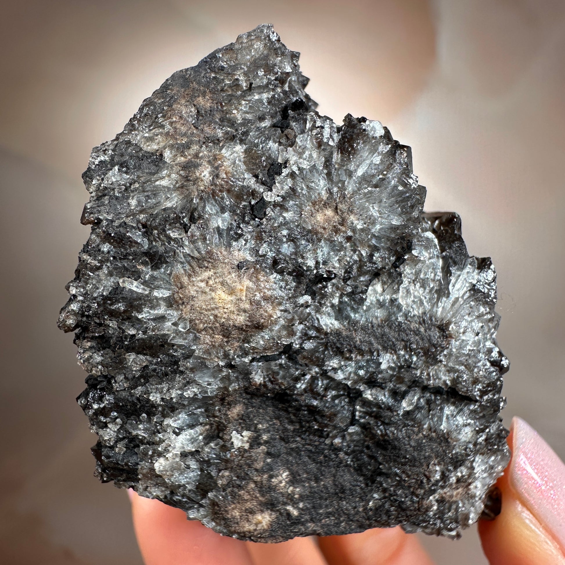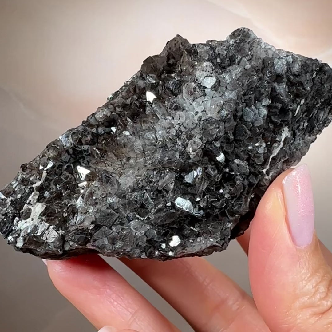 Ancient wood transformed into stone and crowned with smoky quartz druzy, this piece holds a rare harmony of grounding and activation. Its fossil core steadies the energy, while the quartz crystals impart a soft, tingling vibrational lift. Protective and clarifying, it anchors the spirit while subtly awakening the senses.