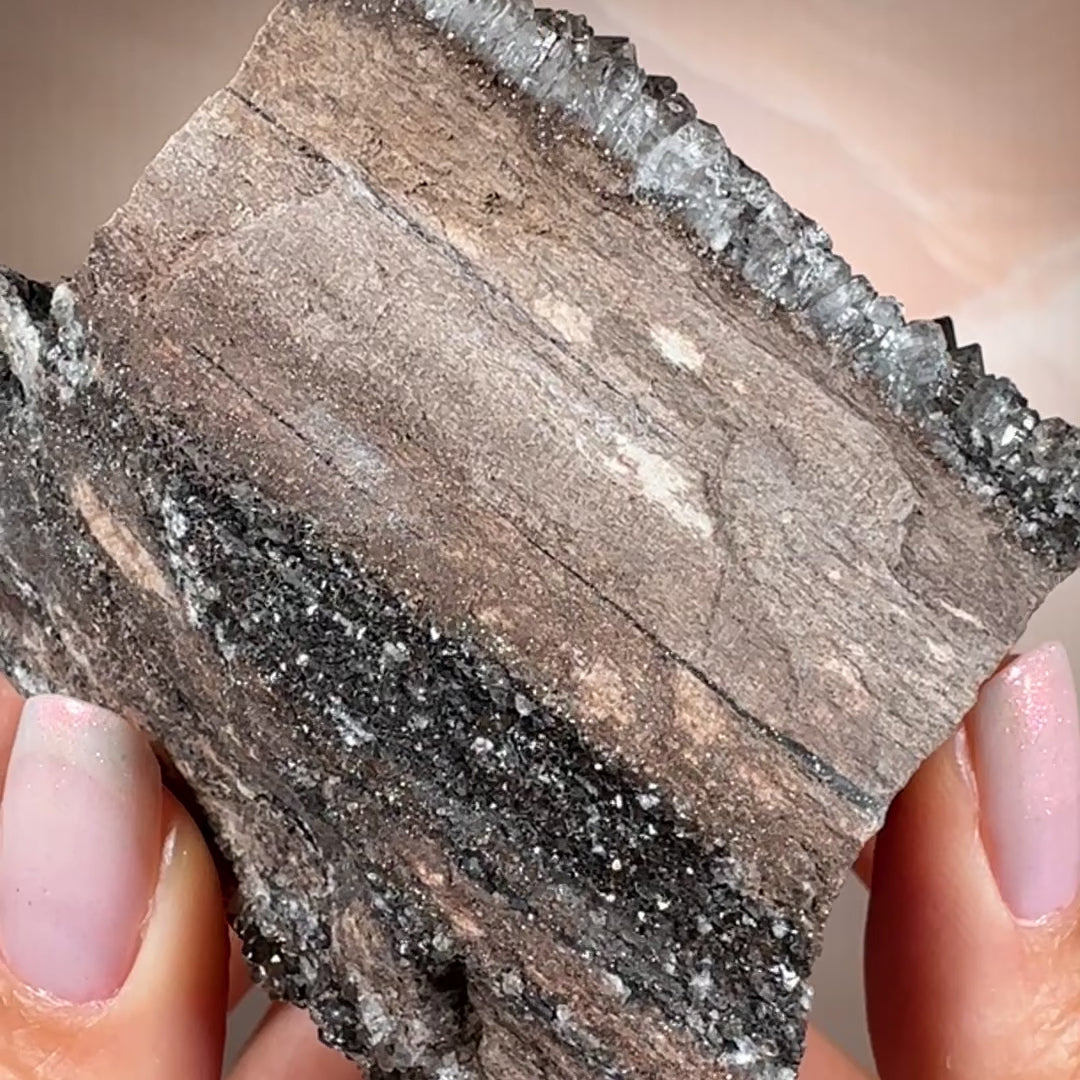 Also known as “Pangea Wood,” this rare 225-million-year-old fossil shimmers with natural smoky quartz crystals. Each piece sparkles like stars across ancient grain, carrying the story of volcanic fire, sweeping floods, and the slow alchemy of fossilization.