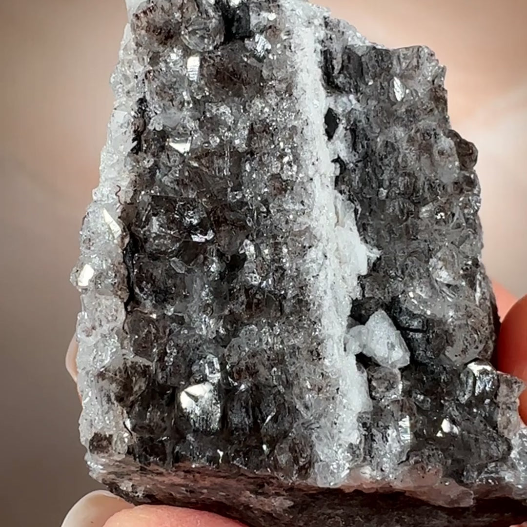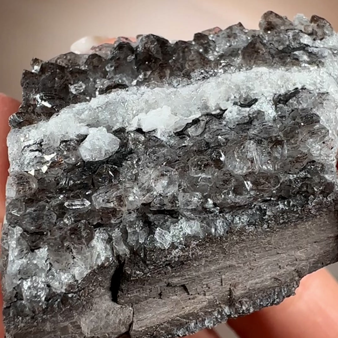 Ancient wood transformed into stone and crowned with smoky quartz druzy, this piece holds a rare harmony of grounding and activation. Its fossil core steadies the energy, while the quartz crystals impart a soft, tingling vibrational lift. Protective and clarifying, it anchors the spirit while subtly awakening the senses.