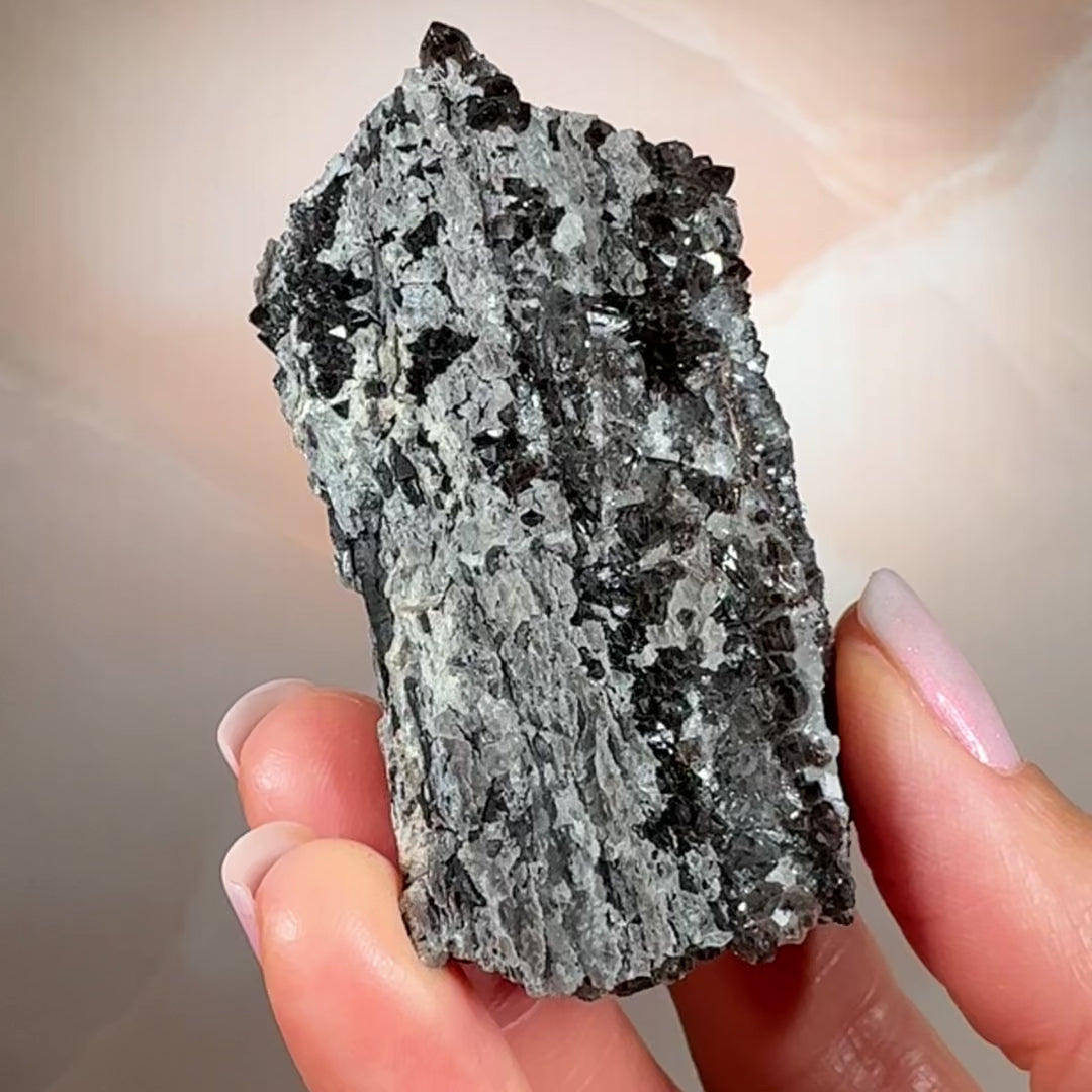 Also known as “Pangea Wood,” this rare 225-million-year-old fossil shimmers with natural smoky quartz crystals. Each piece sparkles like stars across ancient grain, carrying the story of volcanic fire, sweeping floods, and the slow alchemy of fossilization.