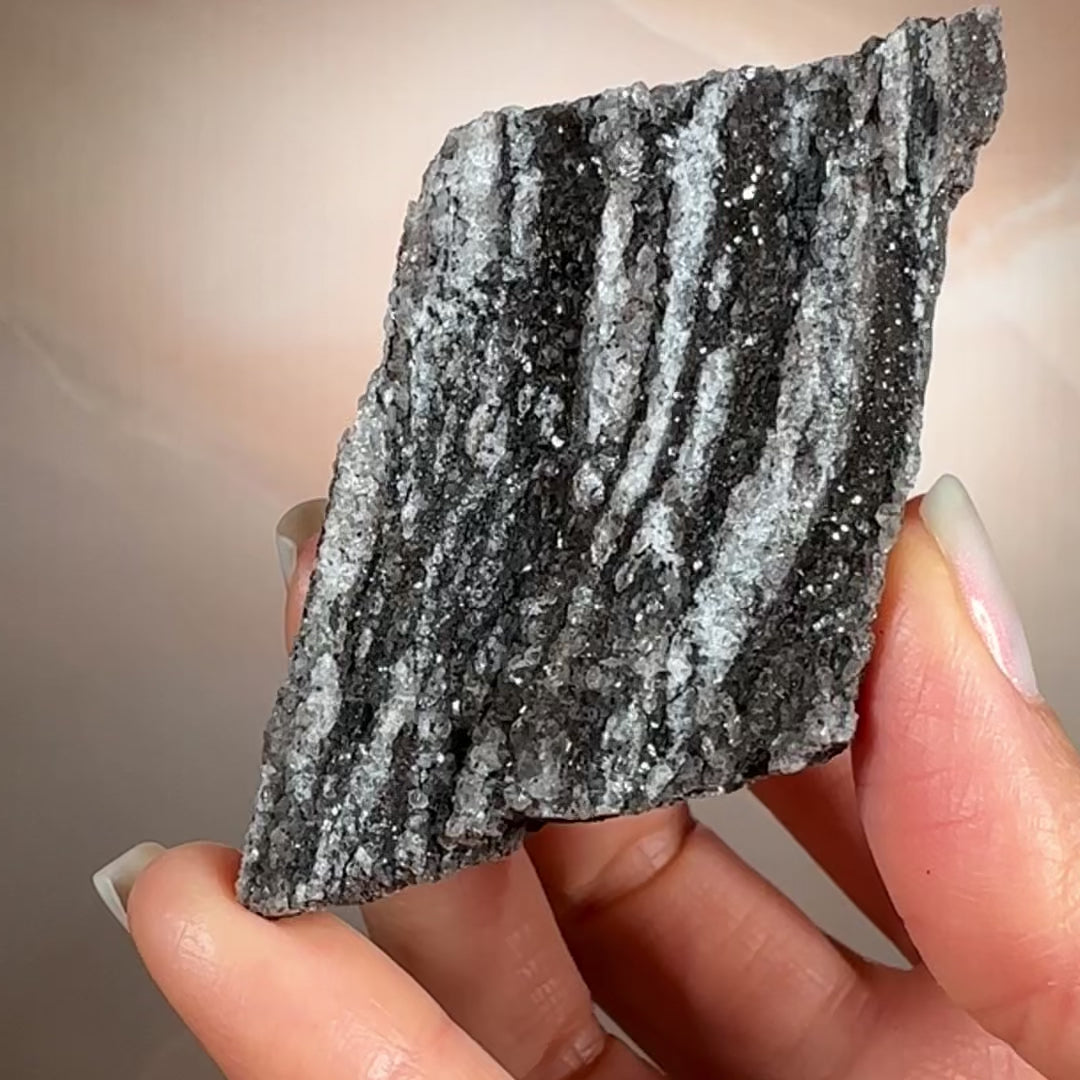 Also known as “Pangea Wood,” this rare 225-million-year-old fossil shimmers with natural smoky quartz crystals. Each piece sparkles like stars across ancient grain, carrying the story of volcanic fire, sweeping floods, and the slow alchemy of fossilization.