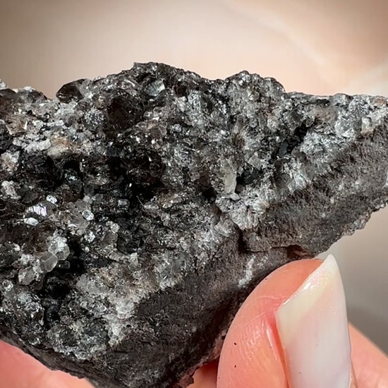 Ancient wood transformed into stone and crowned with smoky quartz druzy, this piece holds a rare harmony of grounding and activation. Its fossil core steadies the energy, while the quartz crystals impart a soft, tingling vibrational lift. Protective and clarifying, it anchors the spirit while subtly awakening the senses.