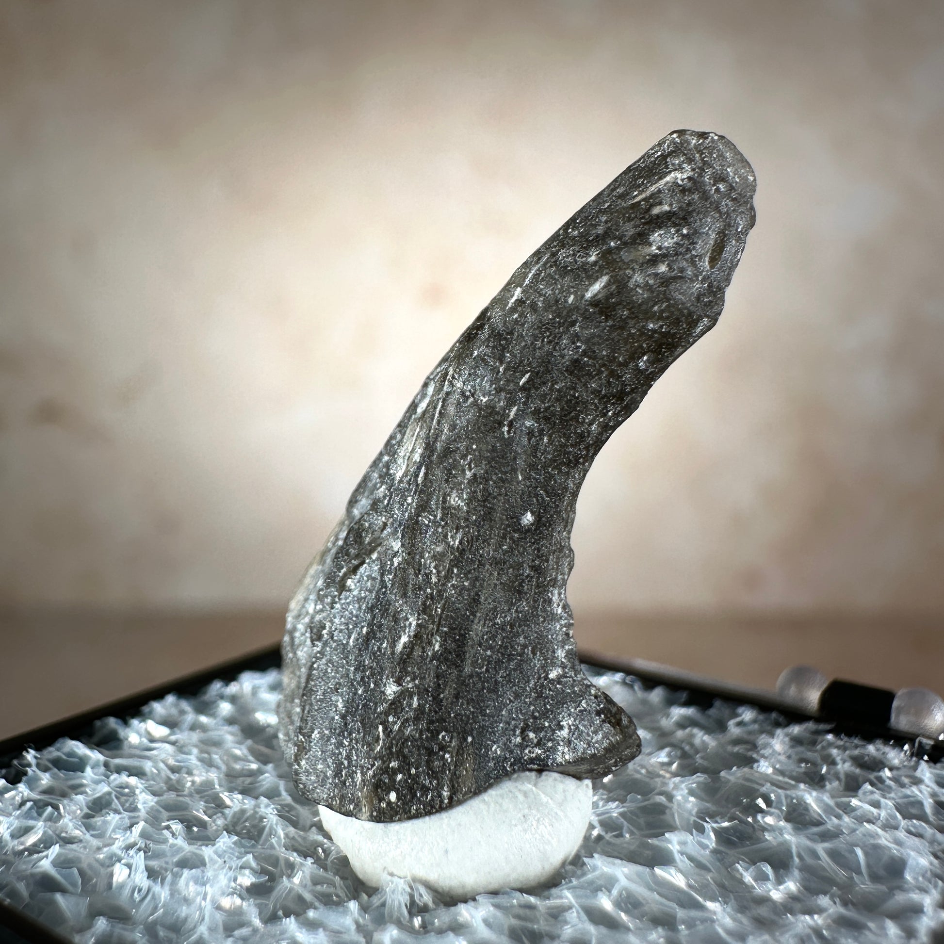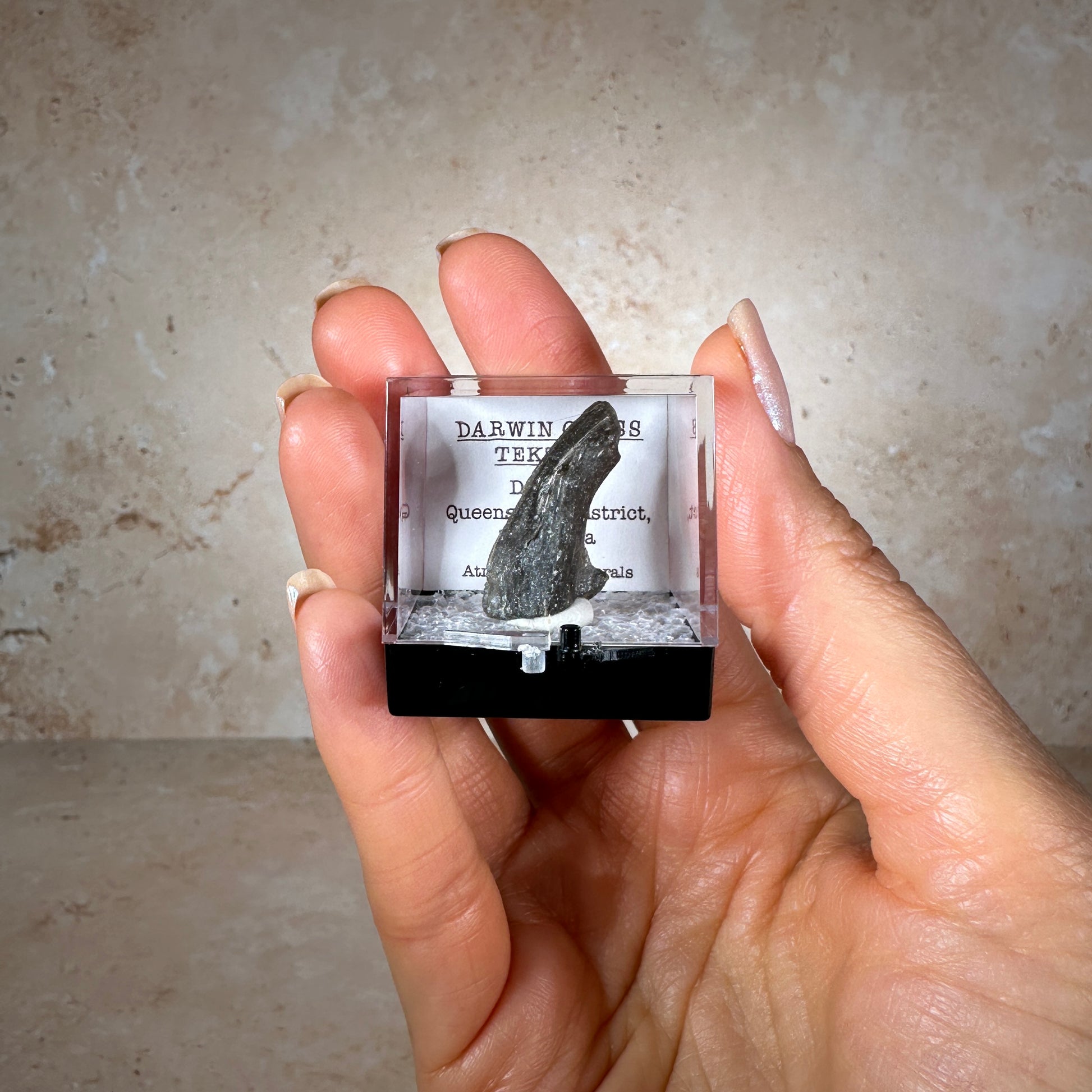 Darwin Glass is a tektite, this natural glassy material formed when a meteorite impacted the Earth, 800,000 years ago, creating the Darwin Crater, on the island of Tasmania. The crater is 1.2km in diameter and 200 meters deep, located in the Franklin-Gordon Wild Rivers National Park. Surrounded by remote rainforest and mountainous terrain. Because of the geographical isolation, Darwin Crater is one of the least visited meteorite impact sites in the world.