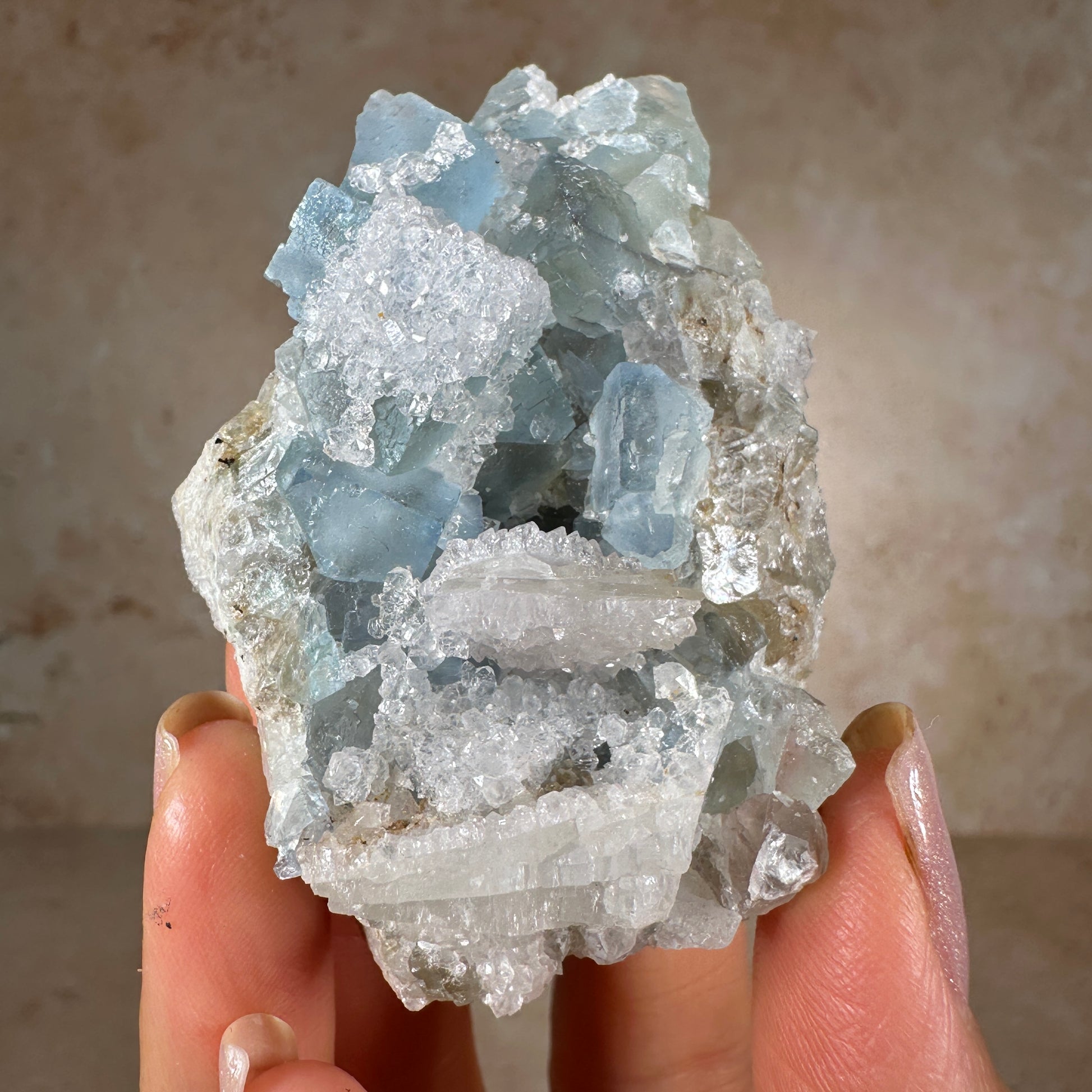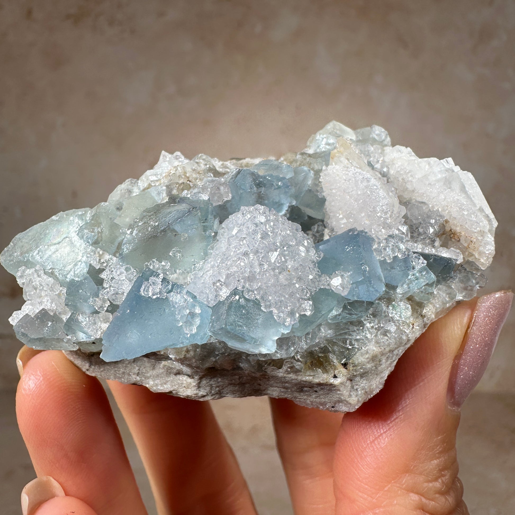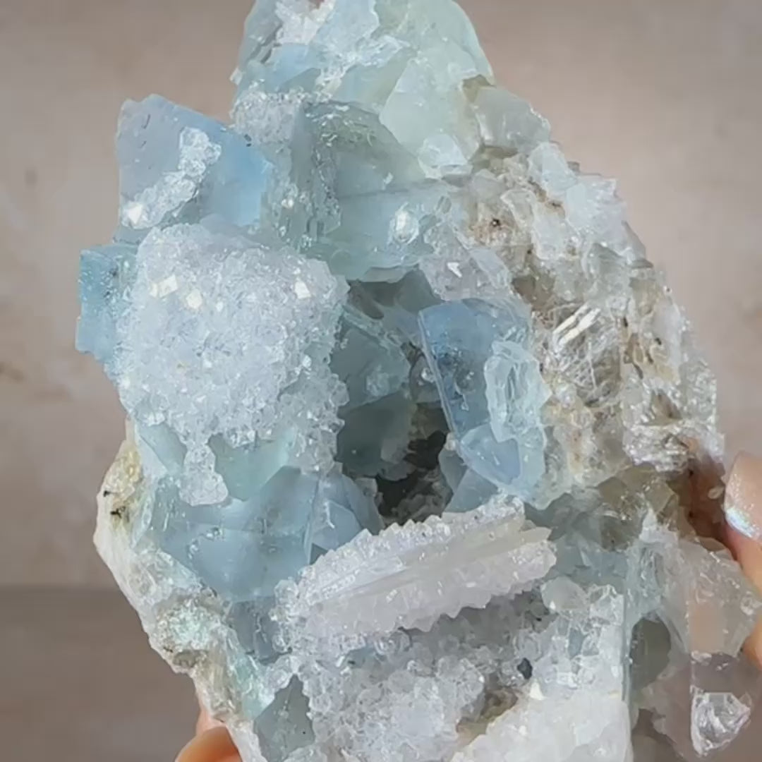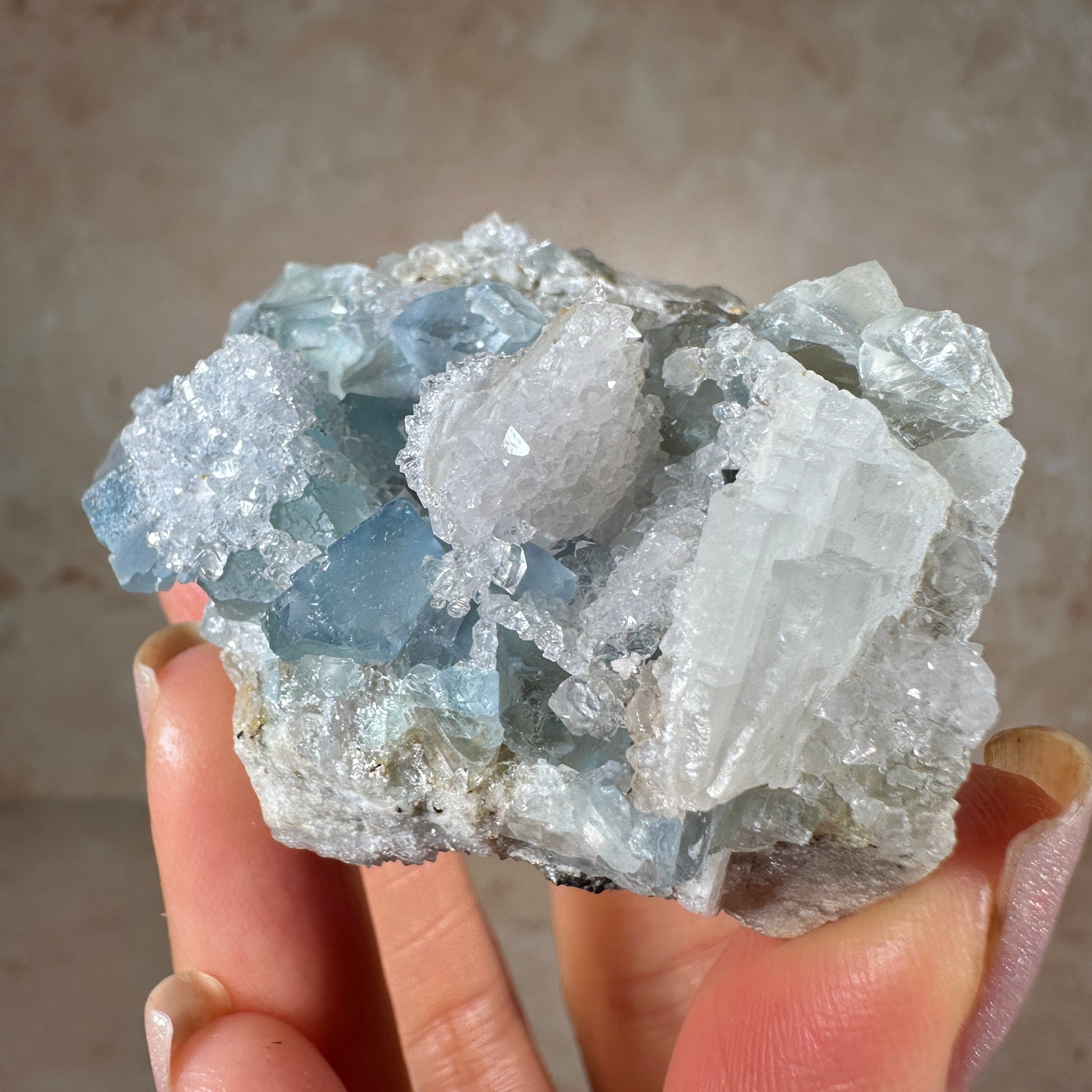 "Blanchard Blue" Fluorite, Baryte, Sugar Quartz Druzy, 119g | Mex-Tex Mine, Bingham, New Mexico