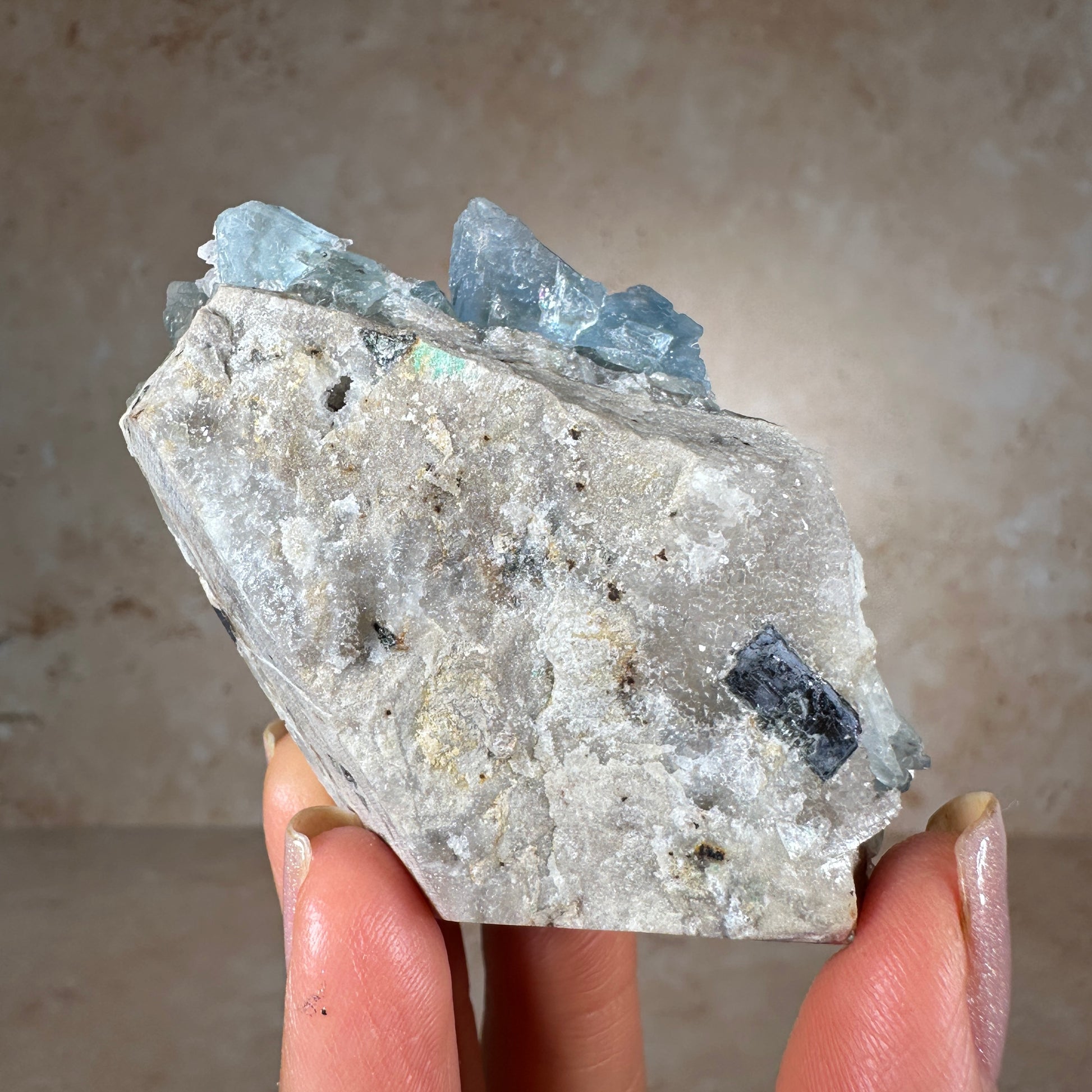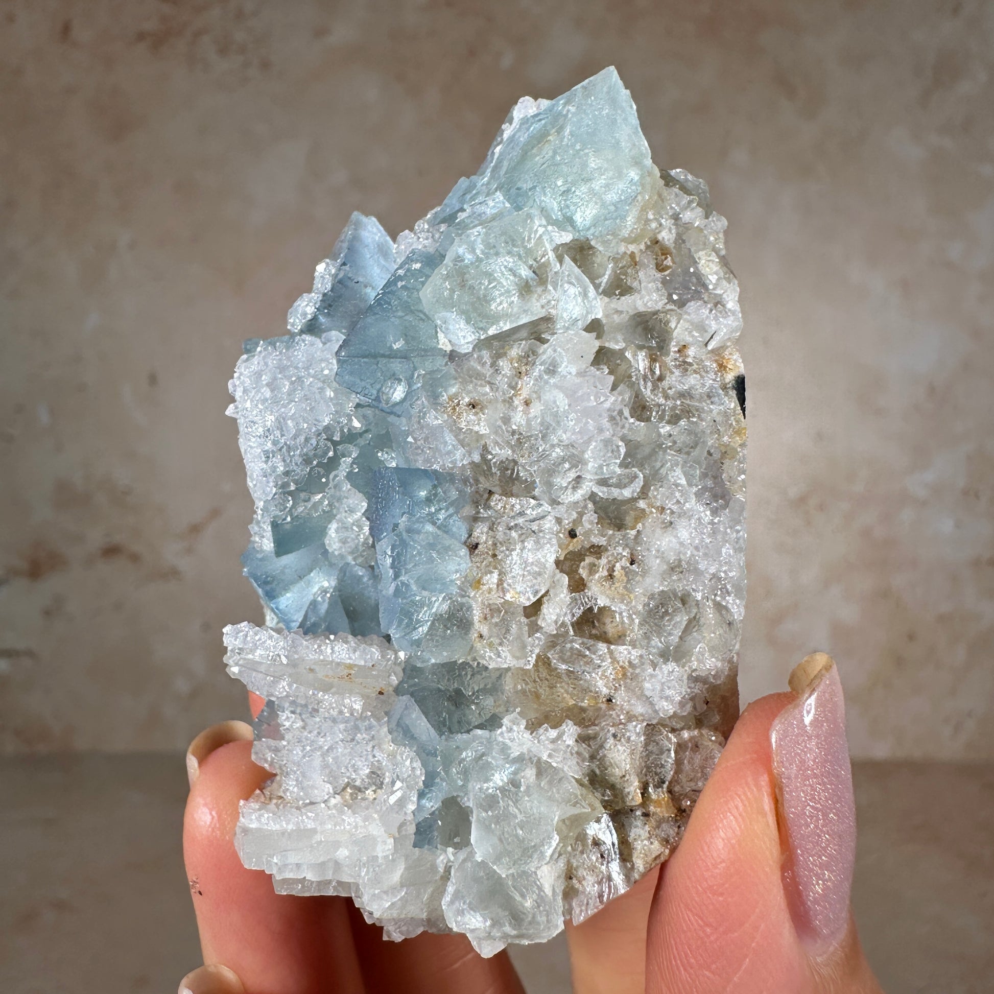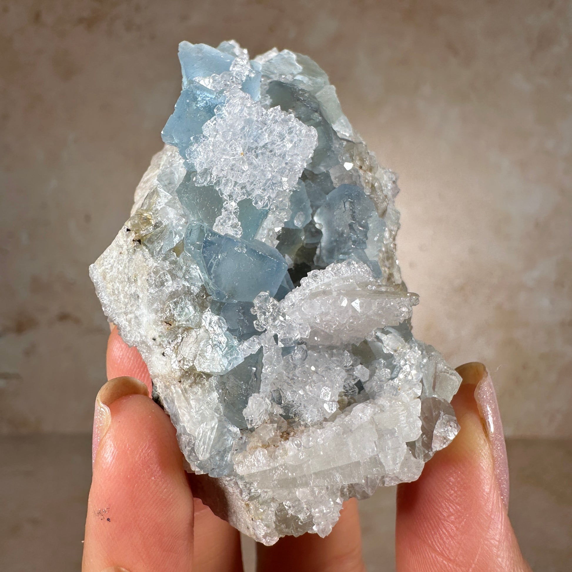 "Blanchard Blue" Fluorite, Baryte, Sugar Quartz Druzy, 119g | Mex-Tex Mine, Bingham, New Mexico