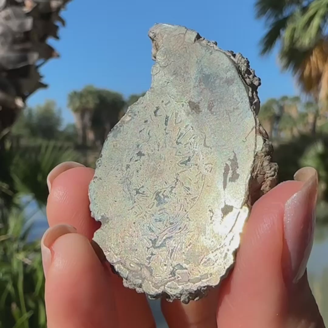 Gorgeous pyritized agatized ammonite fossil, Pleuroceras spinatum, collected from the Holzbachacker clay pit in Bavaria, Germany. This specimen is cut and polished to expose the pyritized spiral chambers inside.