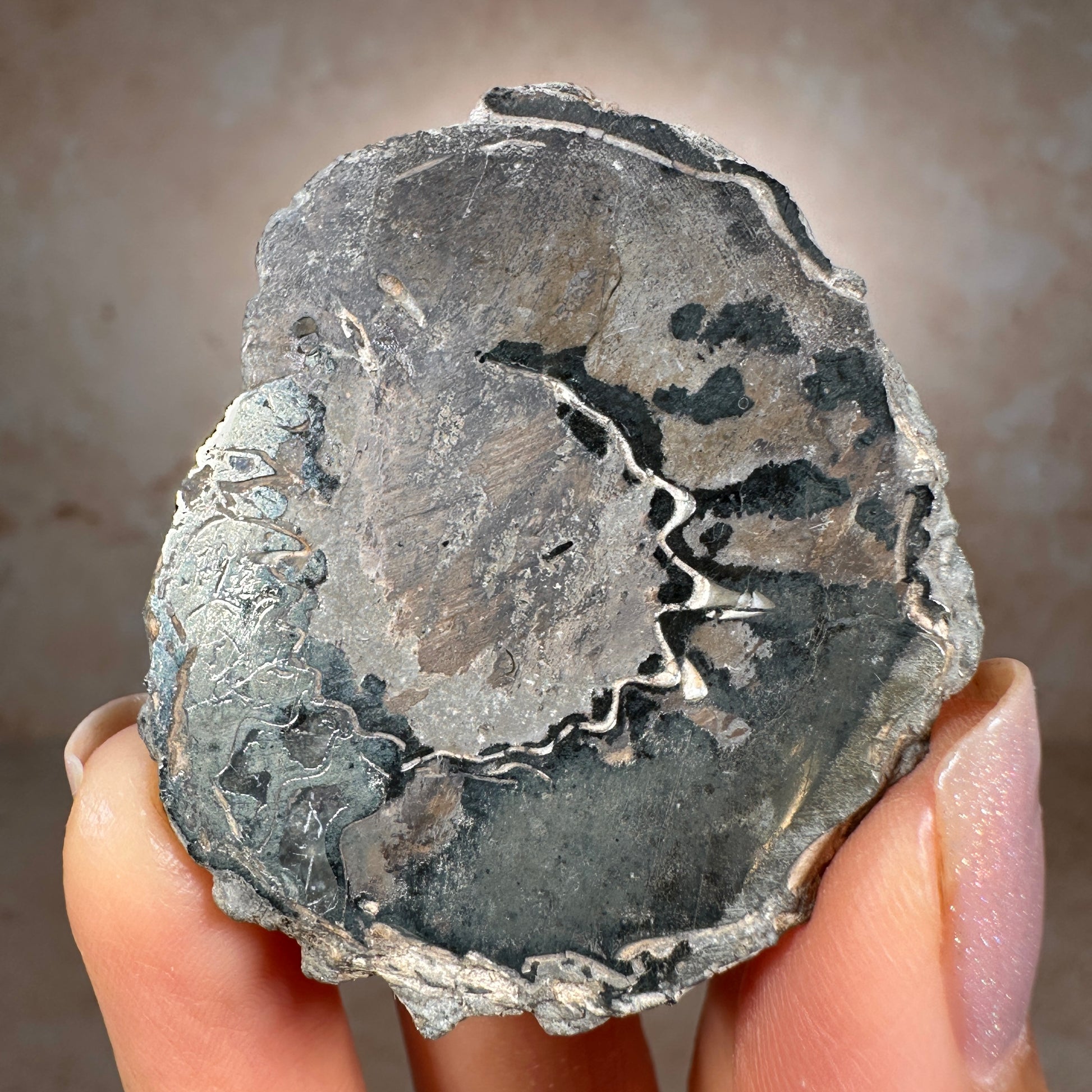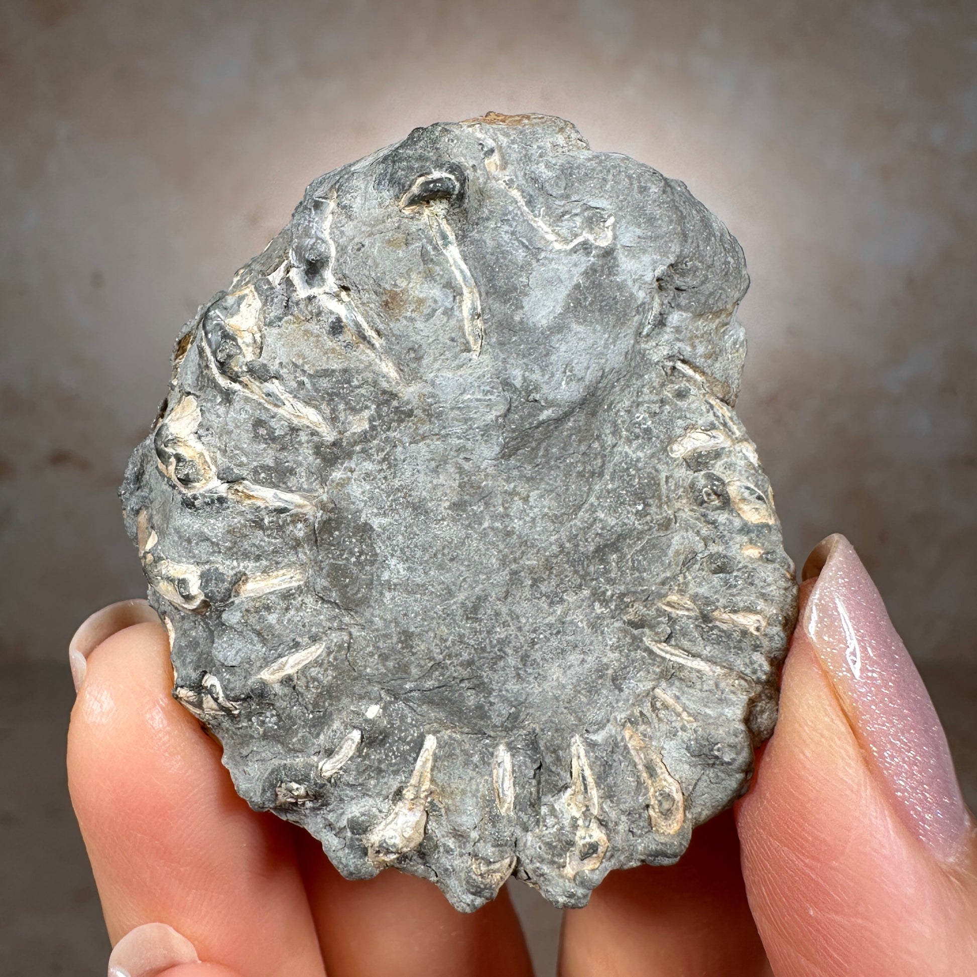This famous German locality is known for its heavily pyritized ammonites. They have some heft to them, you can feel the gravity of dense iron pyrite as you hold it in your hand.