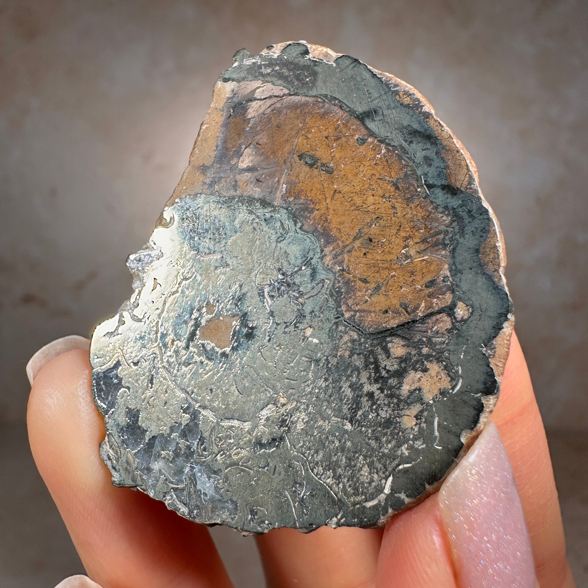 This famous German locality is known for its heavily pyritized ammonites. They have some heft to them, you can feel the gravity of dense iron pyrite as you hold it in your hand.