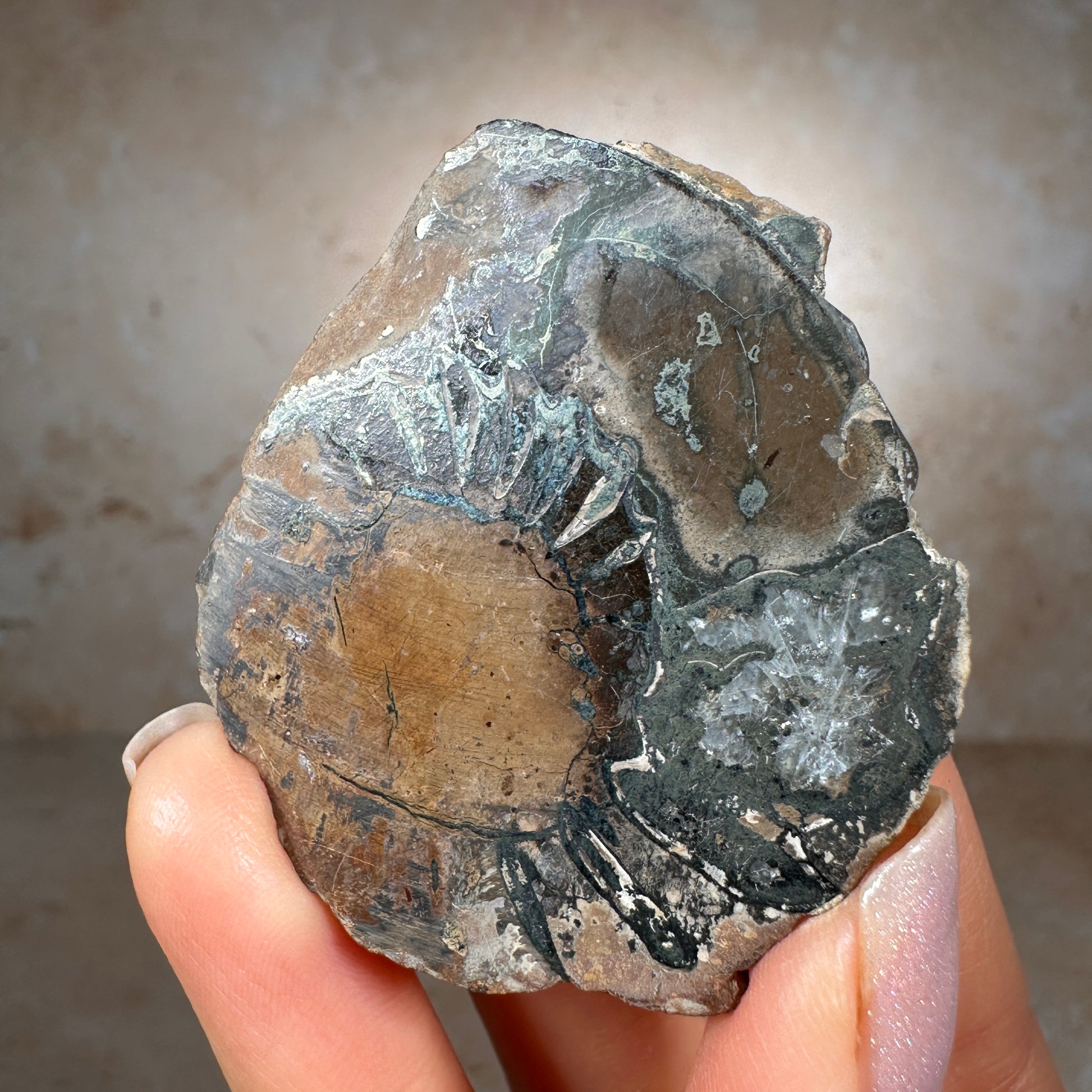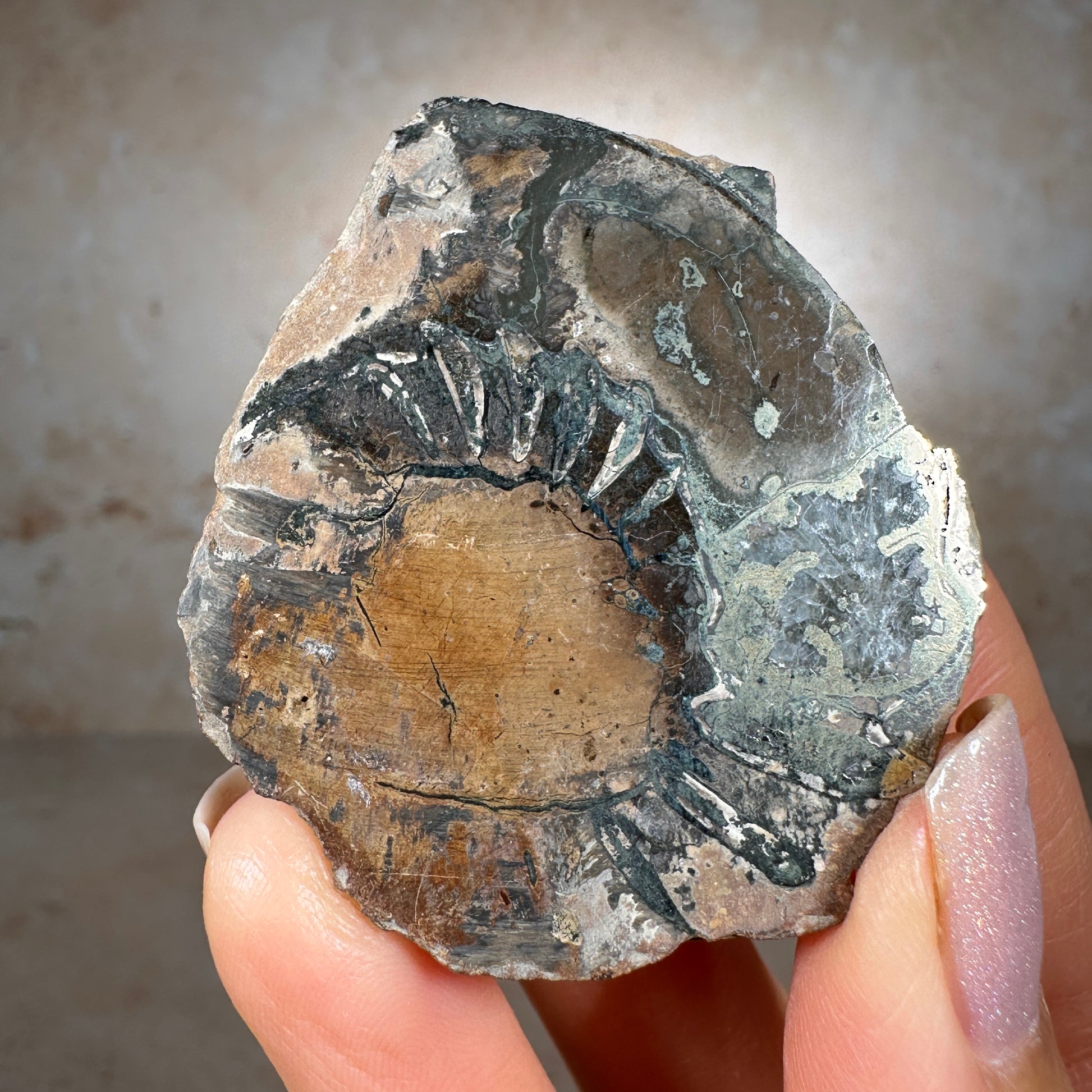 This famous German locality is known for its heavily pyritized ammonites. They have some heft to them, you can feel the gravity of dense iron pyrite as you hold it in your hand.