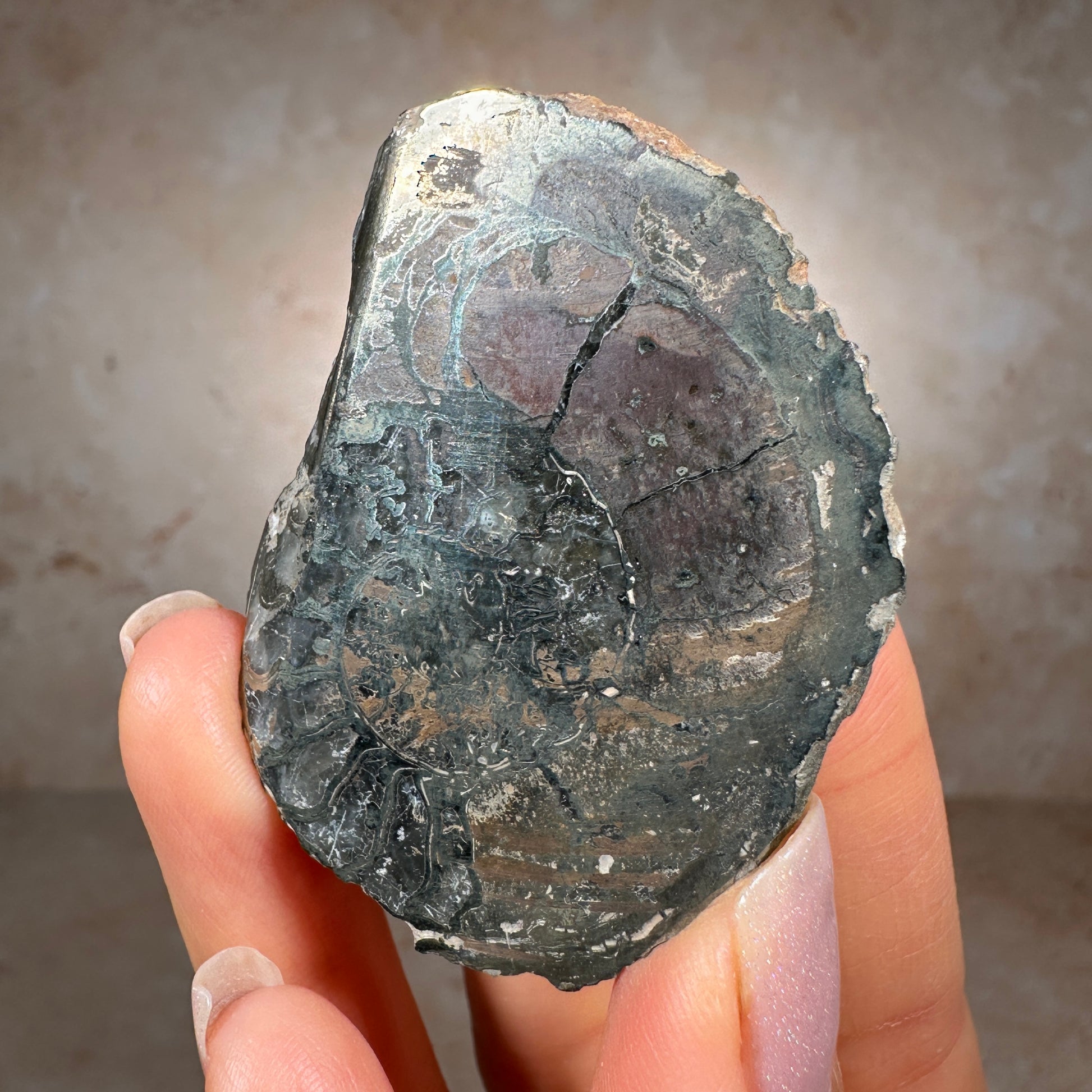 This famous German locality is known for its heavily pyritized ammonites. They have some heft to them, you can feel the gravity of dense iron pyrite as you hold it in your hand.