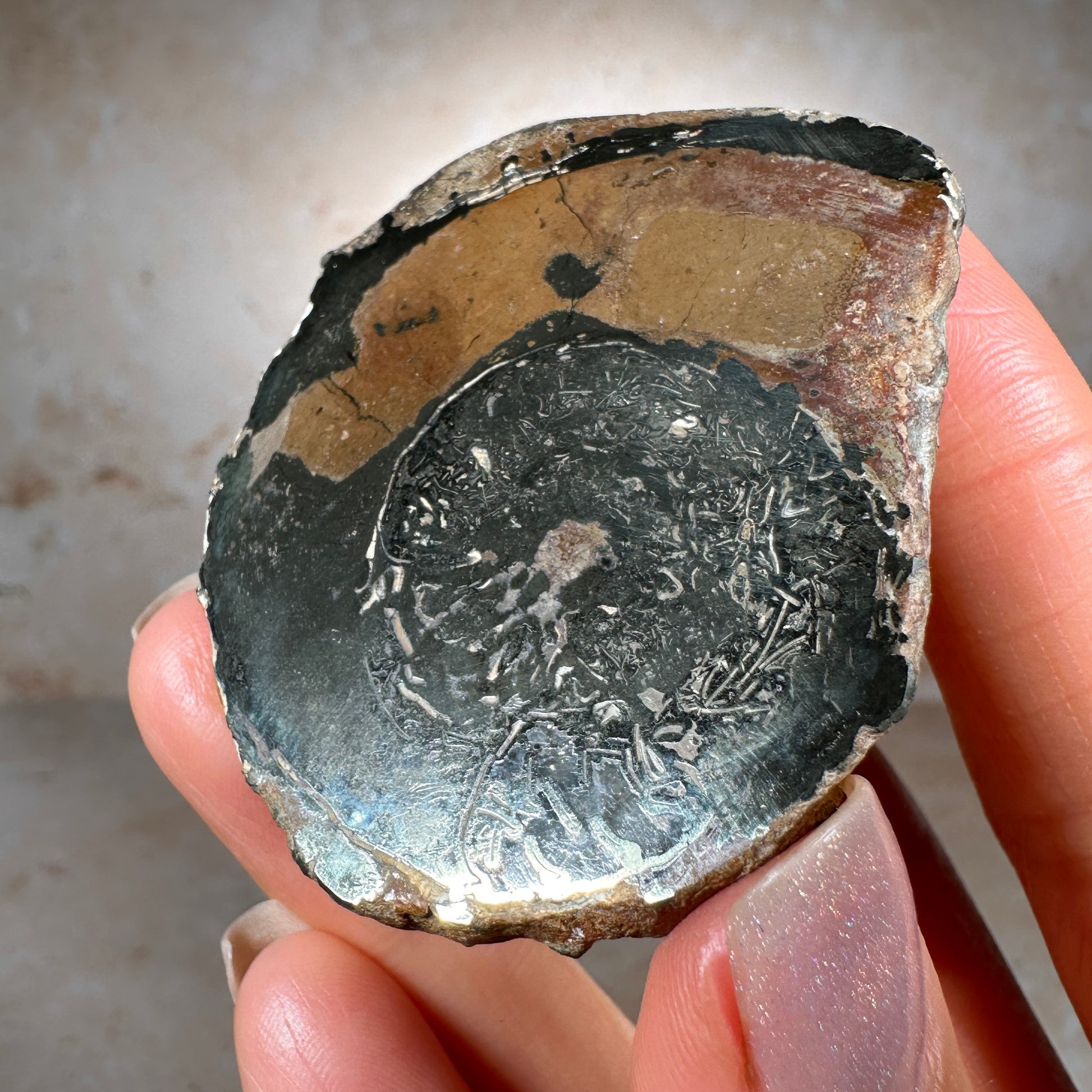 Jurassic Pyritized Ammonite Fossil (Pleuroceras), Germany, 69g