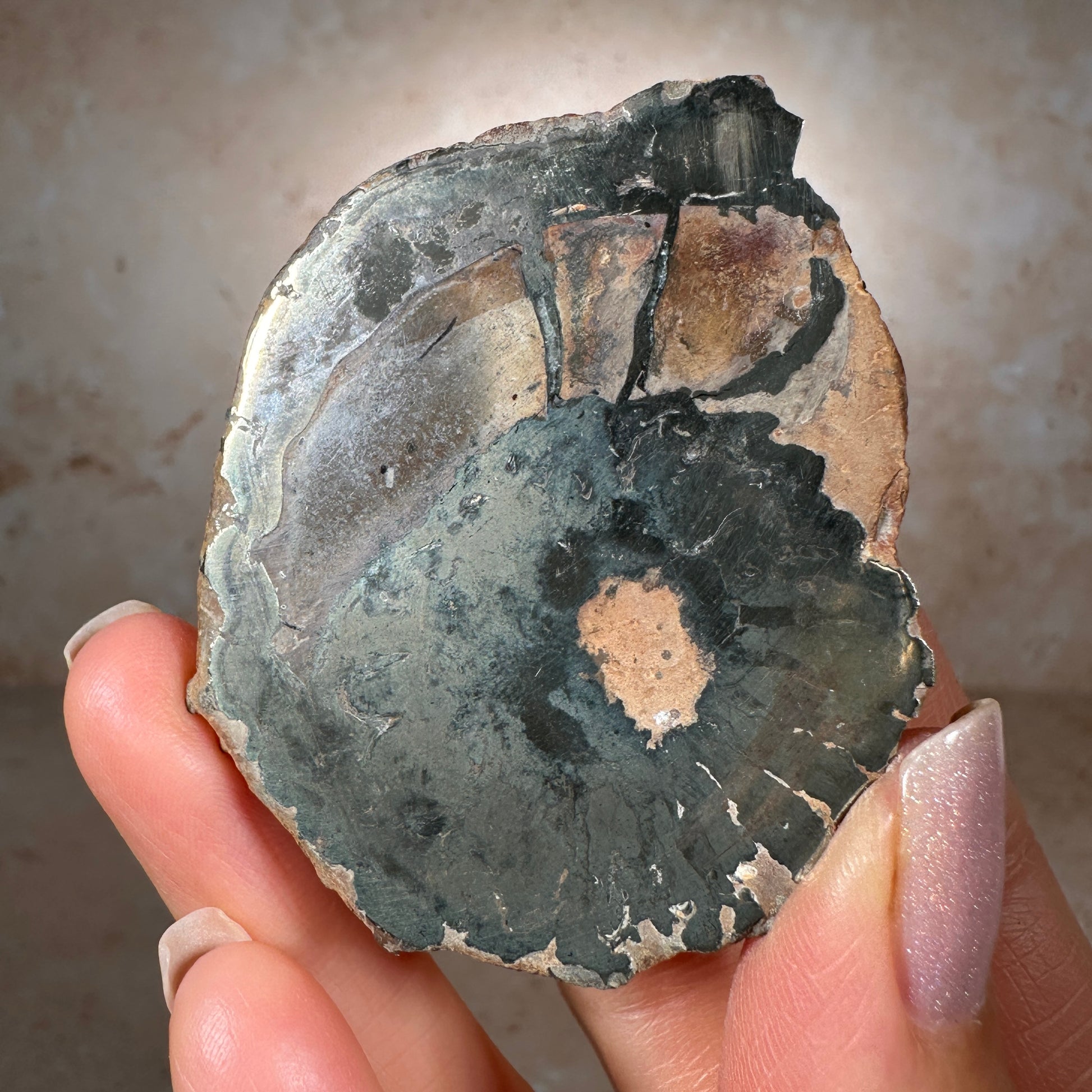 This famous German locality is known for its heavily pyritized ammonites. They have some heft to them, you can feel the gravity of dense iron pyrite as you hold it in your hand.