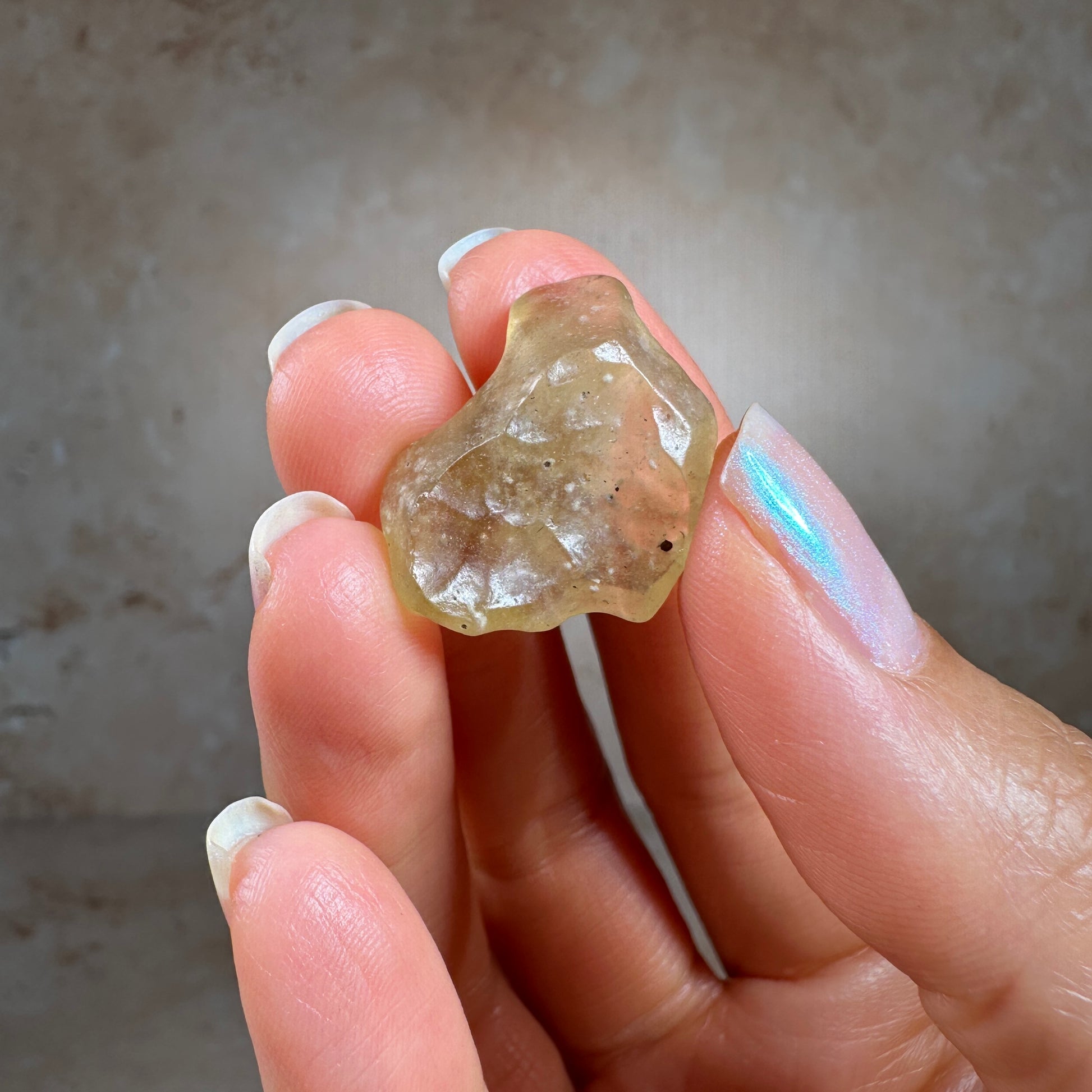 A glowing golden treasure from the Great Sand Sea—this top-tier Libyan Desert Glass specimen is near flawless, with radiant color, translucent clarity, and natural sculpted form. Carefully hand-selected for its superior quality, it’s a collector’s dream and a powerful ally for energy work.