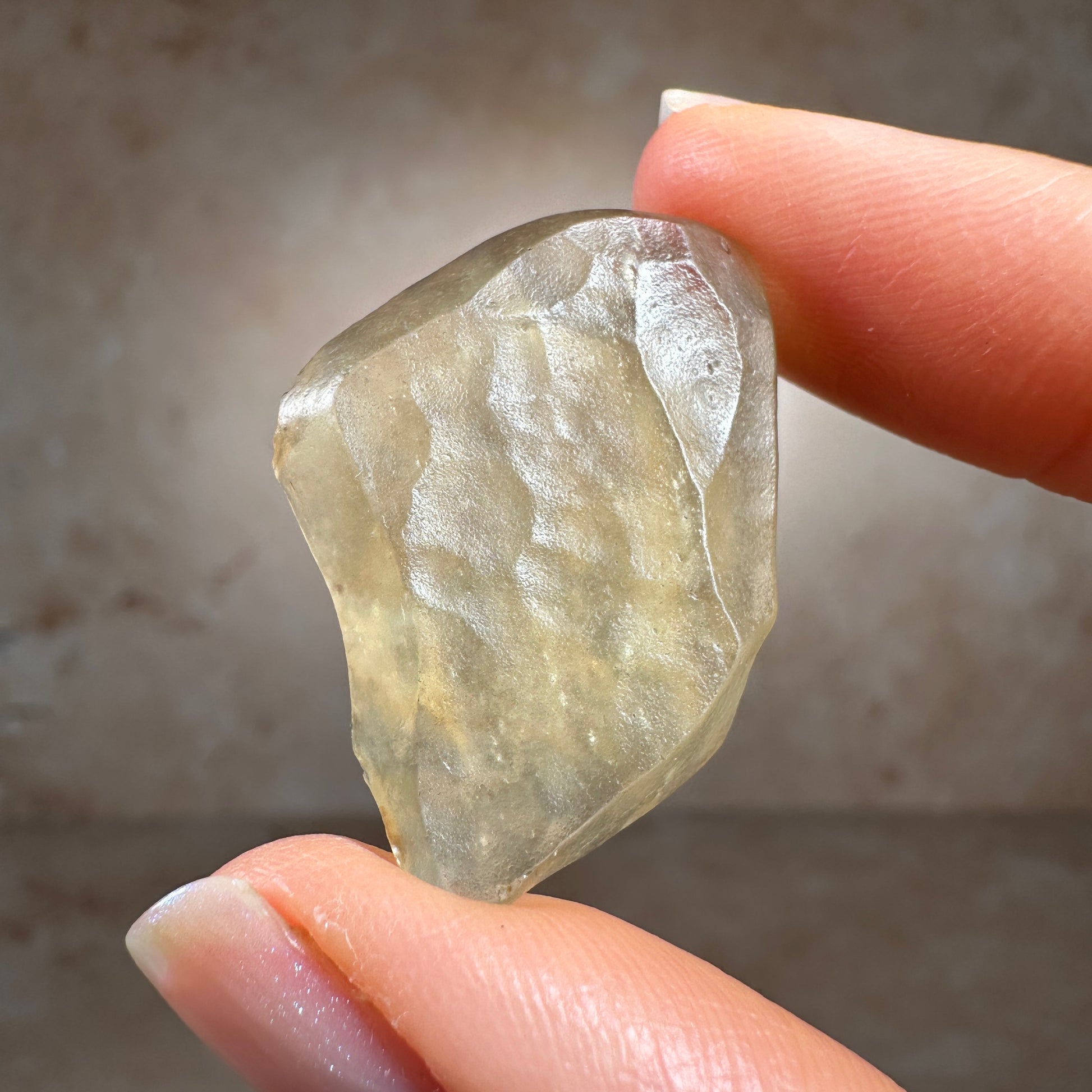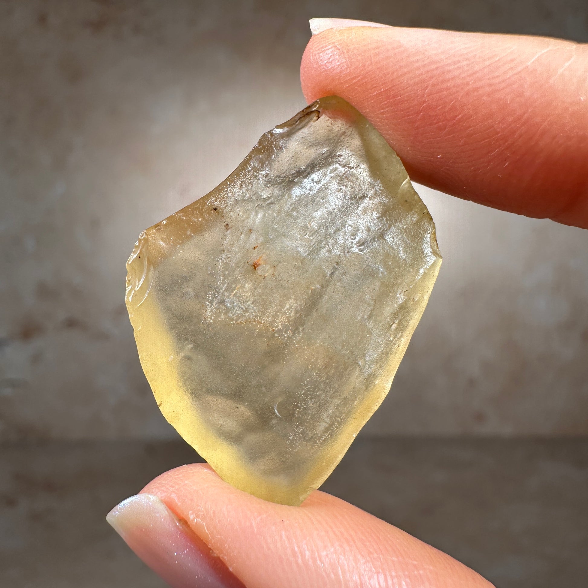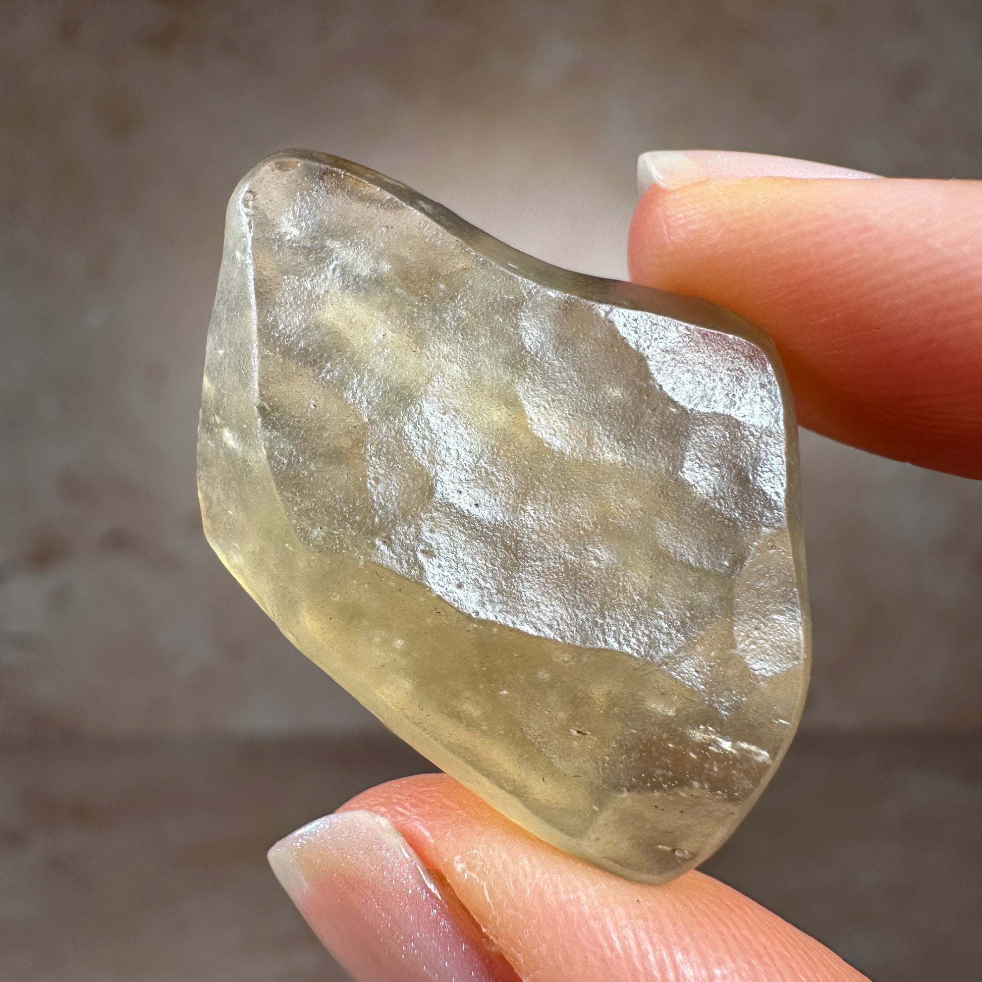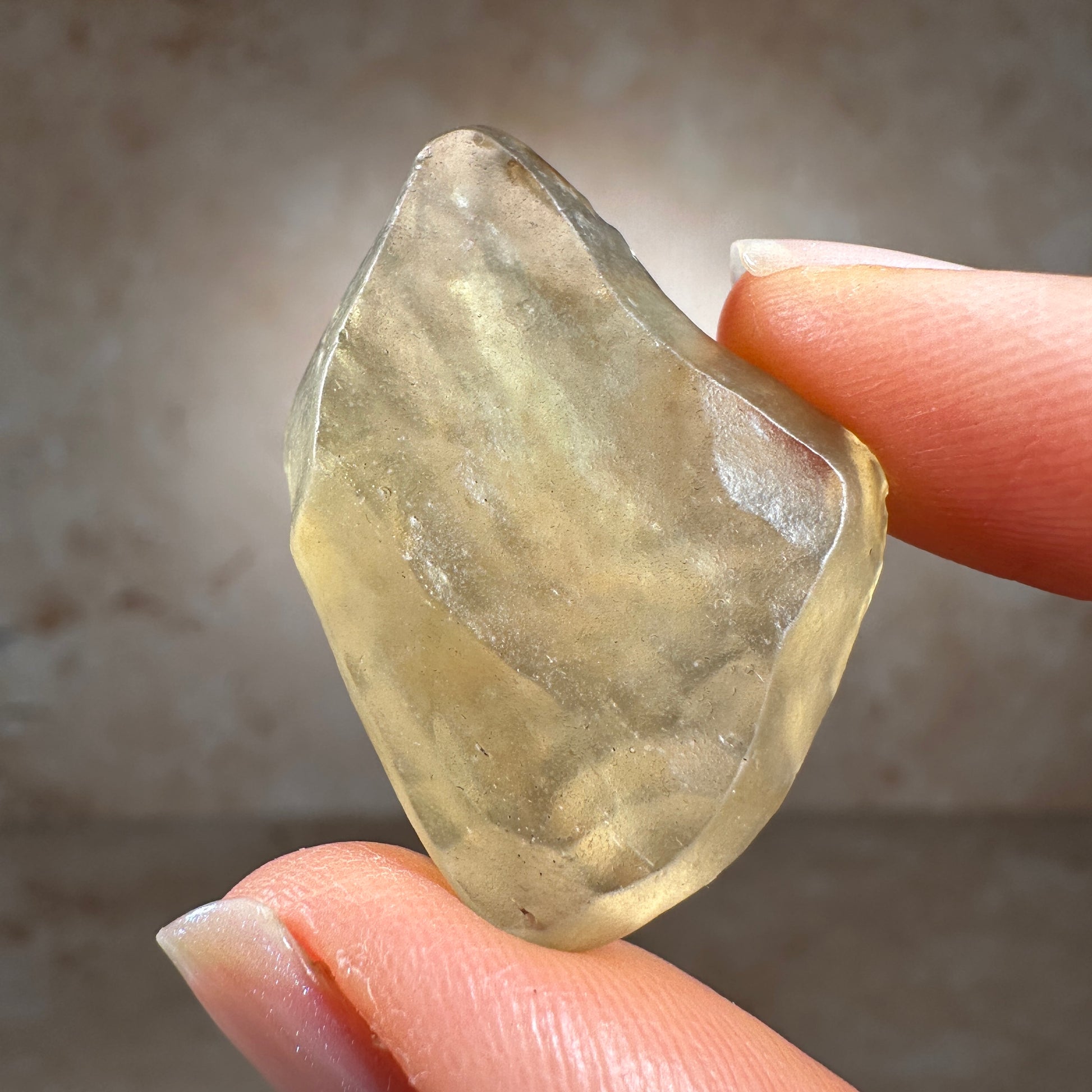 This is a museum-grade Libyan Desert Glass tektite, hand-selected for its exceptional quality. With its vibrant golden-yellow hue, smooth, wind-sculpted form, and glowing translucence, this piece shows classic signs of a surface find—a tektite ventifact, weathered by desert winds over thousands of years. Libyan Desert Glass is one of the most captivating and highly prized tektites on Earth. Found only in the remote and inhospitable dunes of the Great Sand Sea, near the Libya-Egypt border. Due to regional instability and restricted access to the tektite strewn field site, as demand rises and supply tightens, top-grade specimens like this piece are expected to increase in value.
