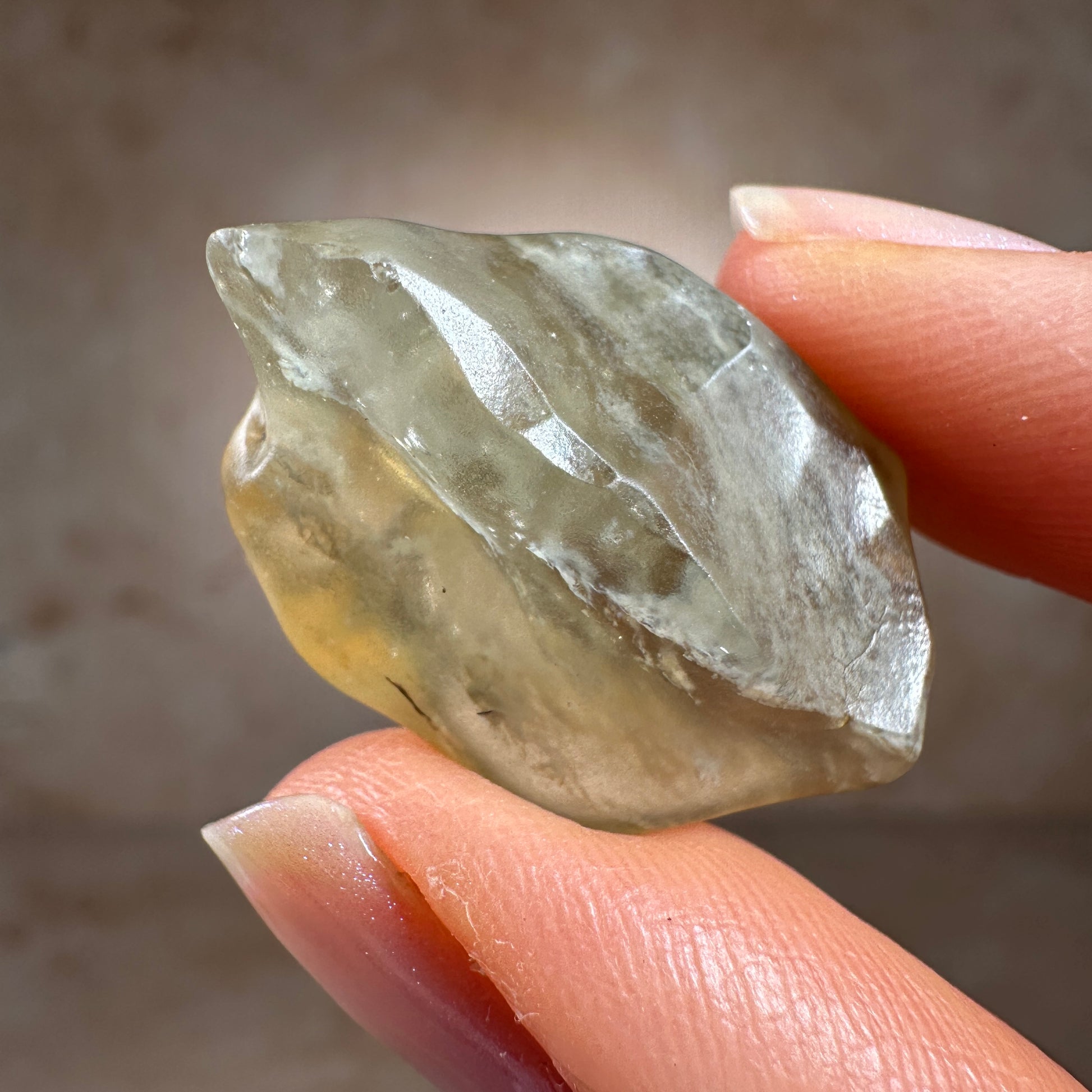 This is a museum-grade Libyan Desert Glass tektite, hand-selected for its exceptional quality. With its vibrant golden-yellow hue, smooth, wind-sculpted form, and glowing translucence, this piece shows classic signs of a surface find—a tektite ventifact, weathered by desert winds over thousands of years. Libyan Desert Glass is one of the most captivating and highly prized tektites on Earth. Found only in the remote and inhospitable dunes of the Great Sand Sea, near the Libya-Egypt border. Due to regional instability and restricted access to the tektite strewn field site, as demand rises and supply tightens, top-grade specimens like this piece are expected to increase in value.