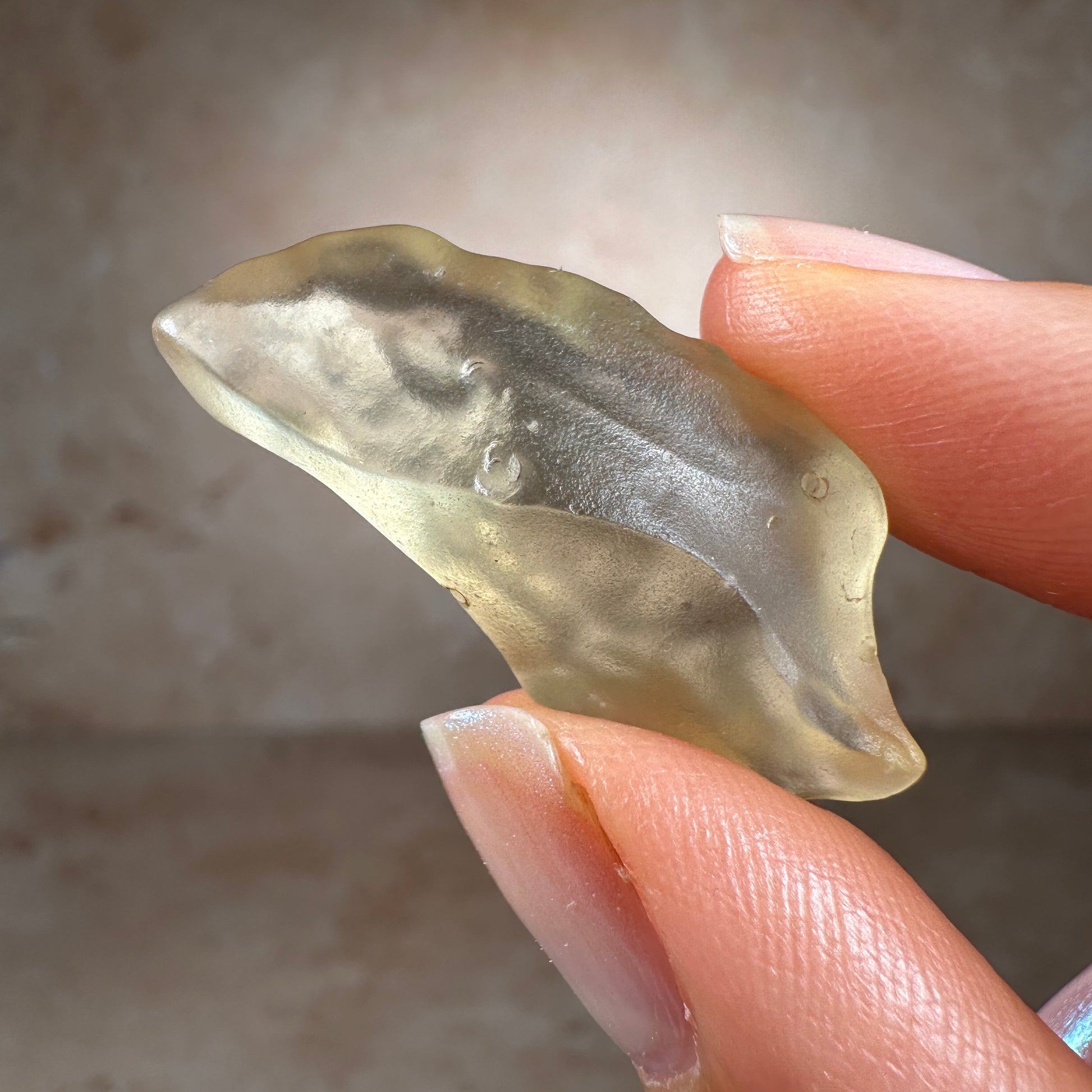 This is a museum-grade Libyan Desert Glass tektite, hand-selected for its exceptional quality. With its vibrant golden-yellow hue, smooth, wind-sculpted form, and glowing translucence, this piece shows classic signs of a surface find—a tektite ventifact, weathered by desert winds over thousands of years. Libyan Desert Glass is one of the most captivating and highly prized tektites on Earth. Found only in the remote and inhospitable dunes of the Great Sand Sea, near the Libya-Egypt border. Due to regional instability and restricted access to the tektite strewn field site, as demand rises and supply tightens, top-grade specimens like this piece are expected to increase in value.