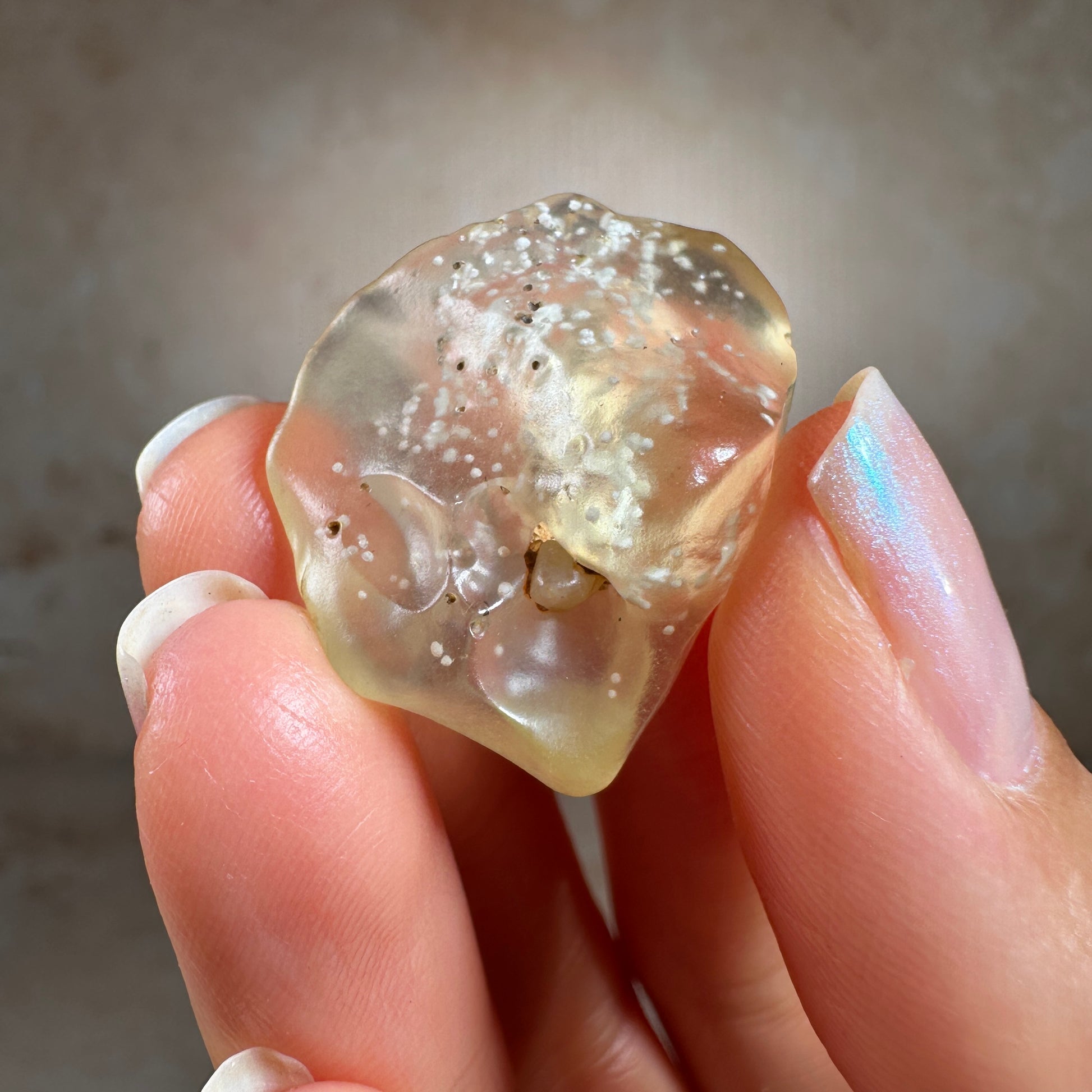 Libyan Desert Glass carries the bold energy of cosmic transformation—forged in a meteorite impact nearly 29 million years ago. This high-frequency tektite activates the solar plexus chakra and is ideal for those ready to step into their power, manifest their potential, and align with their highest purpose. It promotes mental clarity, creativity, confidence, and joy, helping to dissolve fear and encourage expressive, playful energy. Many experience it as a catalyst for personal breakthroughs and visionary insight. It's especially beneficial for meditators, creators, and anyone on a path of self-transformation, helping awaken the courage to shine fully.