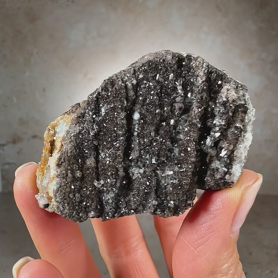 This extraordinary fossil wood formed 225 Million years ago, when an ancient forest experienced volcanic activity, trees were carbonized by volcano eruptions and later swept away in a flood. Eventually they came to rest, buried in silica rich sediment. This series of events created the perfect environment for minerals to crystalize and replace organic material. Quartz and calcite crystals grew and filled in spaces within the organic matter, creating druzy encrusted petrified wood that sparkles like diamonds. This type of fossilization is called permineralization and environmental conditions must be just right. Only a handful of localities around the world have been found to produce this type of permineralized fossil wood and each locality exhibits a very unique appearance.