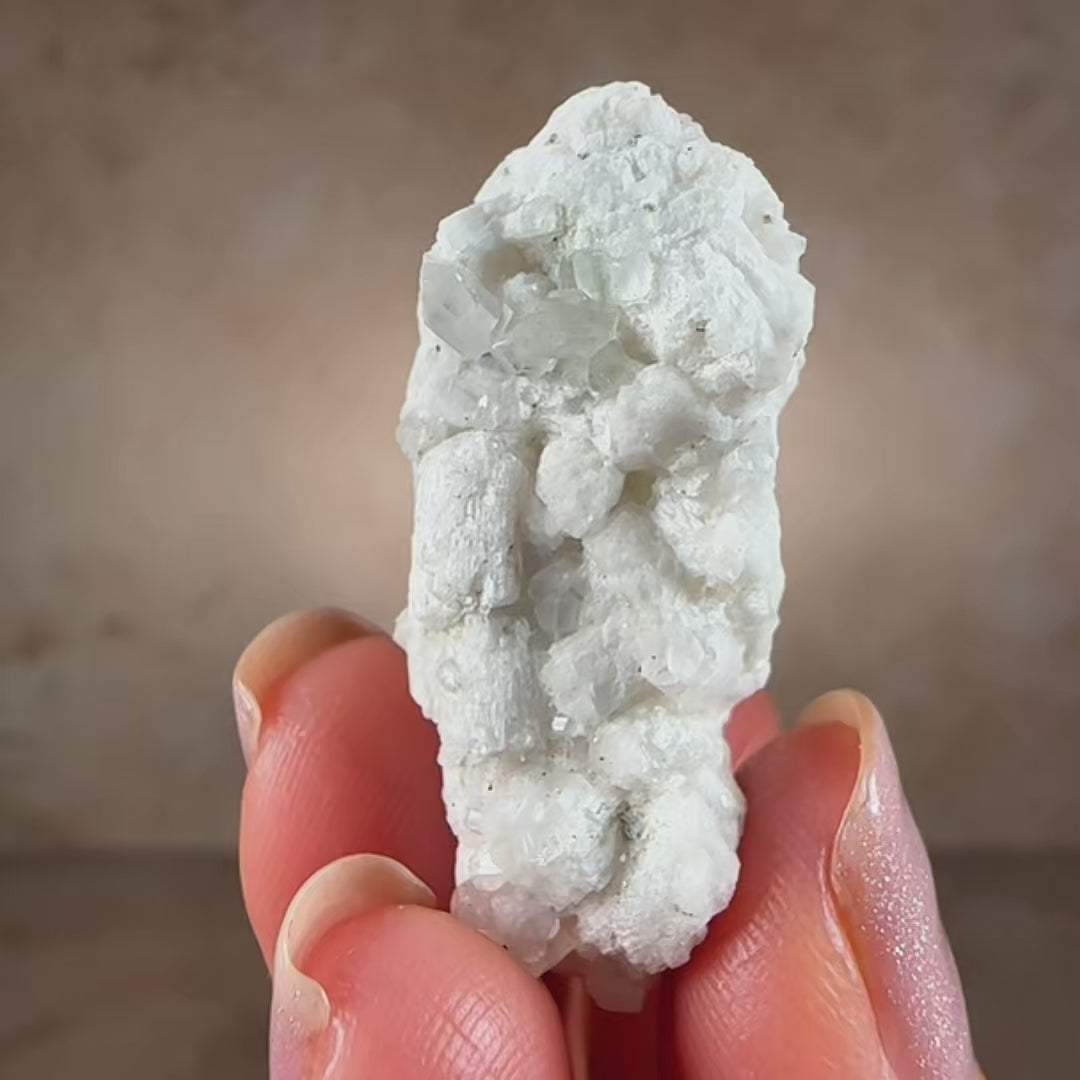 Phenakite on Albite Matrix. A gorgeous Phenakite mineral specimen, this piece has sparkling colorless rhombohedral Phenakite crystals, on white Albite matrix. A rare find from Mt. Antero, Chaffee Co., Colorado.