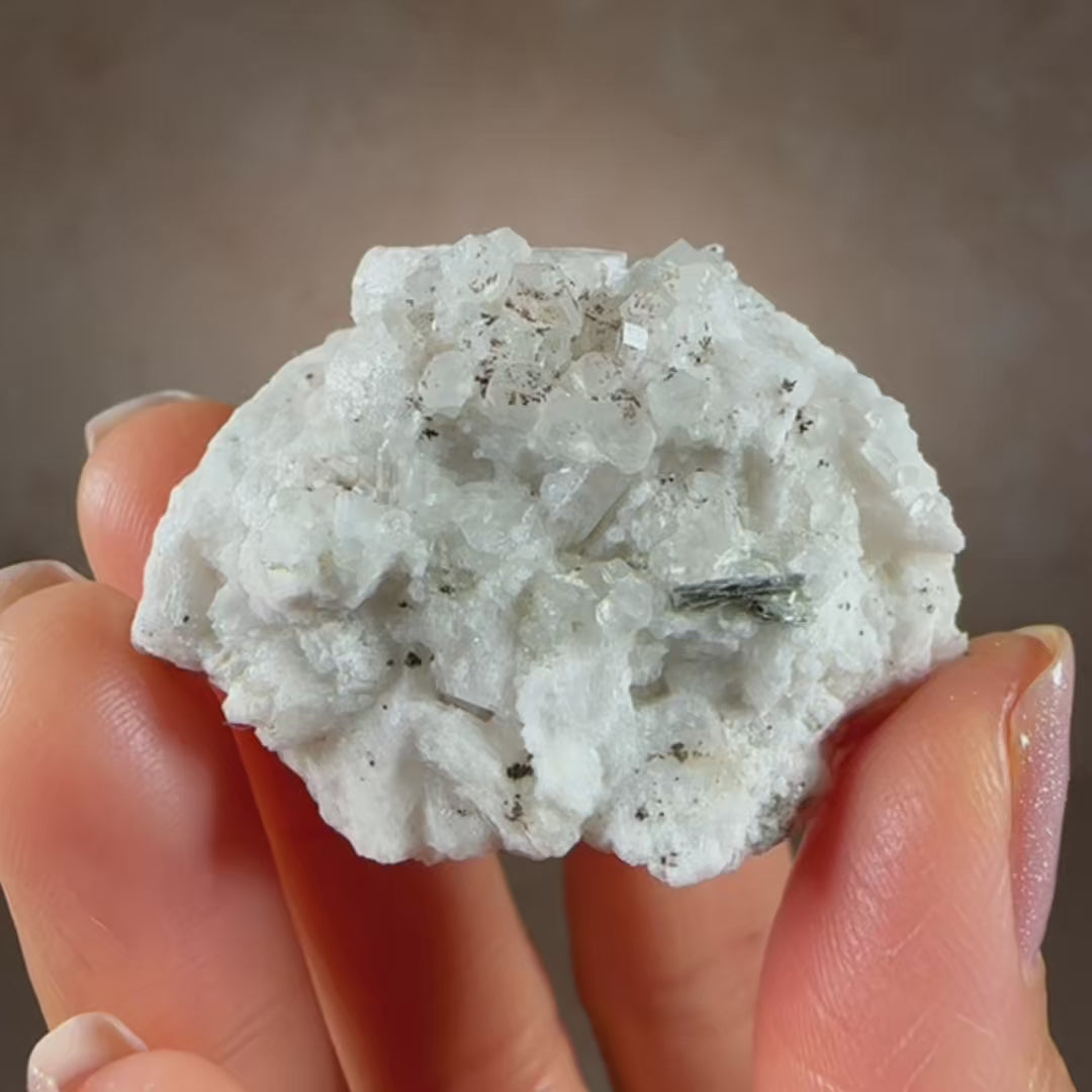Phenakite on Albite Matrix. A gorgeous Phenakite mineral specimen, this piece has sparkling colorless rhombohedral Phenakite crystals, on white Albite matrix. A rare find from Mt. Antero, Chaffee Co., Colorado.