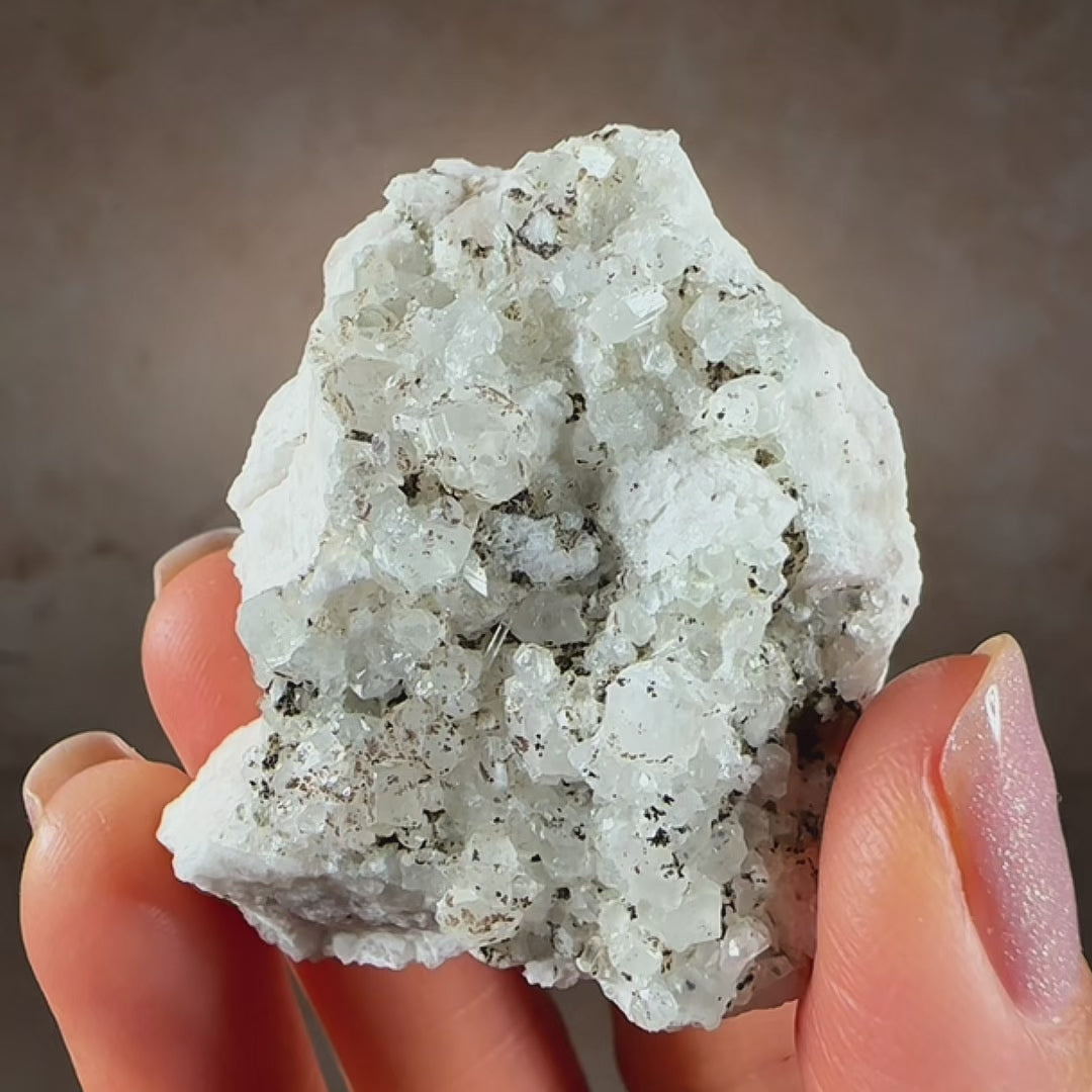 Phenakite on Albite Matrix. A gorgeous Phenakite mineral specimen, this piece is loaded with sparkling colorless rhombohedral Phenakite crystals, on white Albite matrix. A rare find from Mt. Antero, Chaffee Co., Colorado.