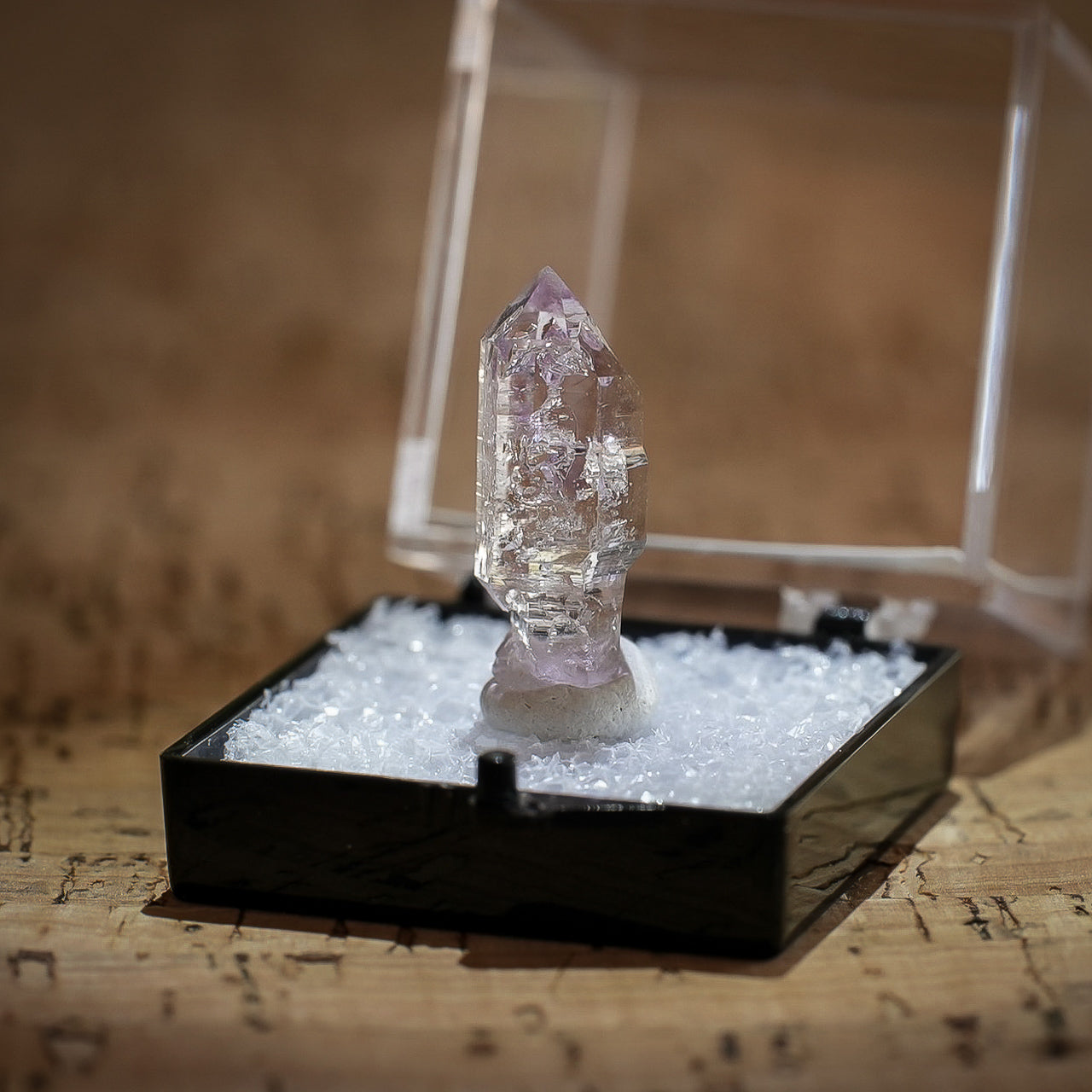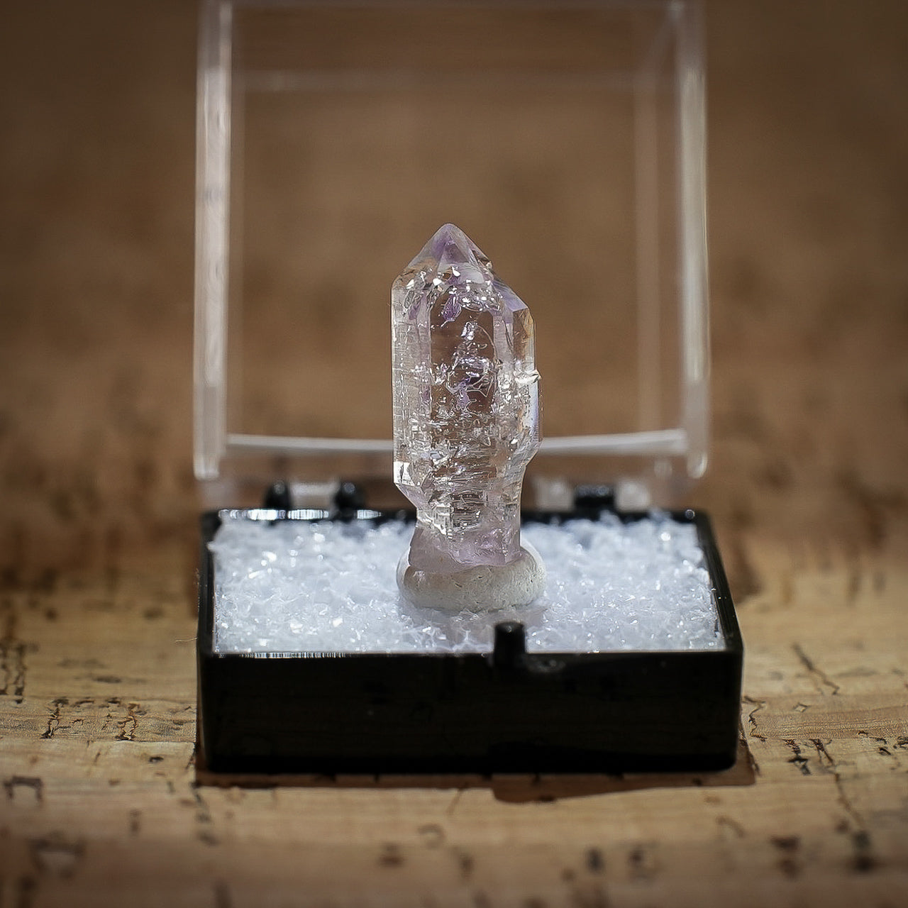 Miniature Amethyst crystal scepter, flawless condition with gorgeous glassy luster, gemmy clarity and juicy lavender amethyst color-zoning. Collected at Scepter Hill in the 90s.