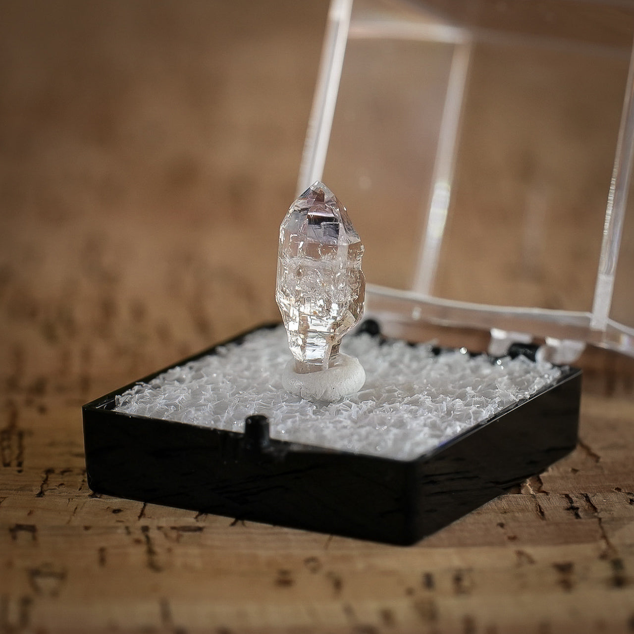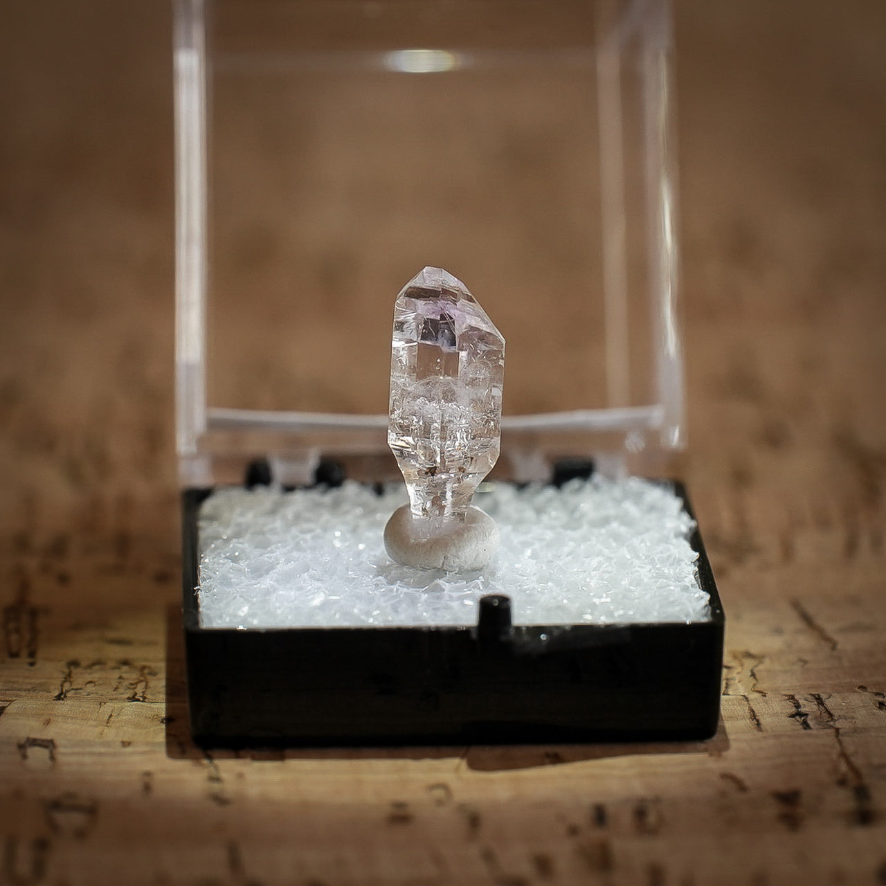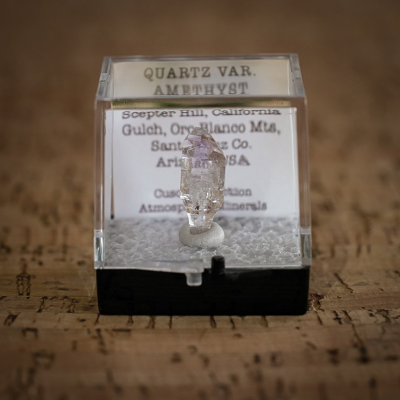 This Arizona Amethyst locality is known for unique formations and glassy lustrous miniatures, including scepters, enhydros, double-terminated, etched or skeletal features at the termination. Scepter Hill was a well-known area for field collectors in the 1990s, today these high quality Scepter Hill Amethyst crystals are a rare find. We recently acquired an old collection of these miniature Amethyst crystals from a long-time field collector in Green Valley, AZ.