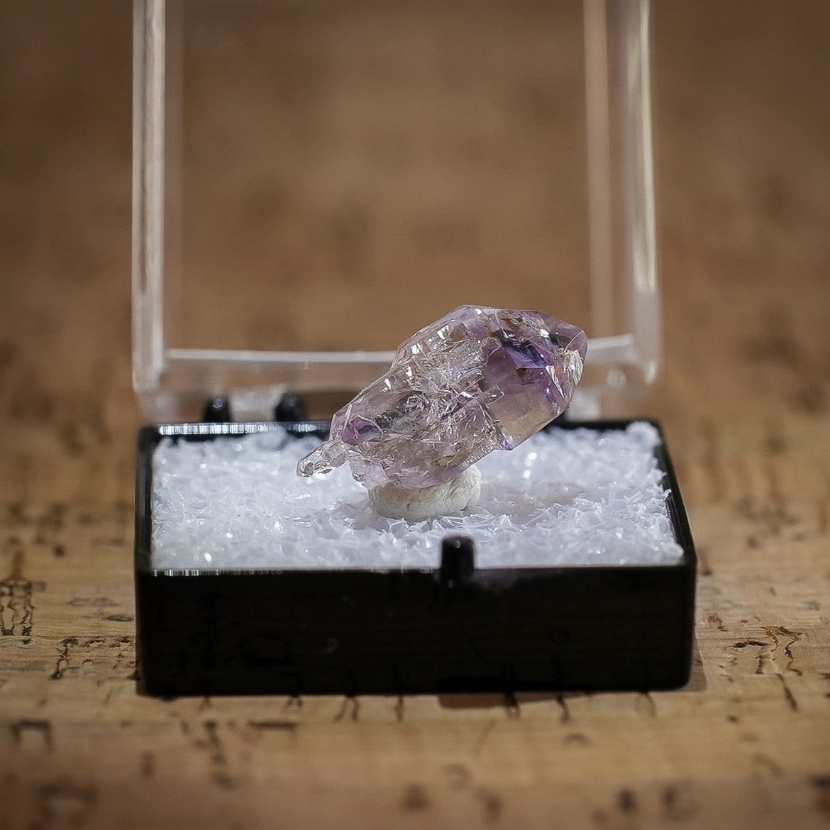 This Arizona Amethyst locality is known for unique formations and glassy lustrous miniatures, including scepters, enhydros, double-terminated, etched or skeletal features at the termination. Scepter Hill was a well-known area for field collectors in the 1990s, today these high quality Scepter Hill Amethyst crystals are a rare find. We recently acquired an old collection of these miniature Amethyst crystals from a long-time field collector in Green Valley, AZ.
