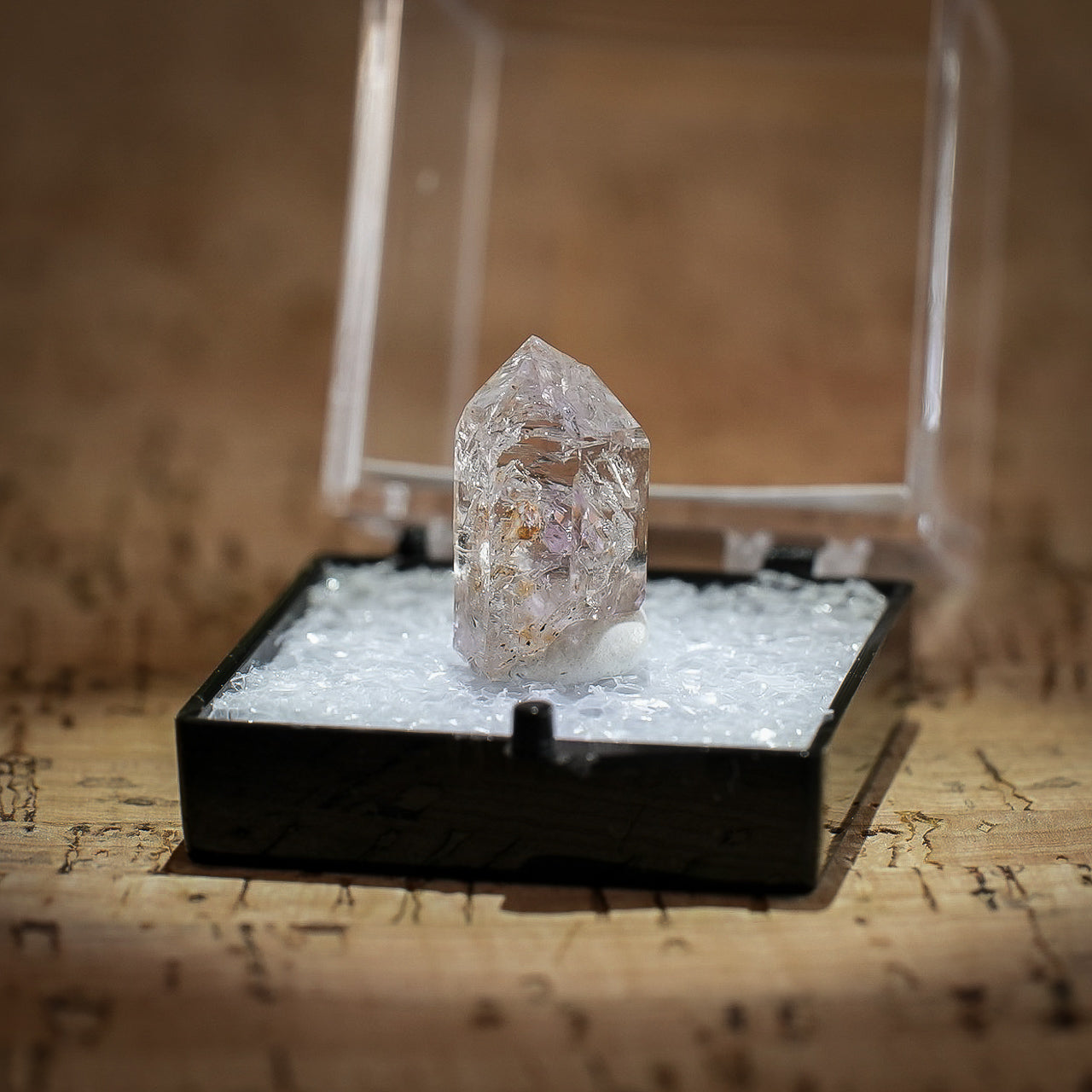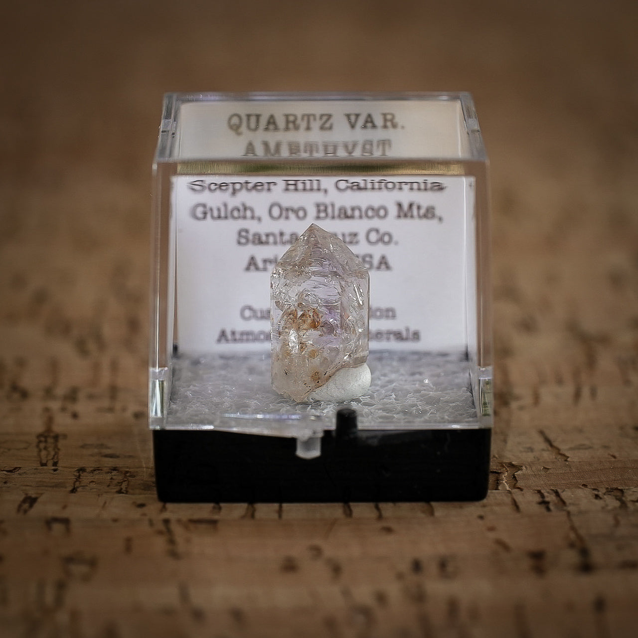 This Arizona Amethyst locality is known for unique formations and glassy lustrous miniatures, including scepters, enhydros, double-terminated, etched or skeletal features at the termination. Scepter Hill was a well-known area for field collectors in the 1990s, today these high quality Scepter Hill Amethyst crystals are a rare find. We recently acquired an old collection of these miniature Amethyst crystals from a long-time field collector in Green Valley, AZ.