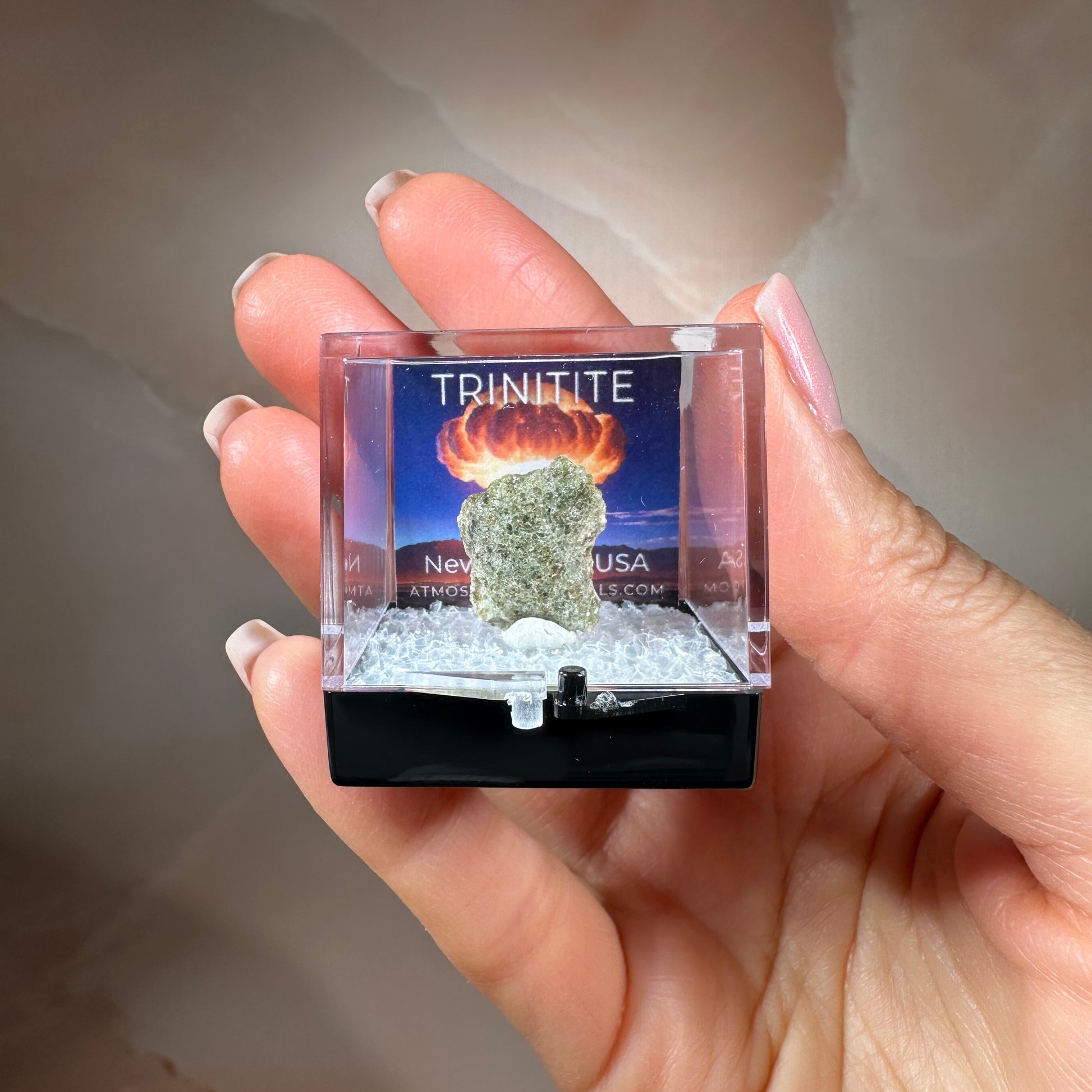 Formed on July 16, 1945, when desert sand melted under the intense heat of the world’s first atomic test, Trinitite is a rare historic glass. Collected in the 1940s–50s before the site was closed, these preserved pieces are highly collectible relics of history.