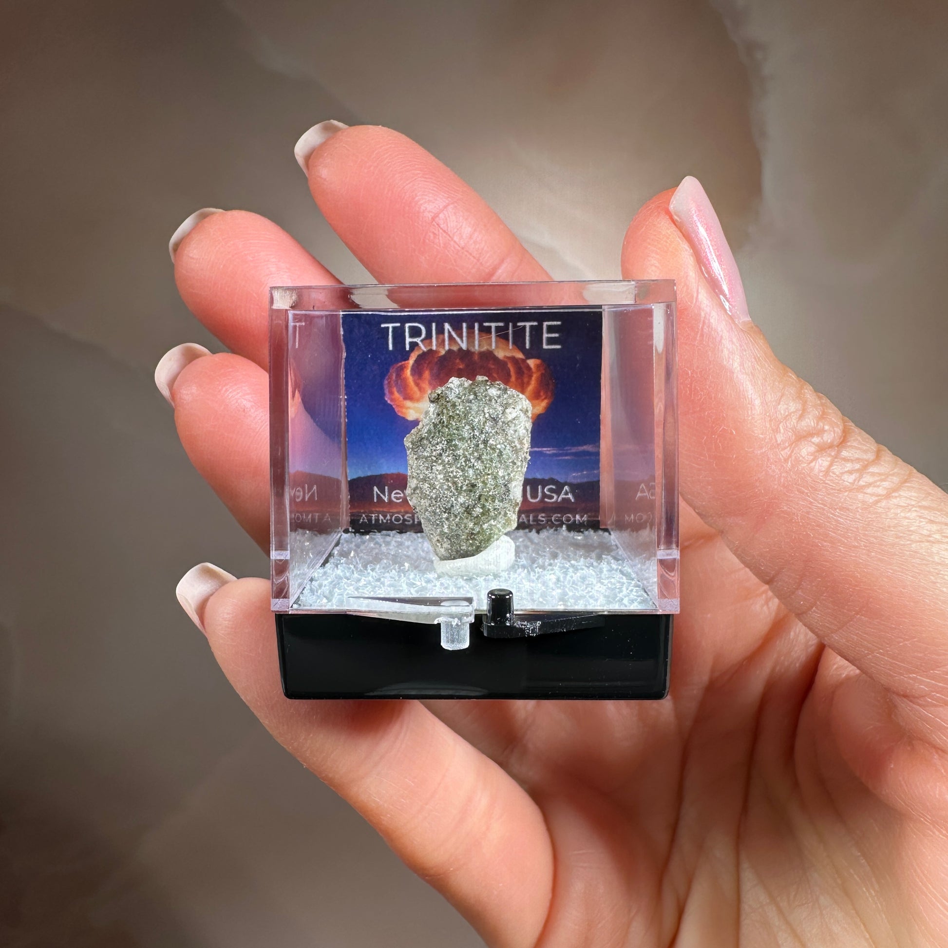 To show unique details, each piece of Trinitite is photographed close-up. This may make items appear larger than their actual size. Please refer to size measurements for accurate assessment.