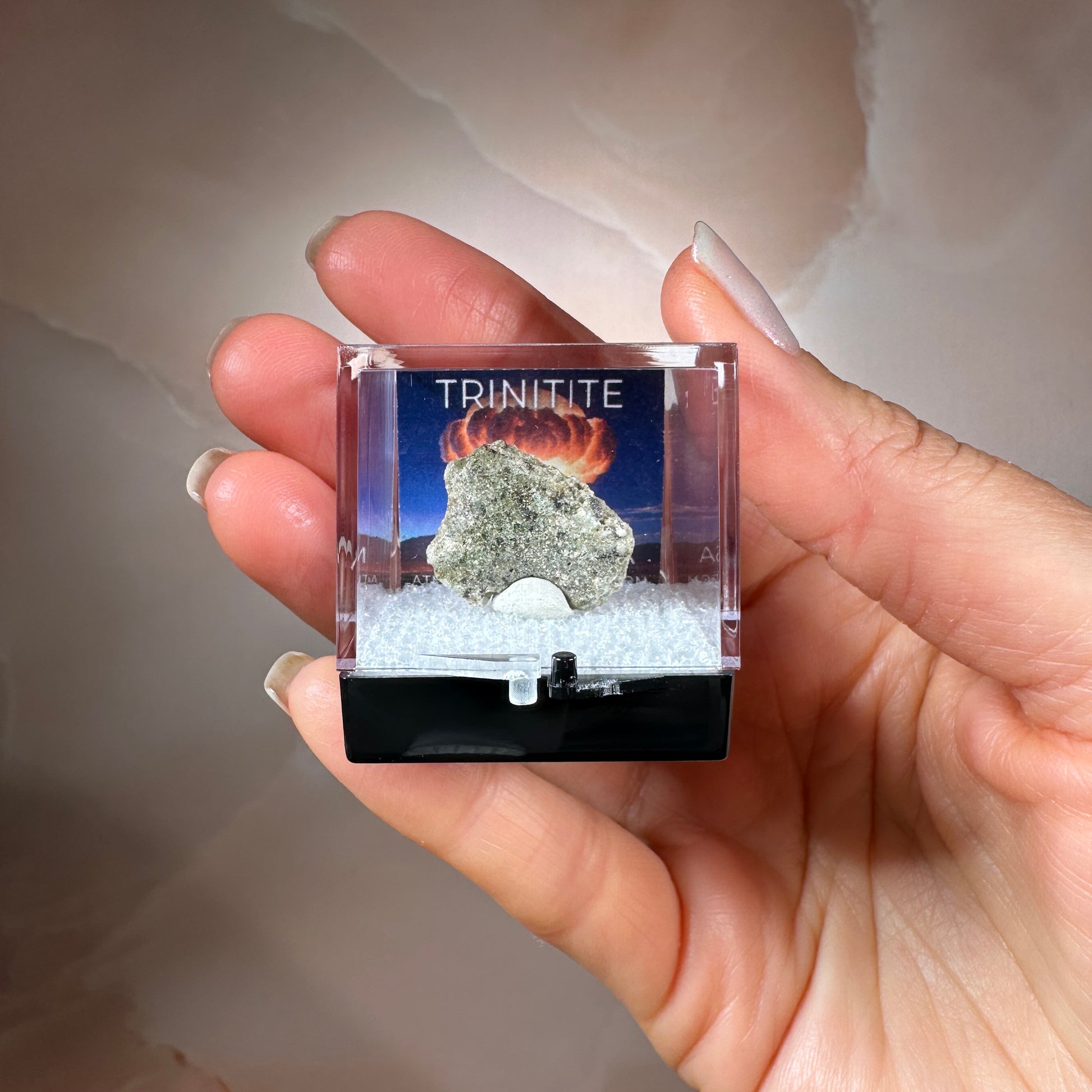 Formed on July 16, 1945, when desert sand melted under the intense heat of the world’s first atomic test, Trinitite is a rare historic glass. Collected in the 1940s–50s before the site was closed, these preserved pieces are highly collectible relics of history.