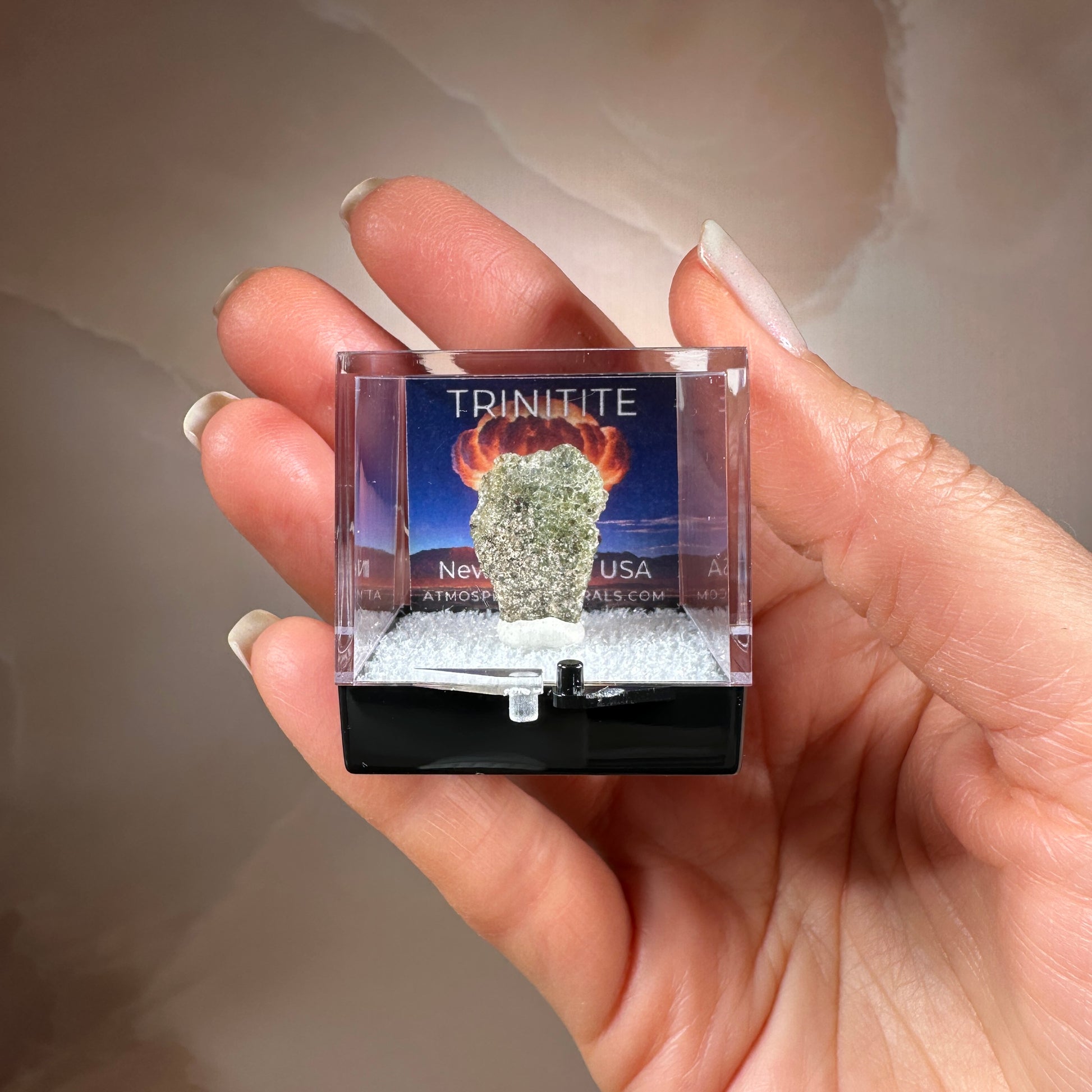 To show unique details, each piece of Trinitite is photographed close-up. This may make items appear larger than their actual size. Please refer to size measurements for accurate assessment.