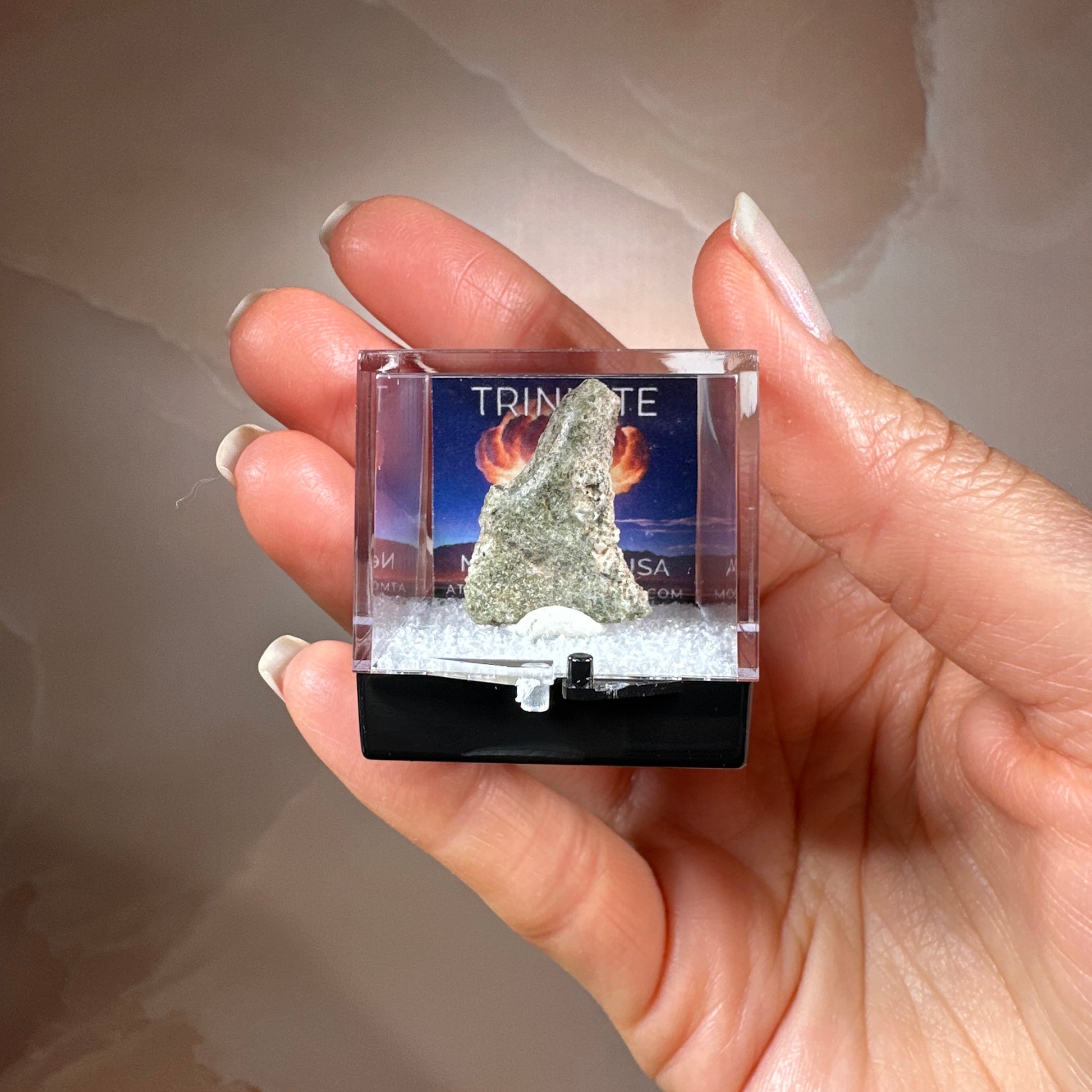 Formed on July 16, 1945, when desert sand melted under the intense heat of the world’s first atomic test, Trinitite is a rare historic glass. Collected in the 1940s–50s before the site was closed, these preserved pieces are highly collectible relics of history.