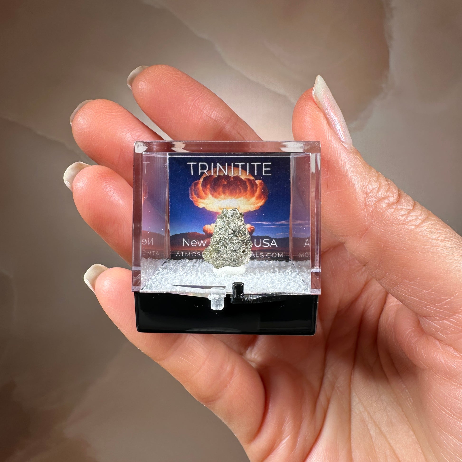Formed on July 16, 1945, when desert sand melted under the intense heat of the world’s first atomic test, Trinitite is a rare historic glass. Collected in the 1940s–50s before the site was closed, these preserved pieces are highly collectible relics of history.