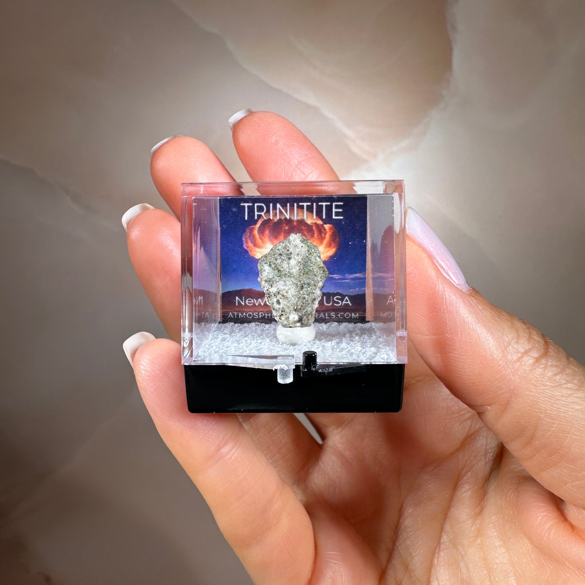 Own a piece of history. Trinitite is a rare, olive-green glass created when desert sand fused under the intense heat of the world’s first atomic bomb test—code-named Trinity.