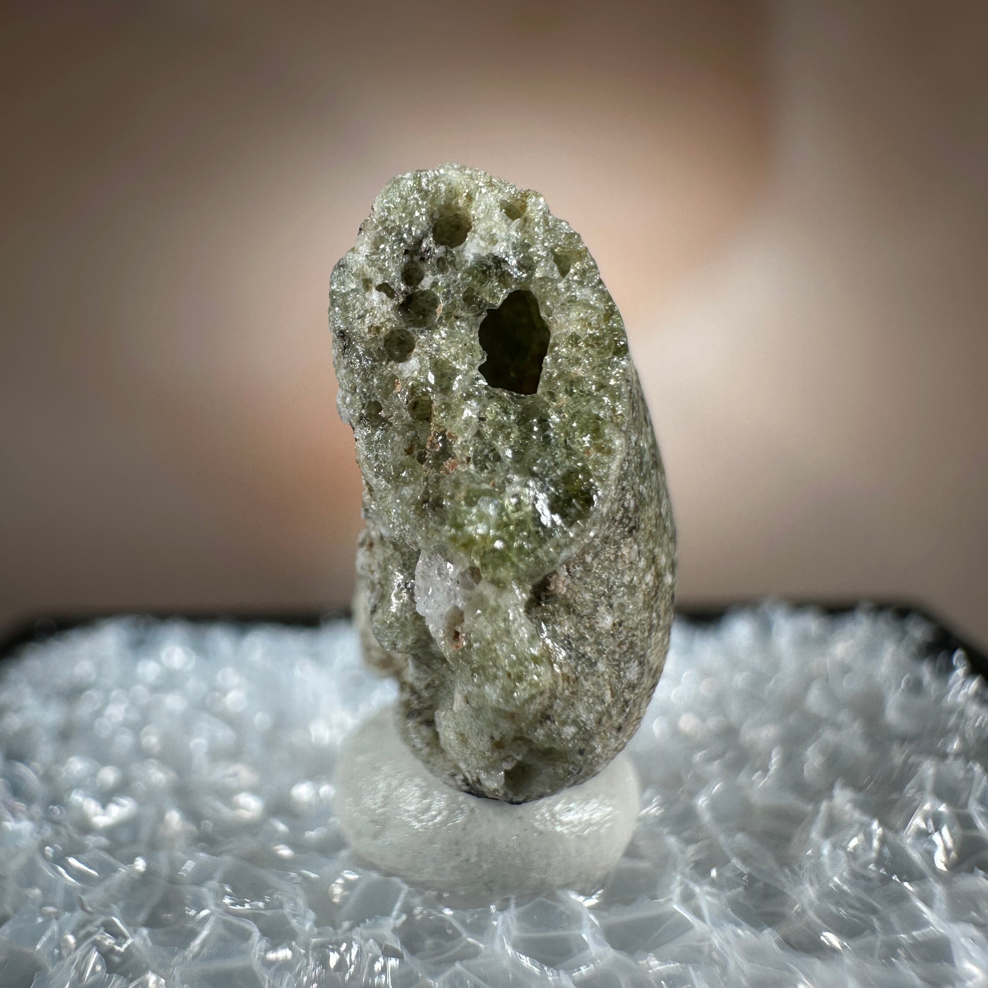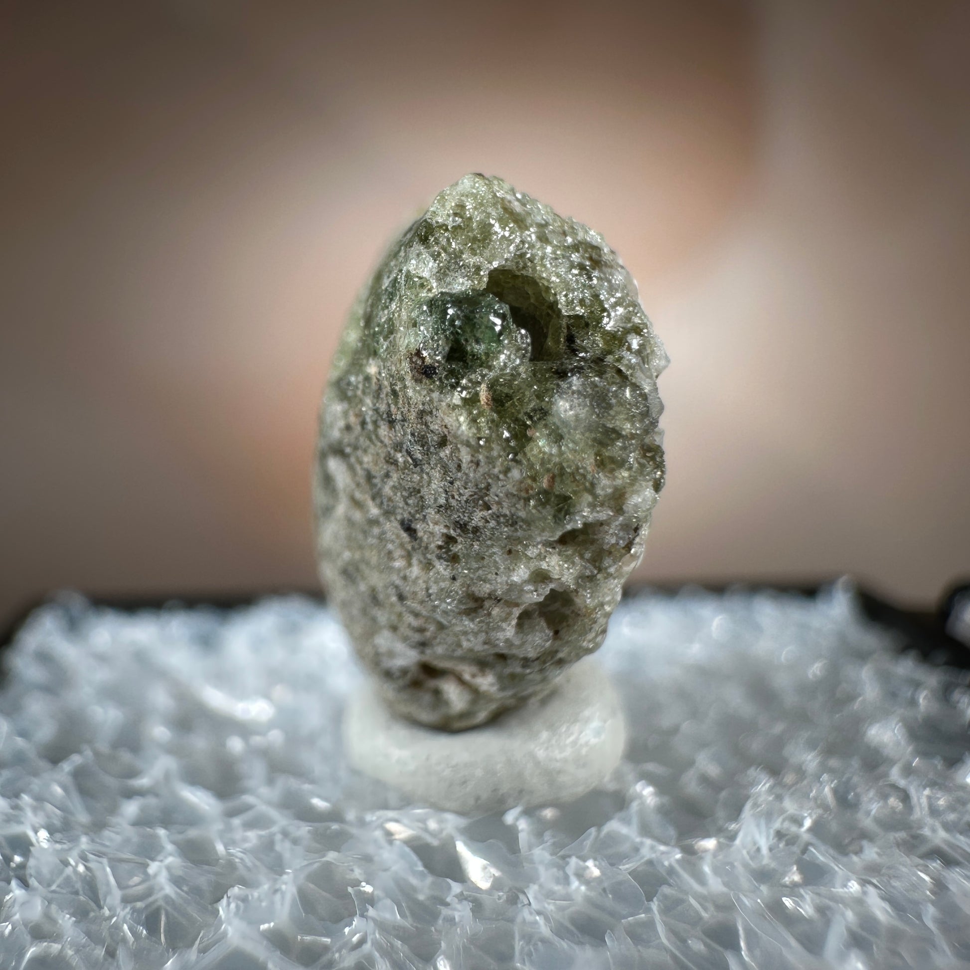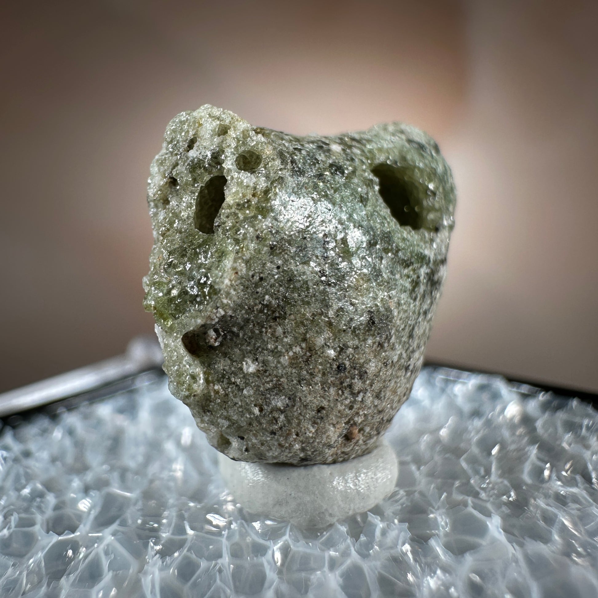 One interesting characteristic of Trinitite, is the sand grain textured bottom, with a smooth melted upper surface. This has lead many to believe these Trinitite pieces were actually formed from sand that was sucked up into the fireball of the explosion and later fell into the crater, rather than simply melting in place beneath the explosion. The Trinity test site is usually off limits, opening only 1-2 times a year for visitors. Our Trinitite is from a former rock shop owner who retired years ago, he had this Trinitite stored away for decades.