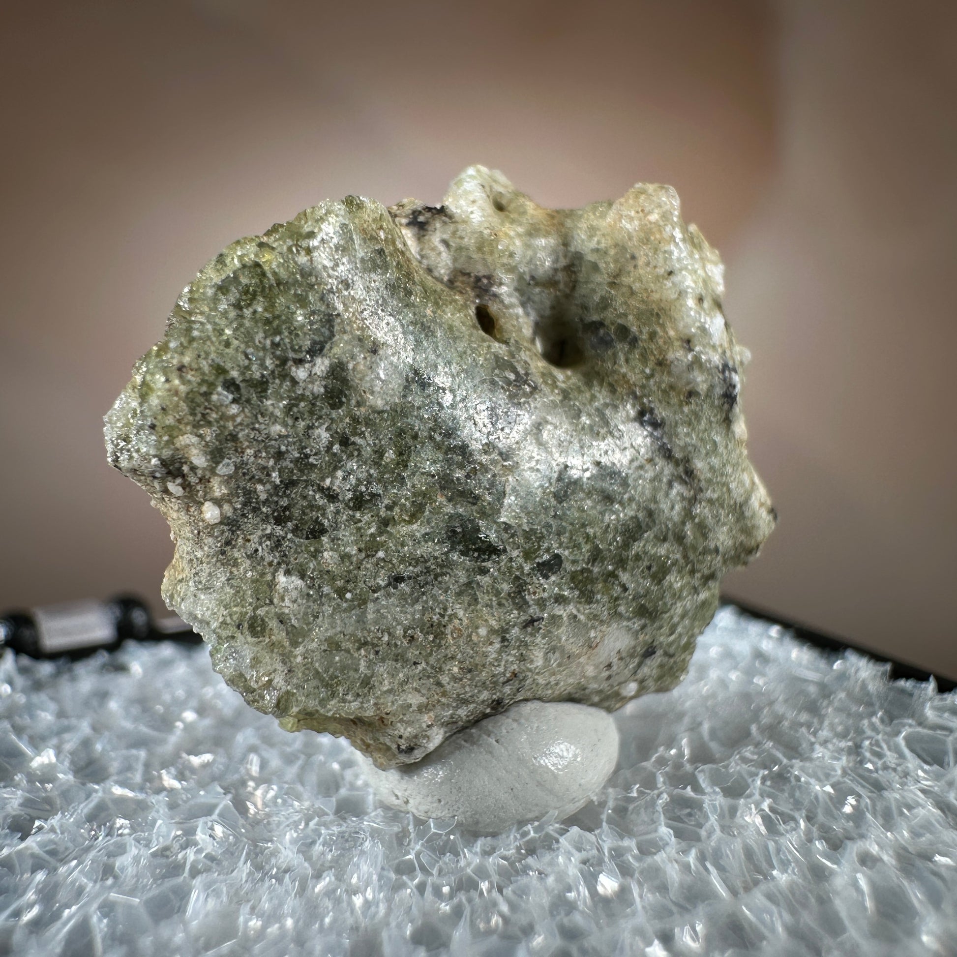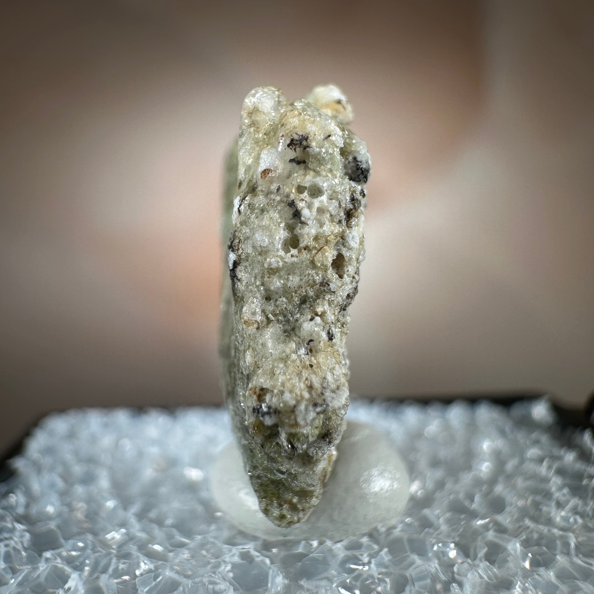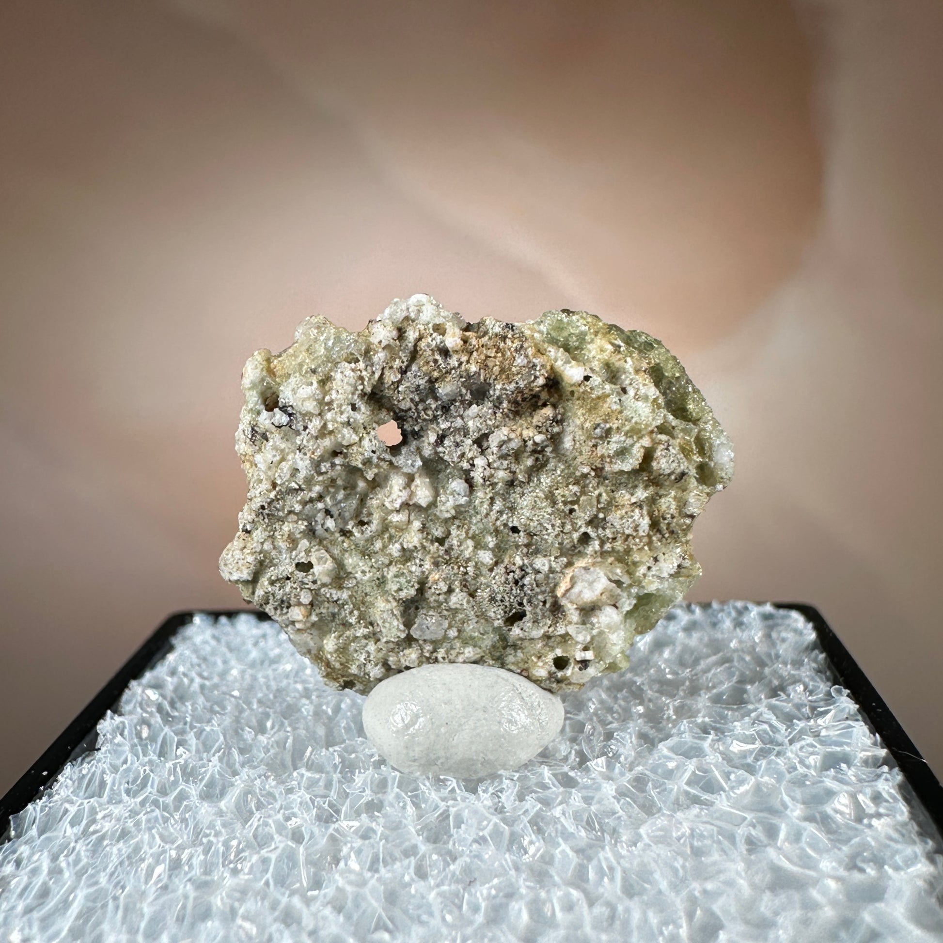 One interesting characteristic of Trinitite, is the sand grain textured bottom, with a smooth melted upper surface. This has lead many to believe these Trinitite pieces were actually formed from sand that was sucked up into the fireball of the explosion and later fell into the crater, rather than simply melting in place beneath the explosion. The Trinity test site is usually off limits, opening only 1-2 times a year for visitors. Our Trinitite is from a former rock shop owner who retired years ago, he had this Trinitite stored away for decades.