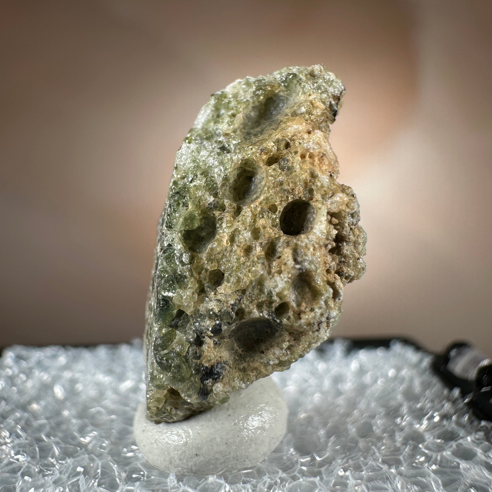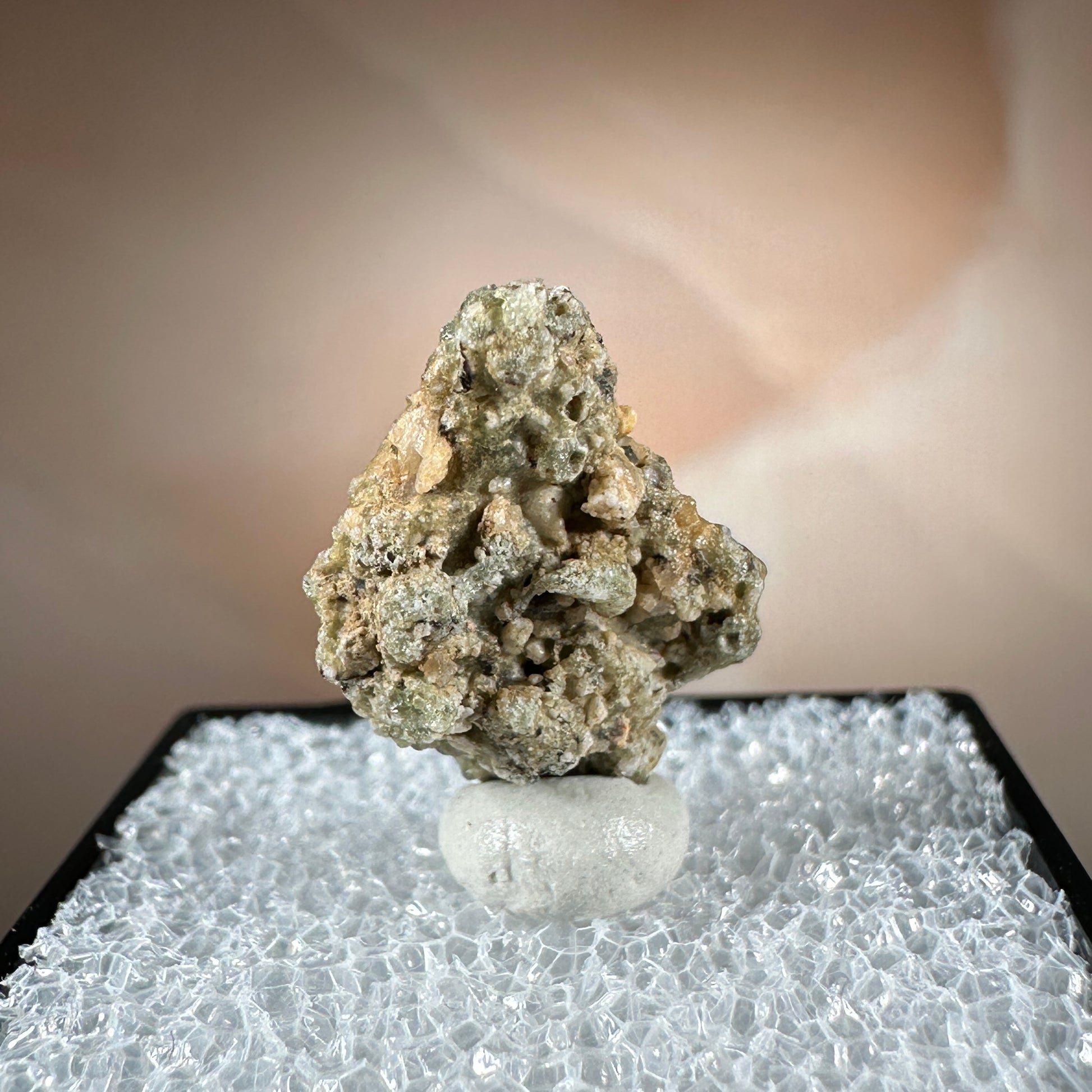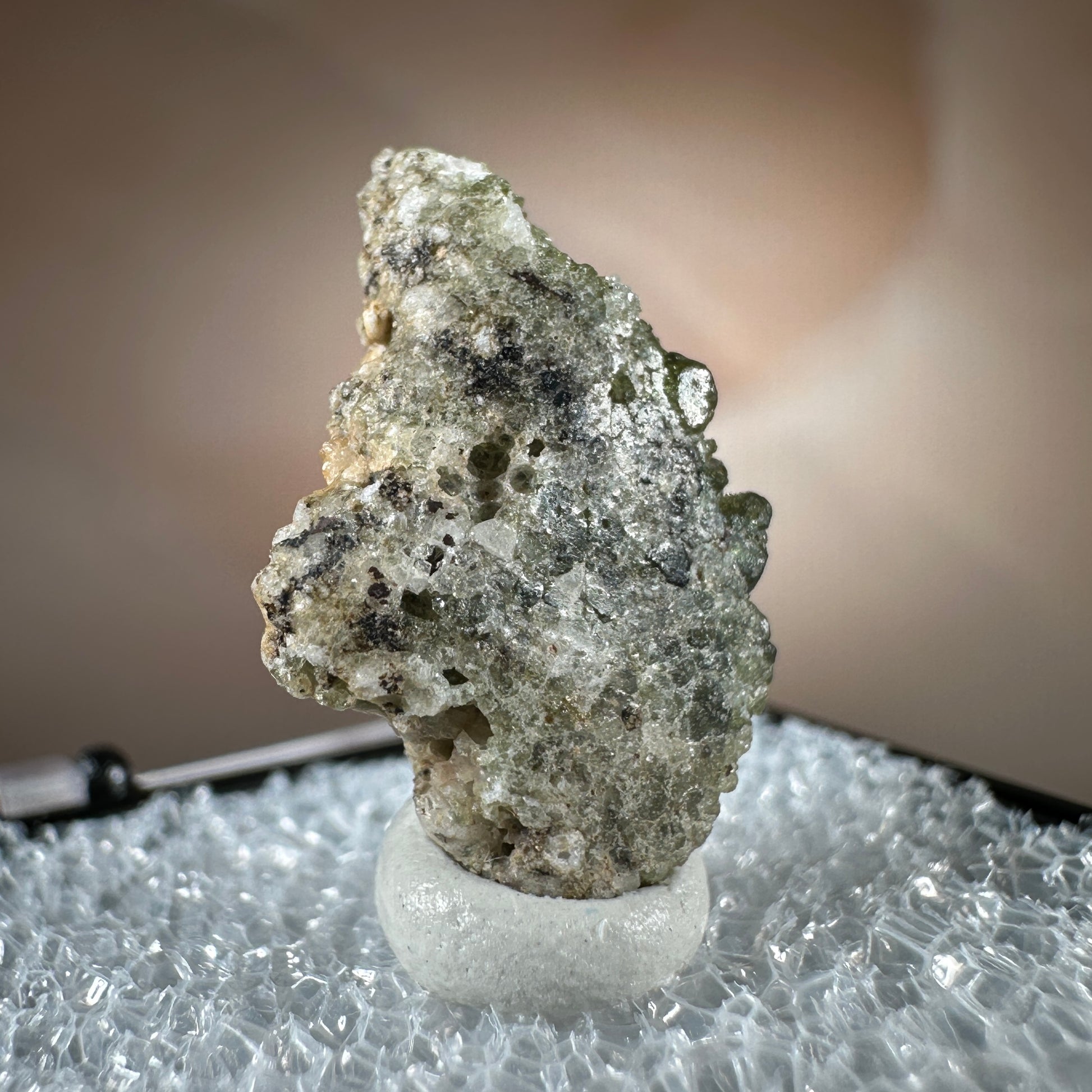 One interesting characteristic of Trinitite, is the sand grain textured bottom, with a smooth melted upper surface. This has lead many to believe these Trinitite pieces were actually formed from sand that was sucked up into the fireball of the explosion and later fell into the crater, rather than simply melting in place beneath the explosion. The Trinity test site is usually off limits, opening only 1-2 times a year for visitors. Our Trinitite is from a former rock shop owner who retired years ago, he had this Trinitite stored away for decades.