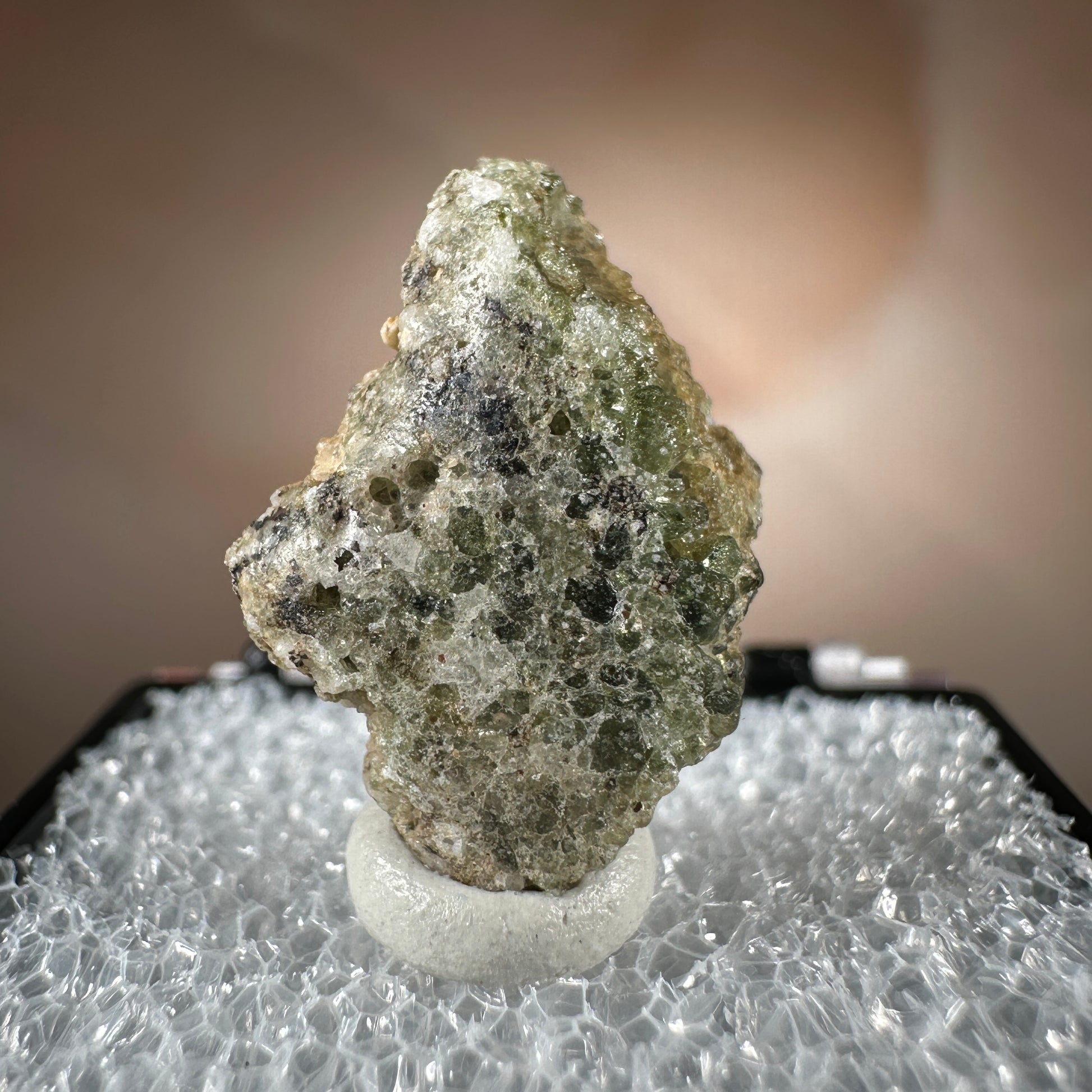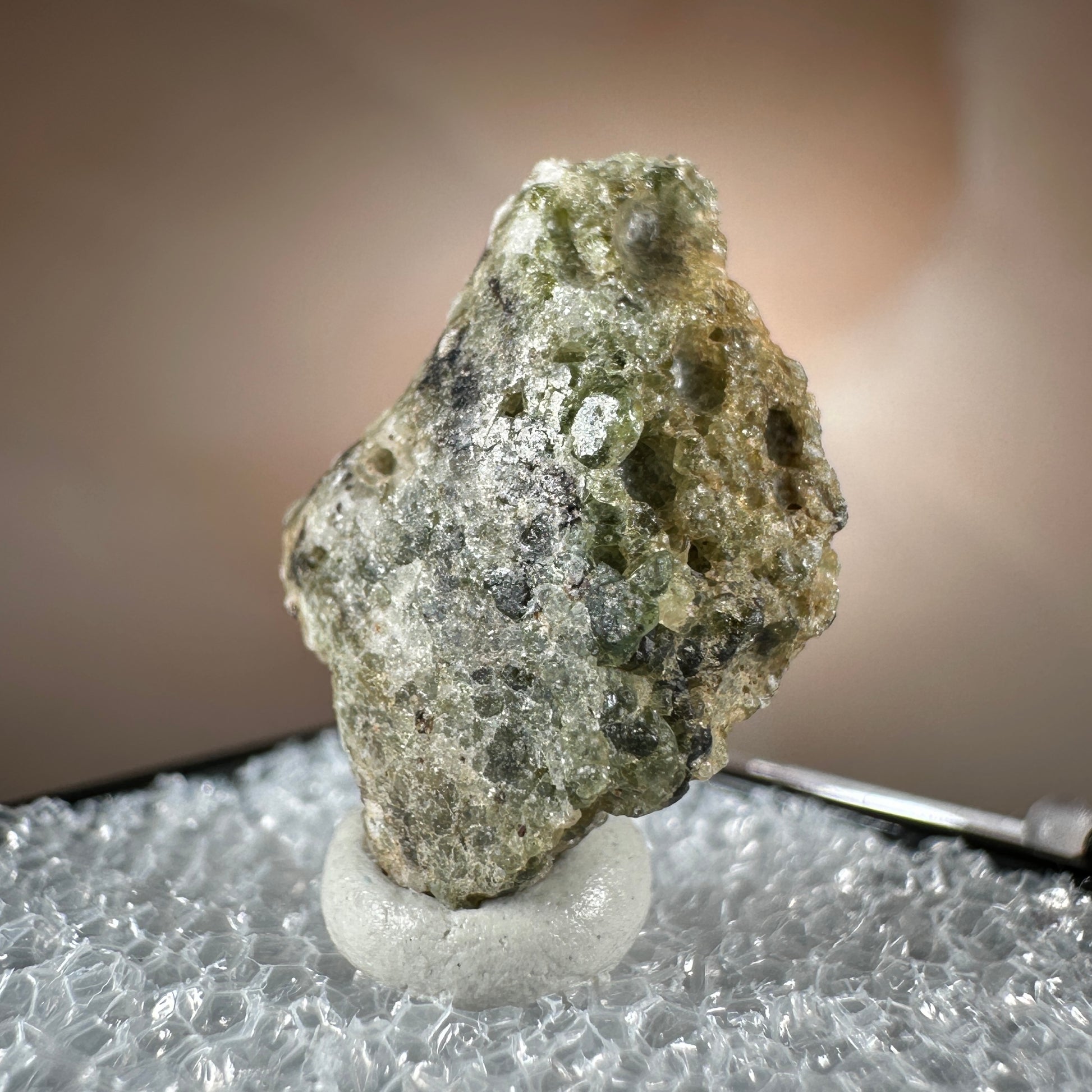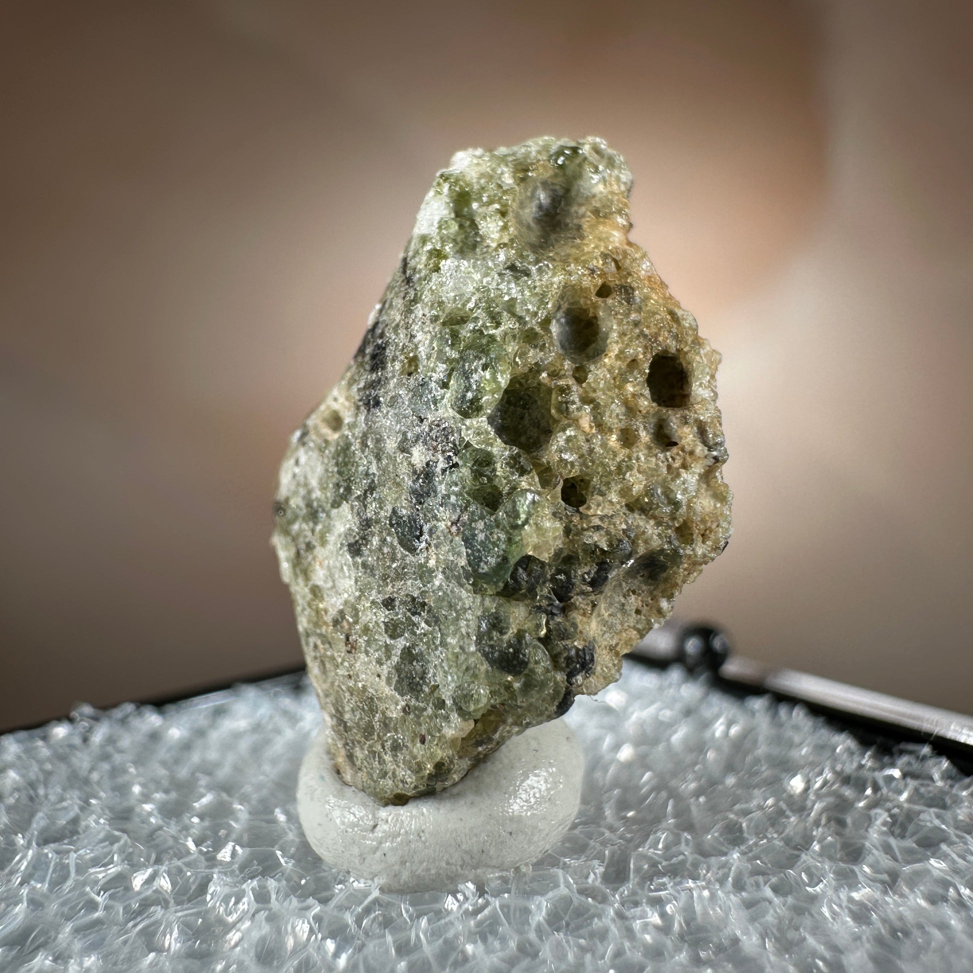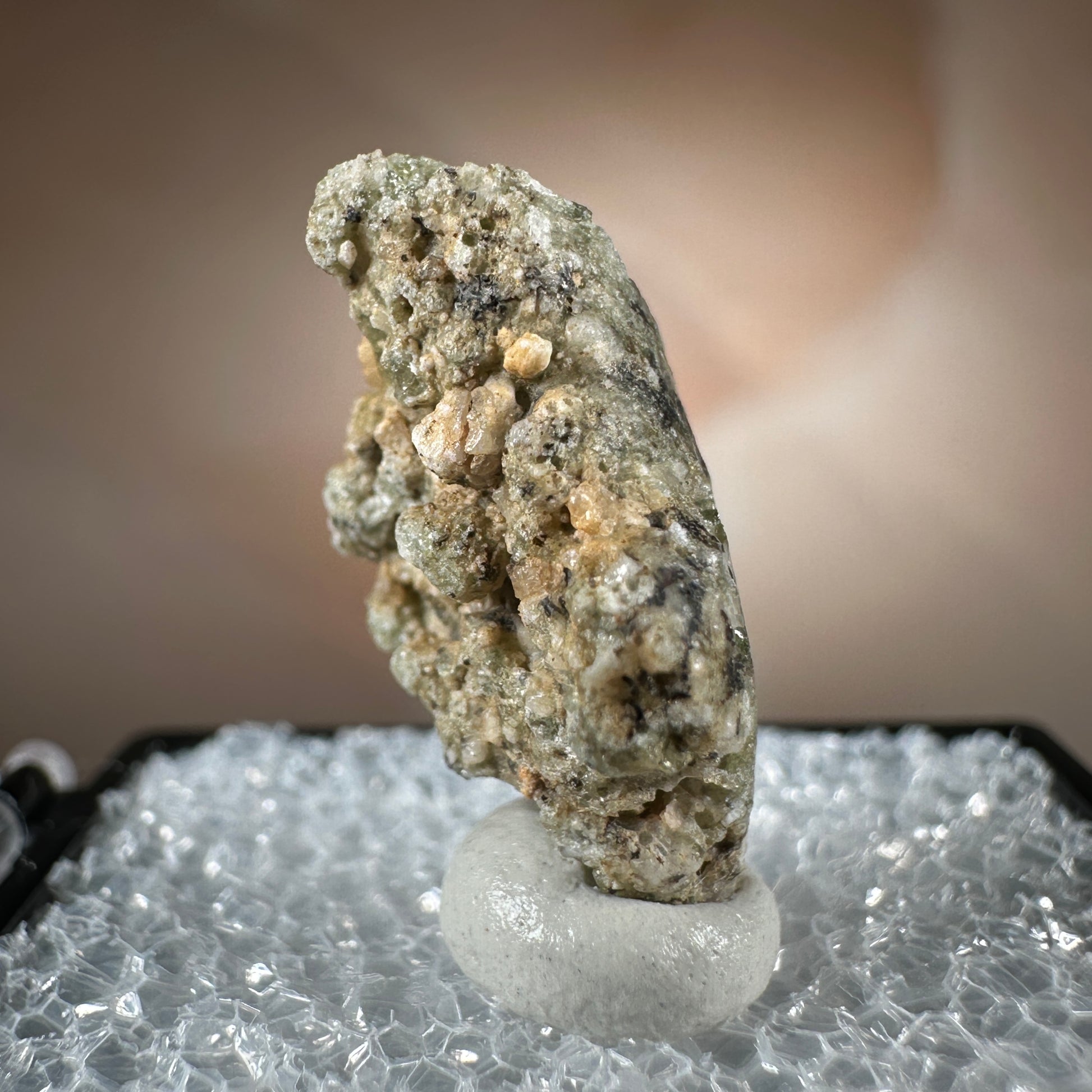 One interesting characteristic of Trinitite, is the sand grain textured bottom, with a smooth melted upper surface. This has lead many to believe these Trinitite pieces were actually formed from sand that was sucked up into the fireball of the explosion and later fell into the crater, rather than simply melting in place beneath the explosion. The Trinity test site is usually off limits, opening only 1-2 times a year for visitors. Our Trinitite is from a former rock shop owner who retired years ago, he had this Trinitite stored away for decades.