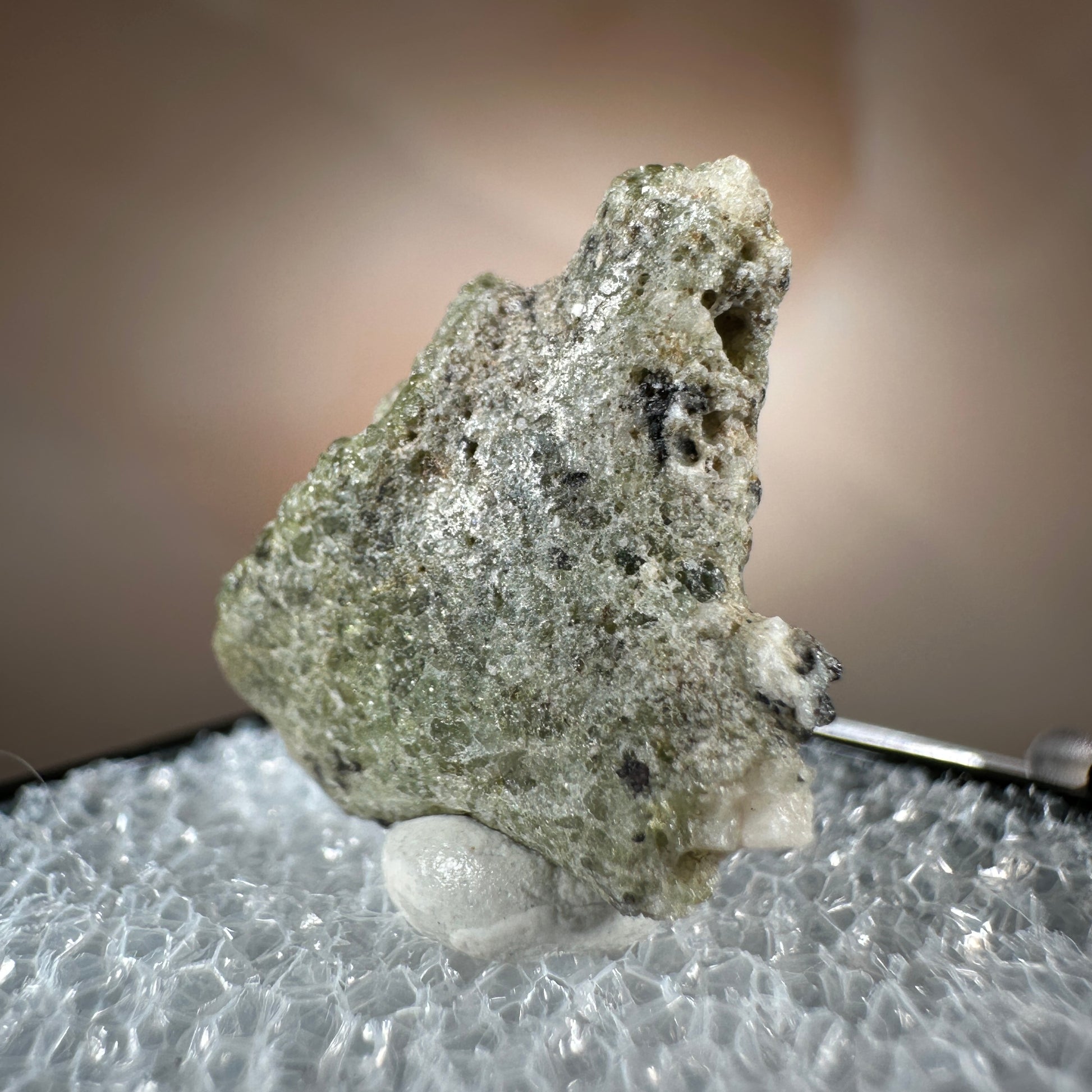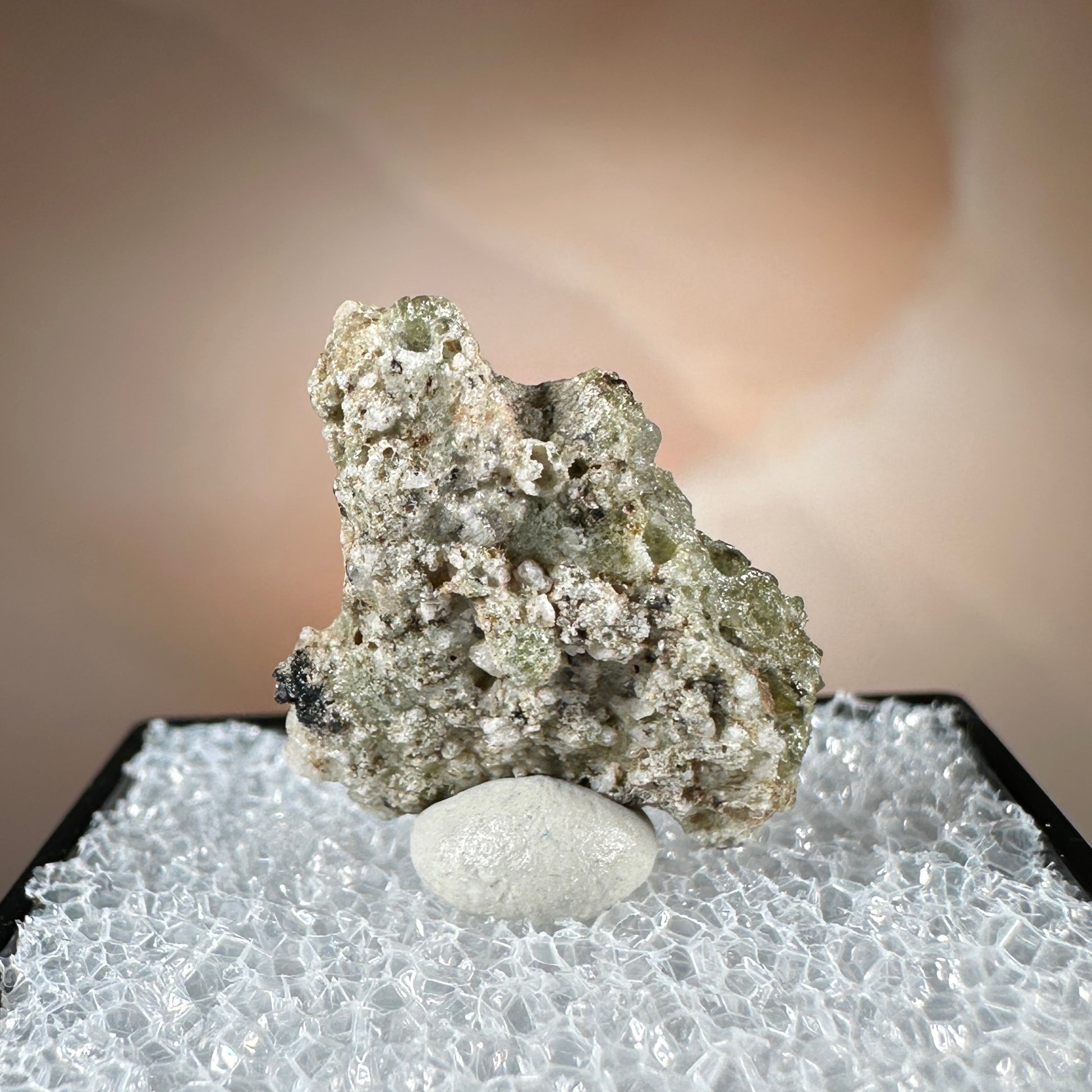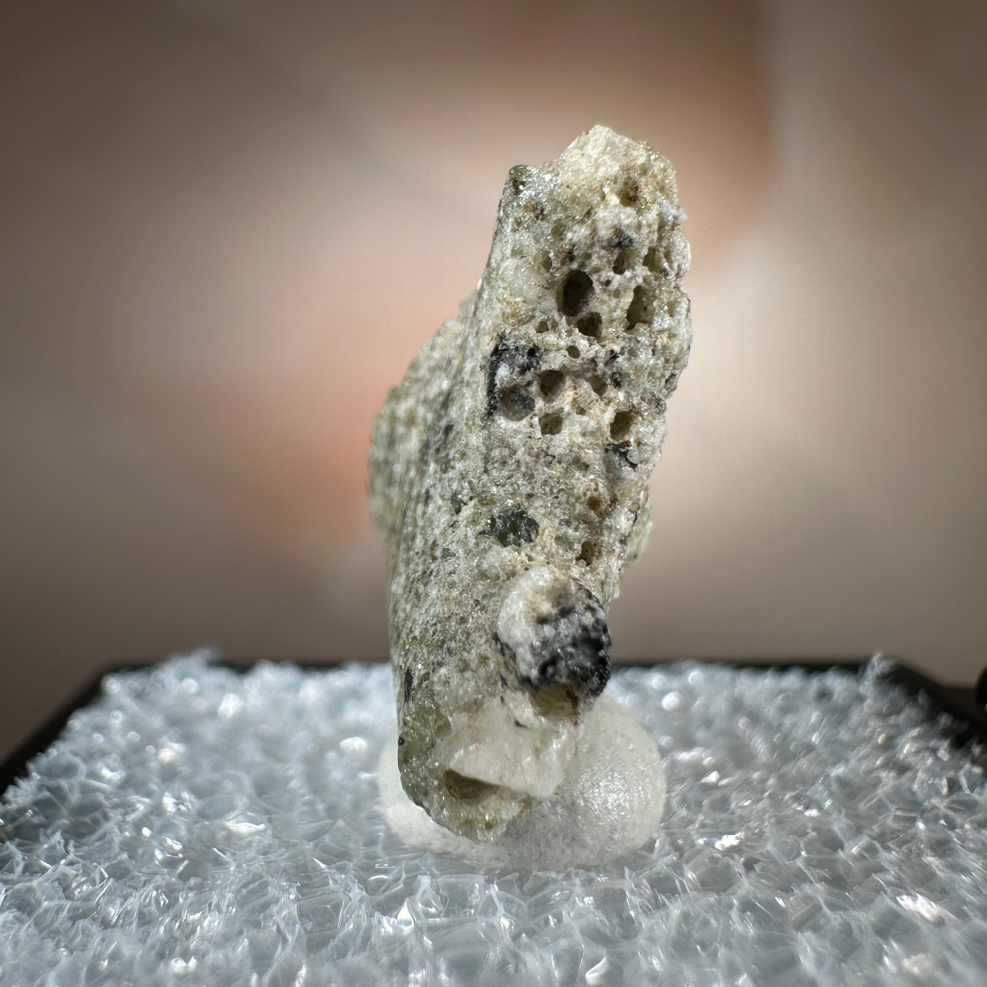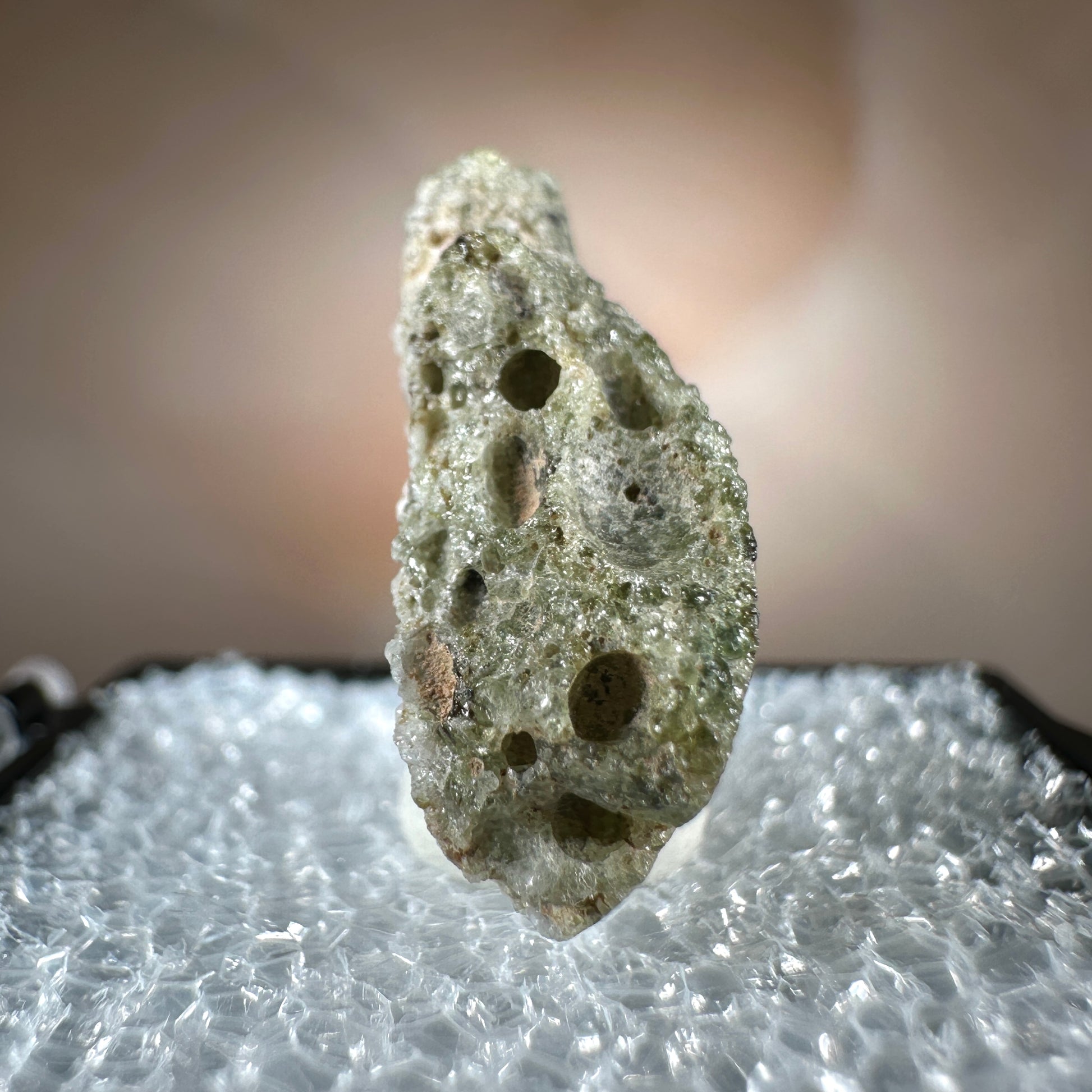 One interesting characteristic of Trinitite, is the sand grain textured bottom, with a smooth melted upper surface. This has lead many to believe these Trinitite pieces were actually formed from sand that was sucked up into the fireball of the explosion and later fell into the crater, rather than simply melting in place beneath the explosion. The Trinity test site is usually off limits, opening only 1-2 times a year for visitors. Our Trinitite is from a former rock shop owner who retired years ago, he had this Trinitite stored away for decades.